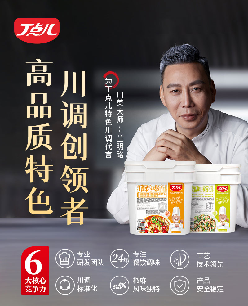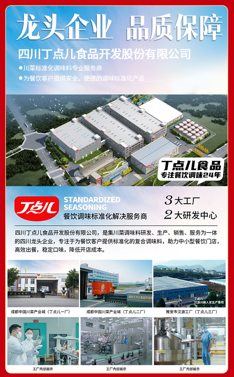 - 四川丁点儿食品开发股份有限公司,是集川菜调味料研发、生产、销售、服务为一体的现代化企业,专注为餐饮客户提供川菜调味解决方案。公司成立至今,服务了超百万家的餐饮门店以及连锁品牌。