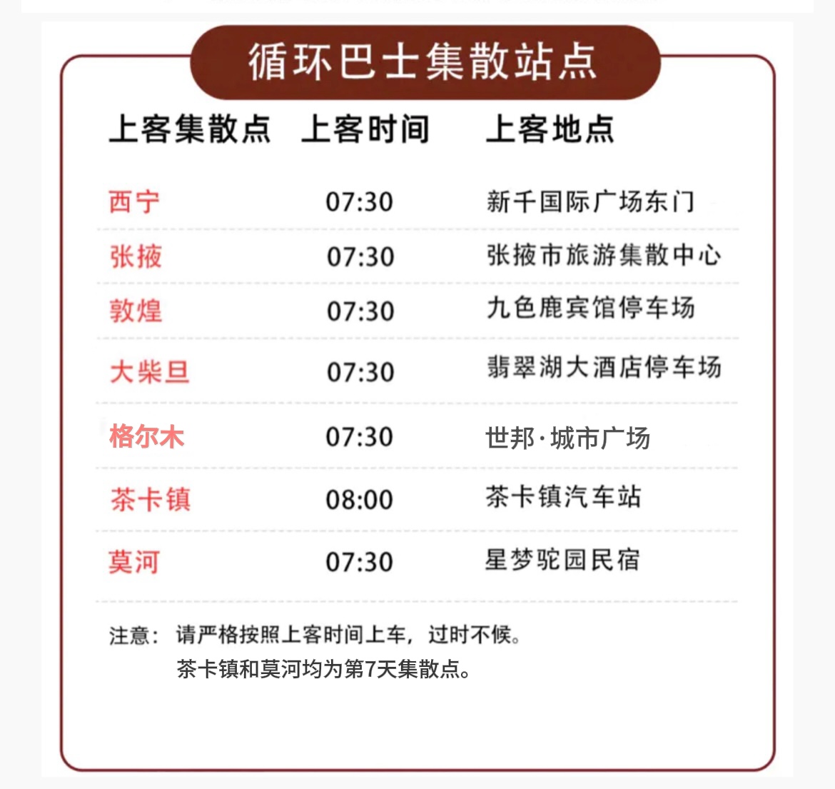 1.巴士为公共交通,严格按照时间站点行驶。不配导游,不点名不等人,错过车无法退票或改签。