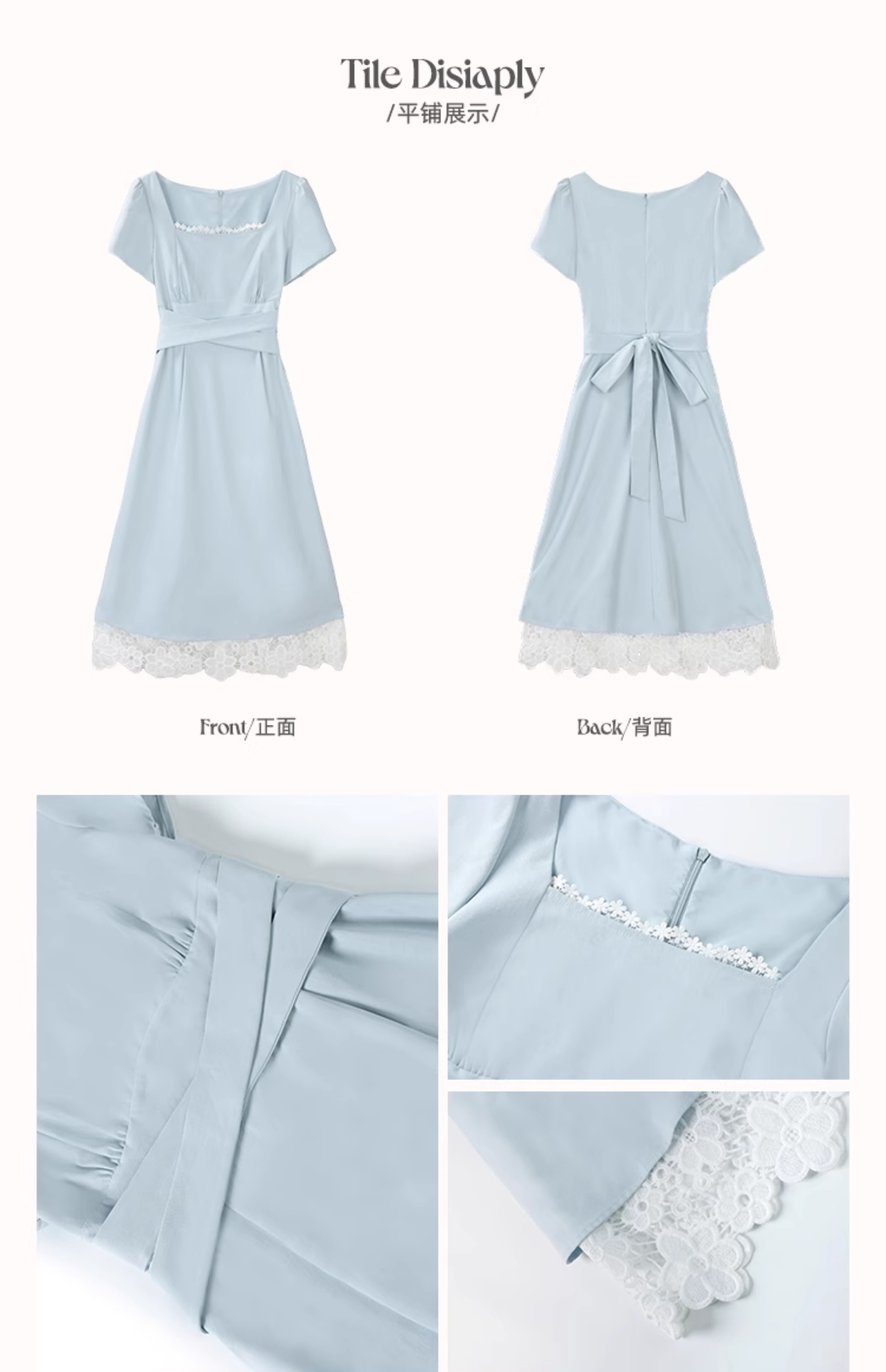 【65折秒杀】鹿向南「蔚蓝海岸」夏日海盐法式气质女夏季收腰拼接蕾丝连衣裙子DYL661816
