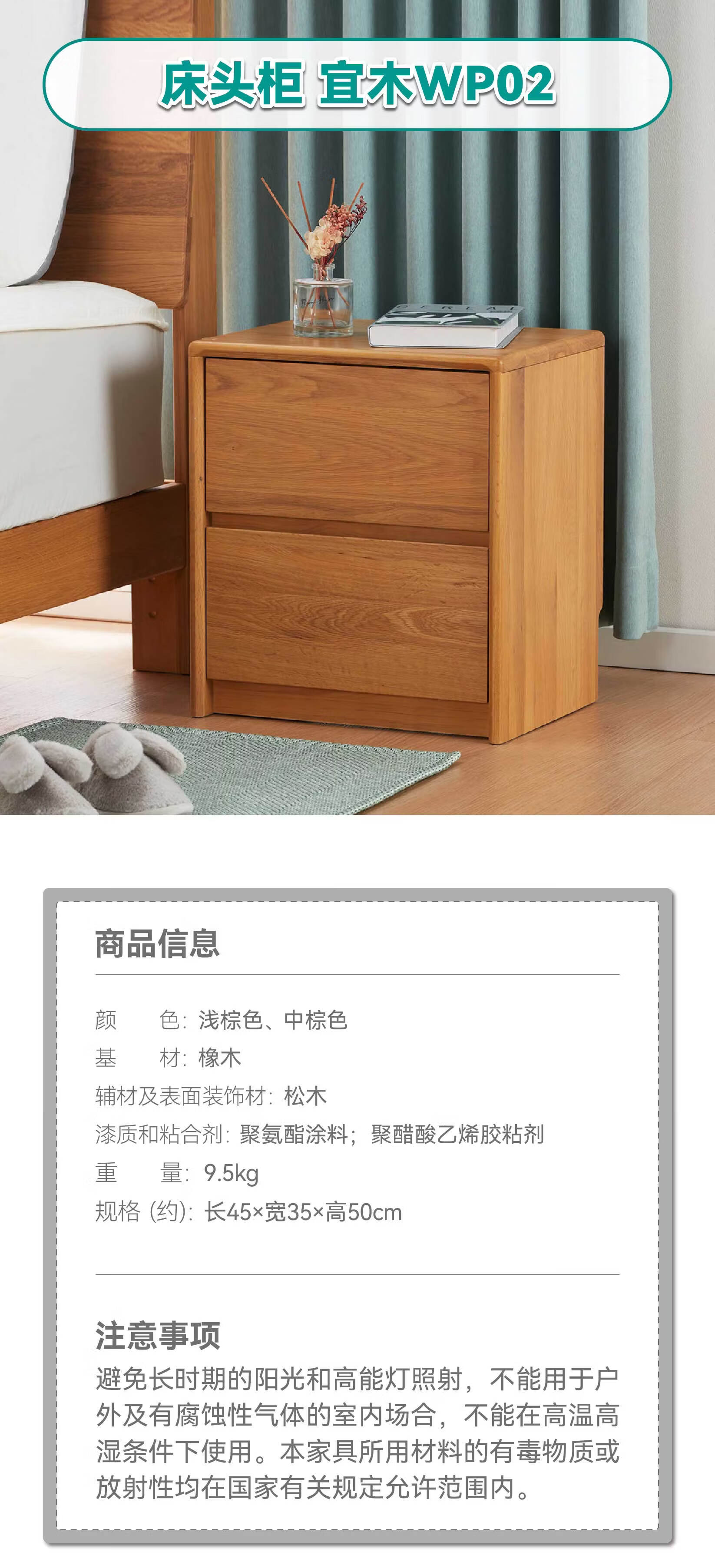 【家具】卧室日式复古实木床头柜 宜木WP02