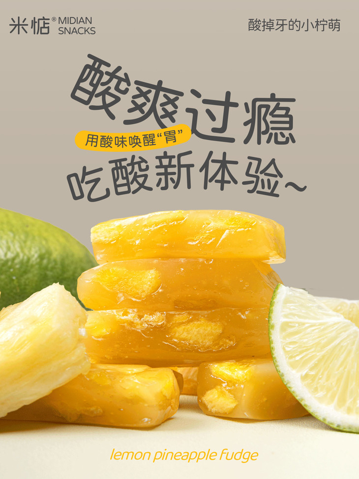 【米惦酸掉牙的小柠萌软糖】6小时熬一颗手工糖👊鲜榨柠檬果茸x菠萝果肉🌟≥20%徐闻凤梨干 嚼的到果肉纤维 🌟≥40%柠檬果茸