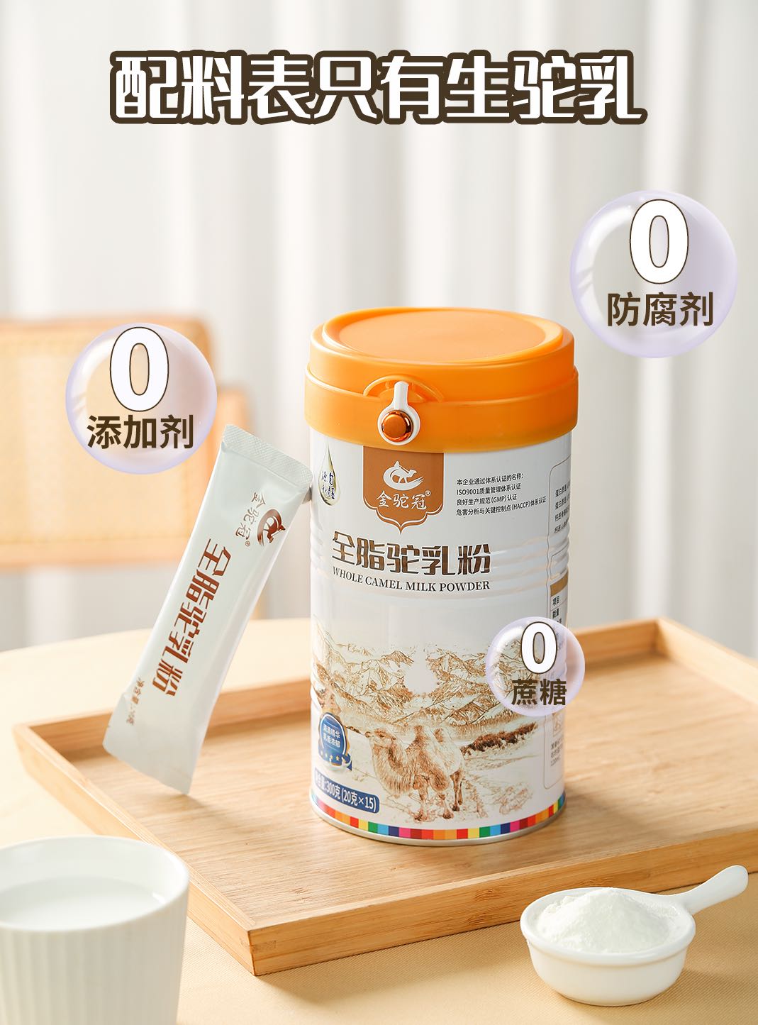 【直降94元!】100%生驼乳【金驼冠全脂纯驼乳粉 无添加,0香精 0蔗糖 0防腐剂 300g/罐