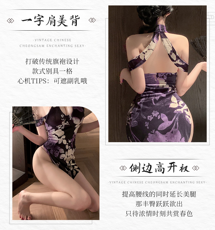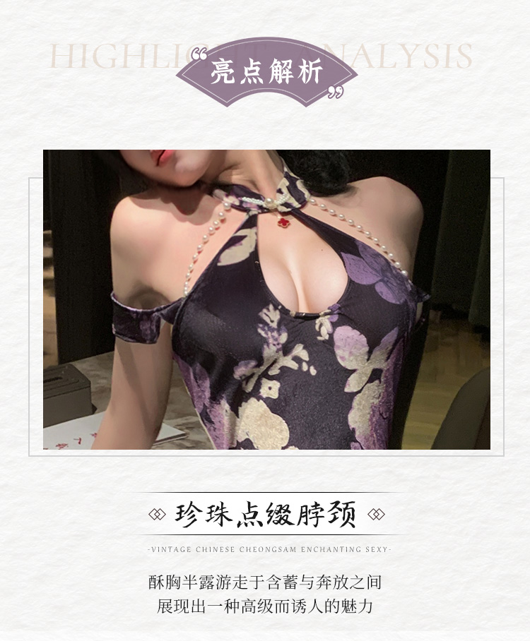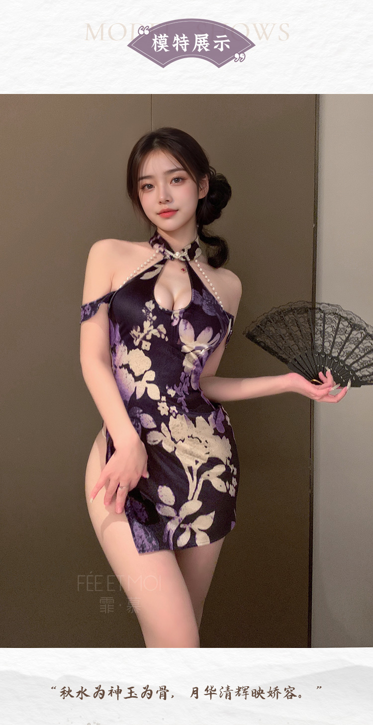 【情趣内衣】霏慕 珠链缀饰露沟繁花旗袍6708