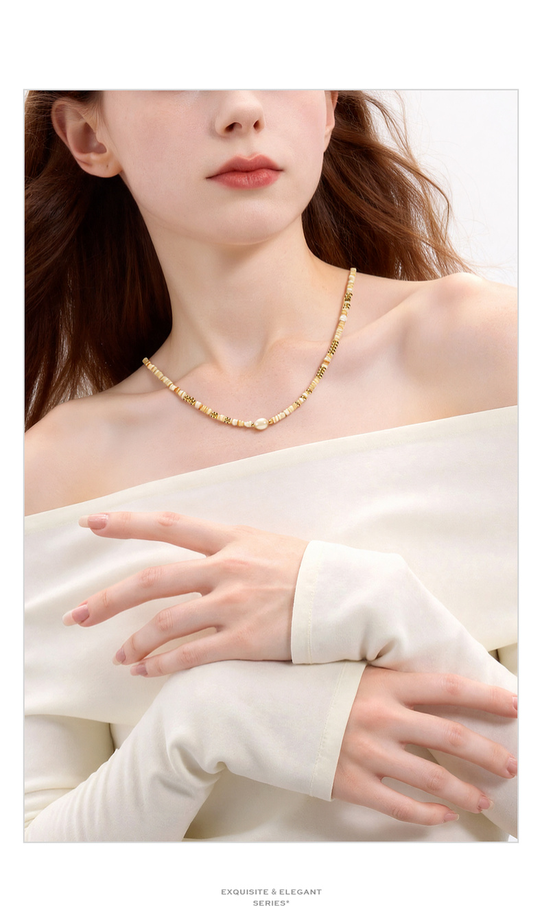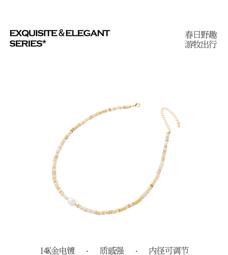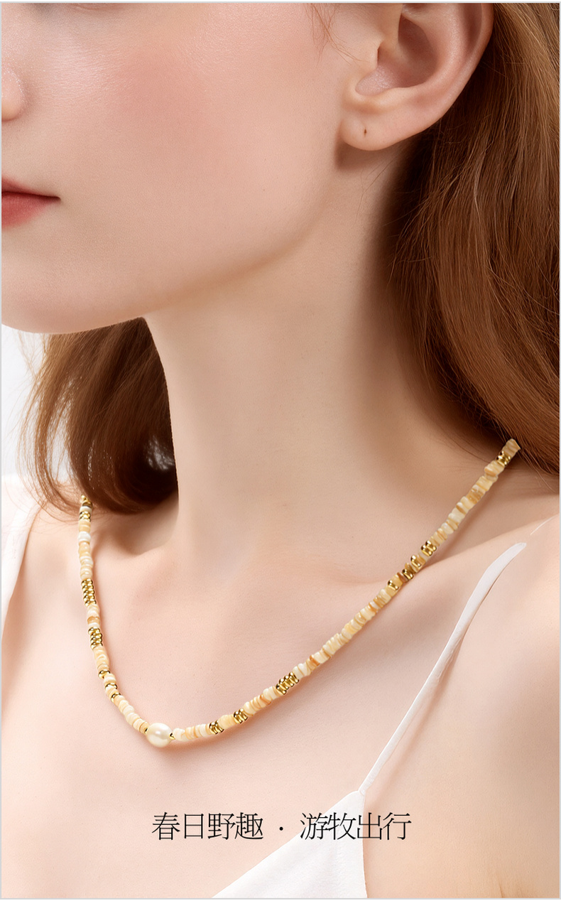 三彩2026新款手工串珠淡水珍珠项链温柔复古森系多巴胺约会茶歇女