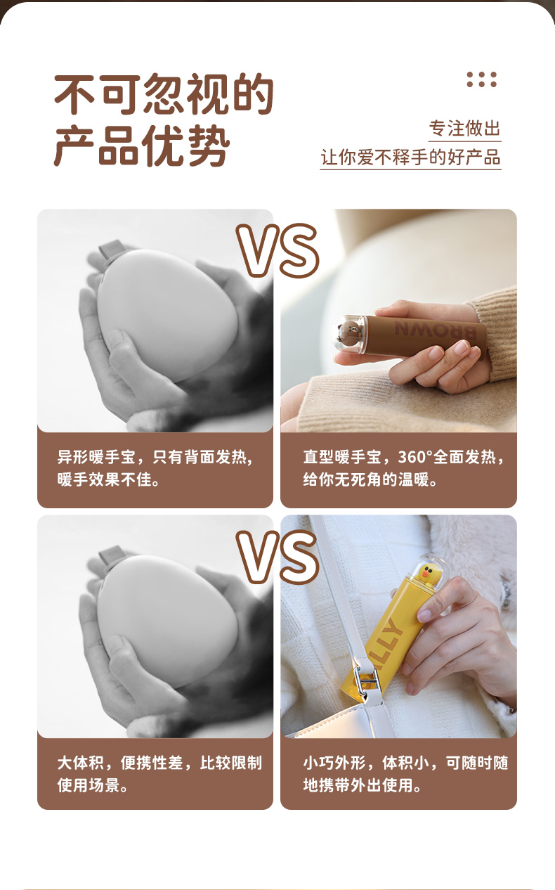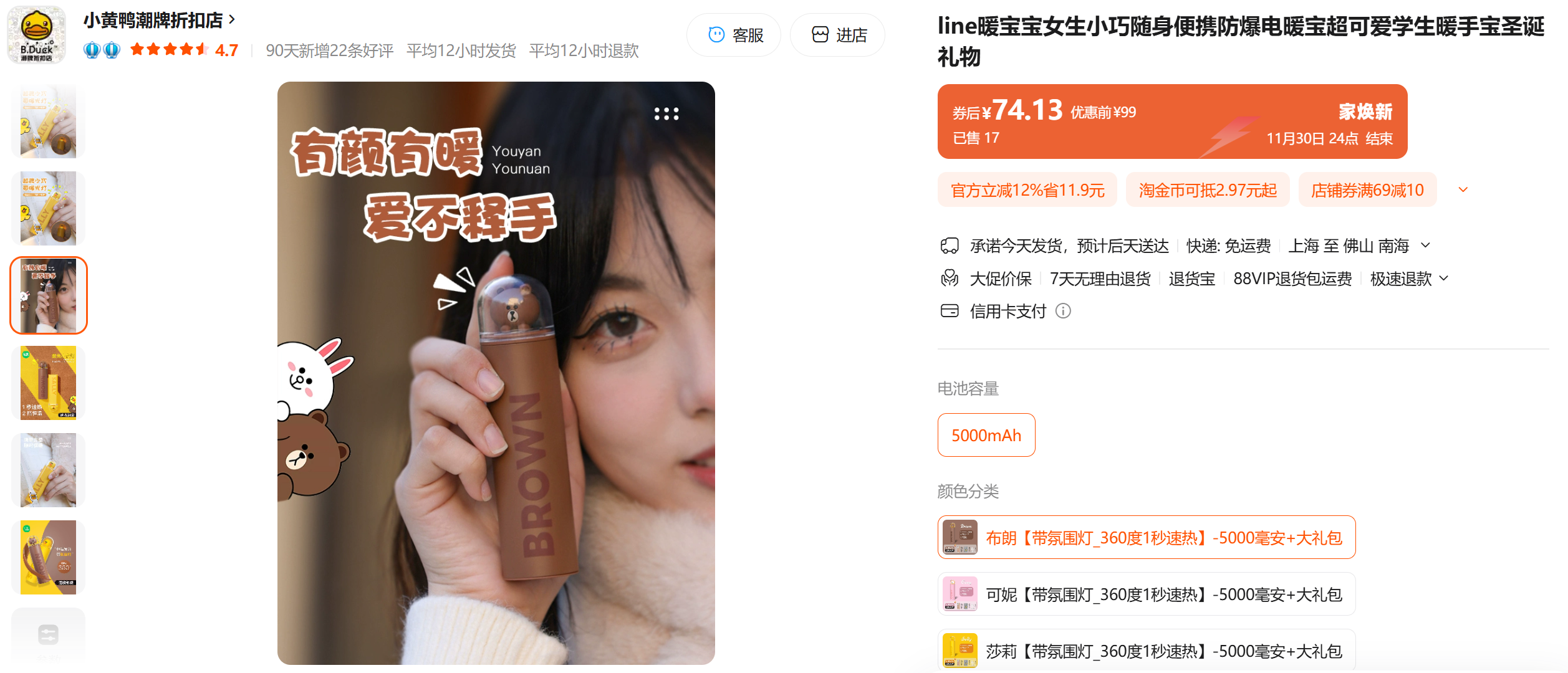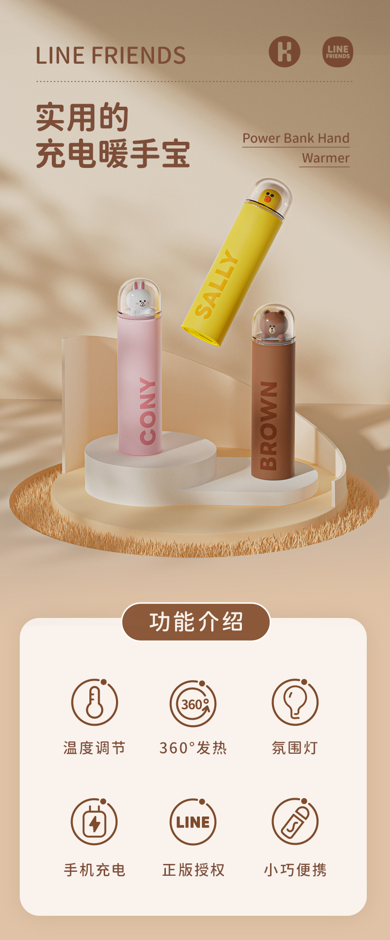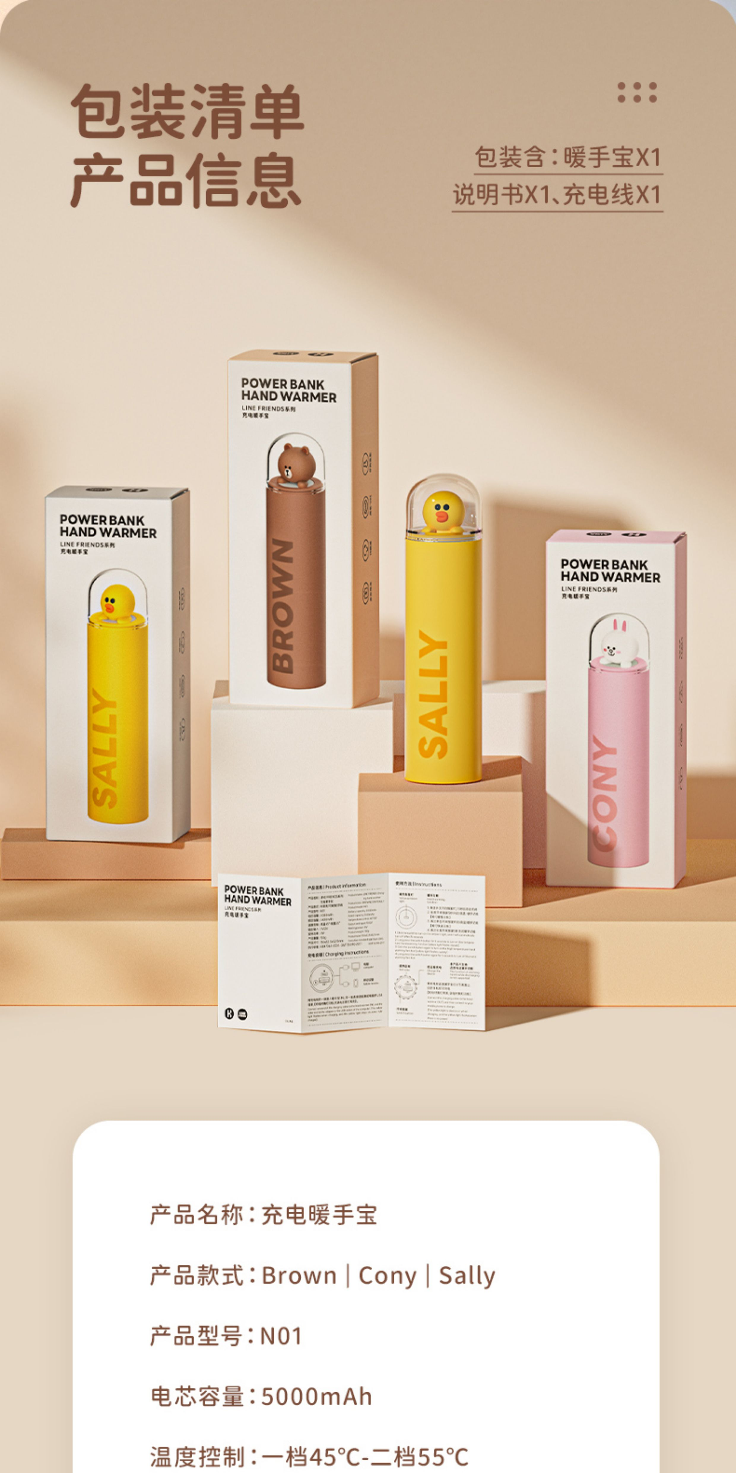 B.Duck小黄鸭 LineFriends系列暖手宝 支持温度调节 带氛围灯 小巧便携