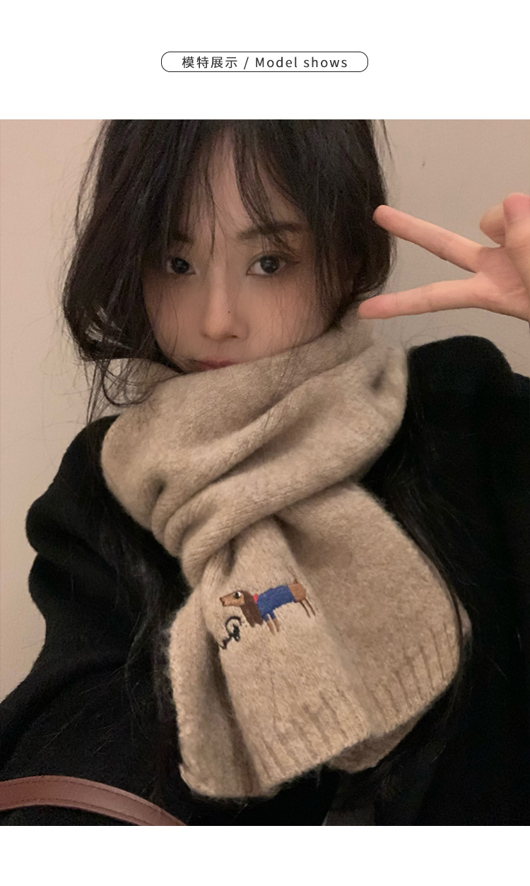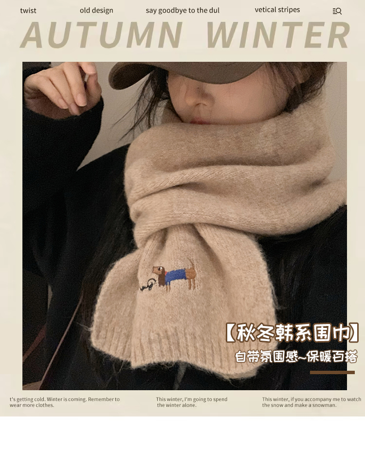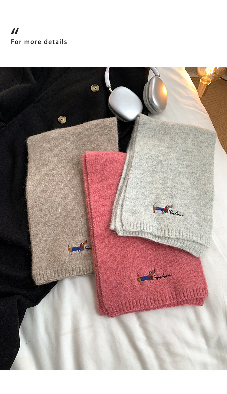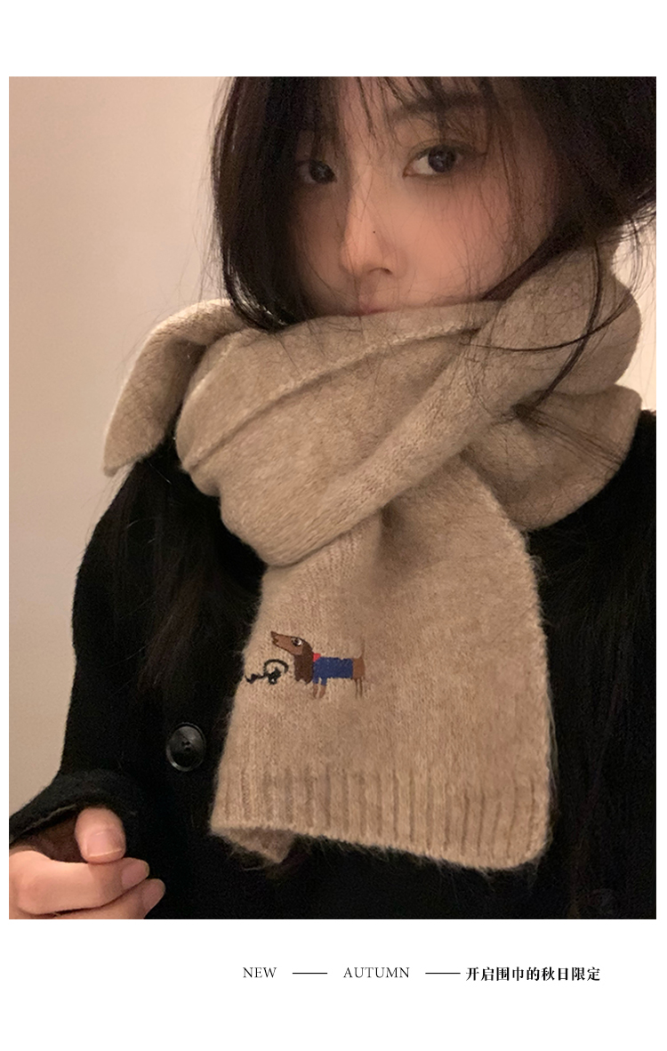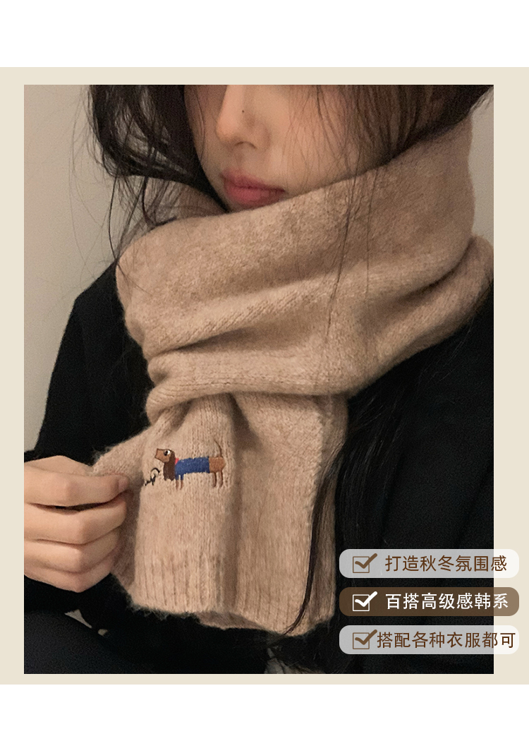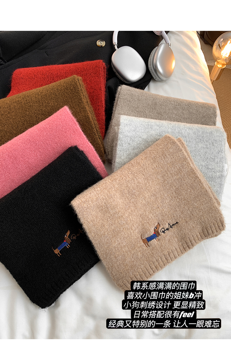 鹿鹿推荐 • 超暖和!秋冬仿羊绒小狗刺绣针织纯色围巾