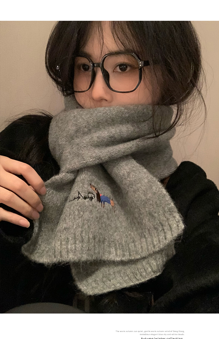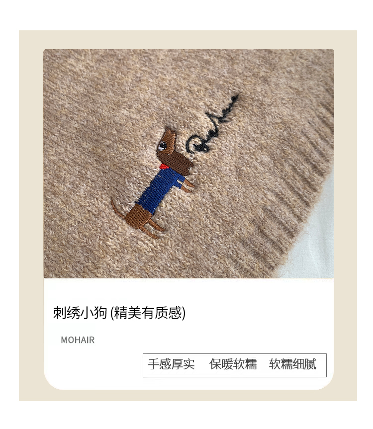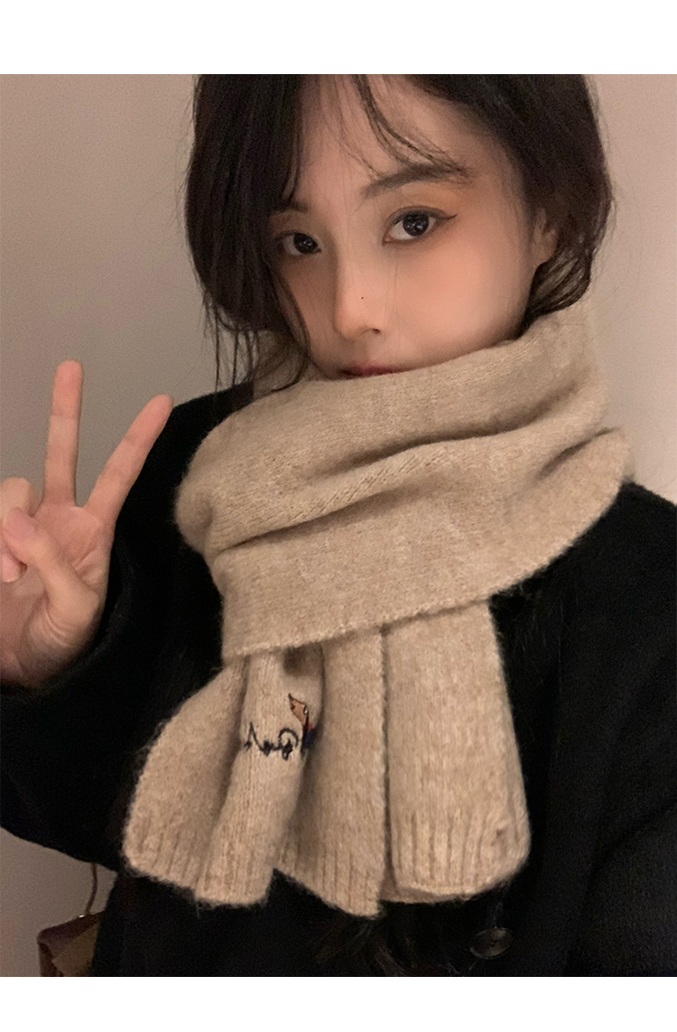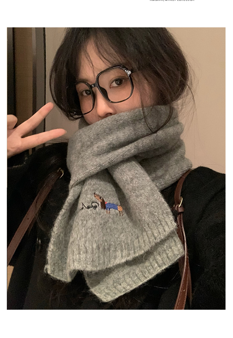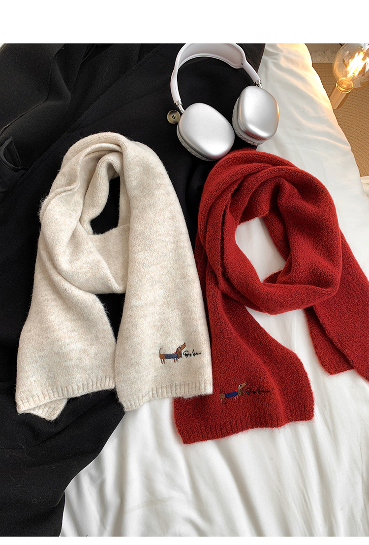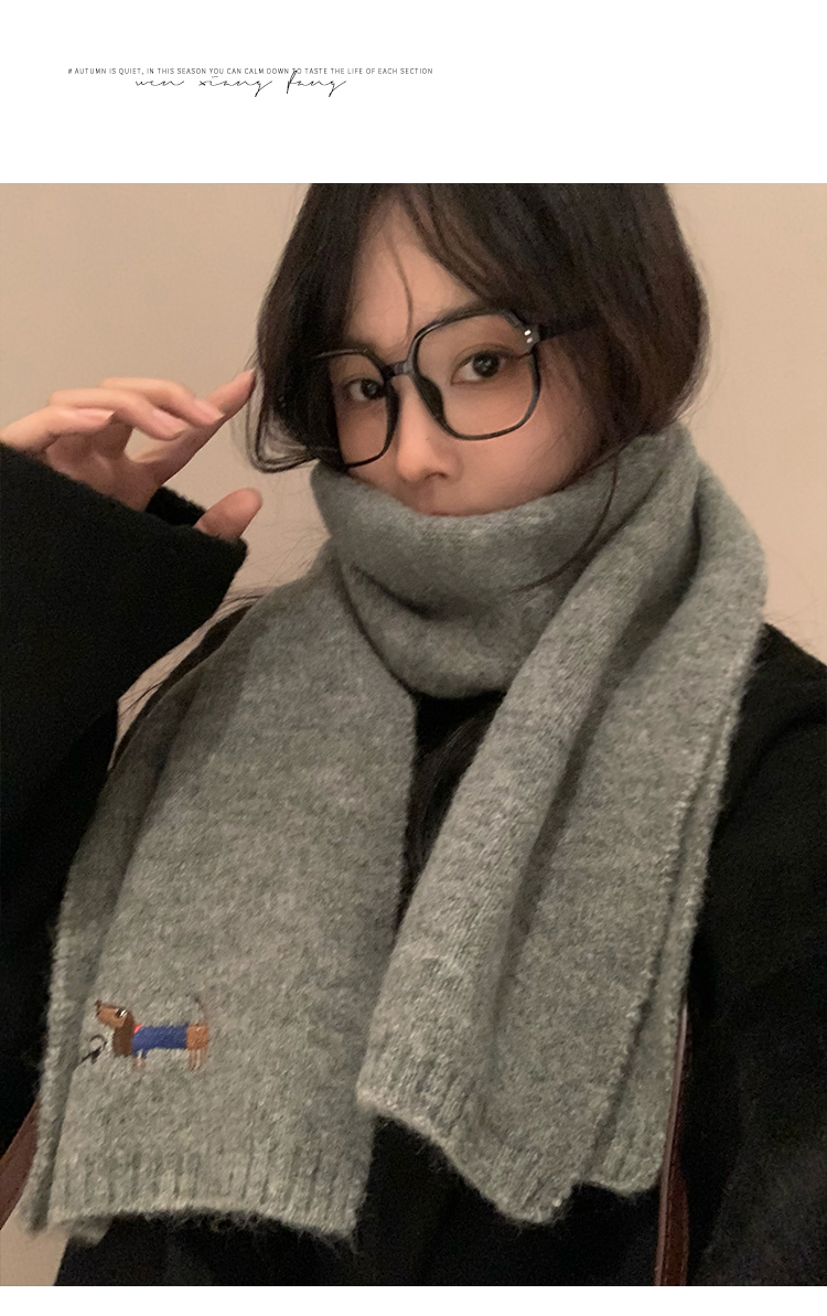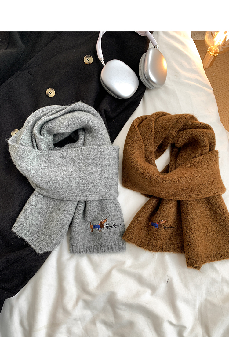 鹿鹿推荐 • 超暖和!秋冬仿羊绒小狗刺绣针织纯色围巾