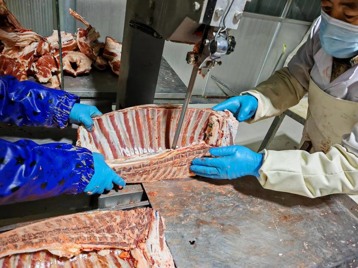 经检验检疫→屠宰→排酸→分割→真空包装→速冻等标准化流程处理…再精切成有机羊排、羊蝎子、羊后腿、后腿切片等精切不同部位,满足吃货们的各种吃法。