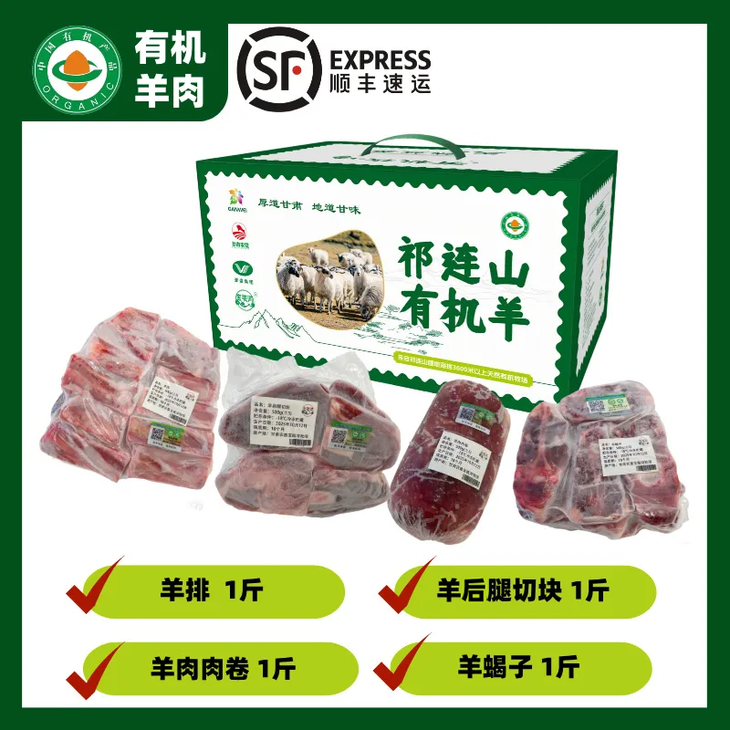 祁连山放养有机羊大礼包399元/4斤,新品尝鲜价仅299元/4斤。
