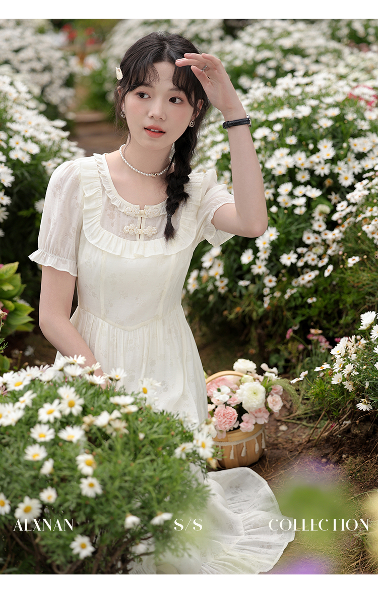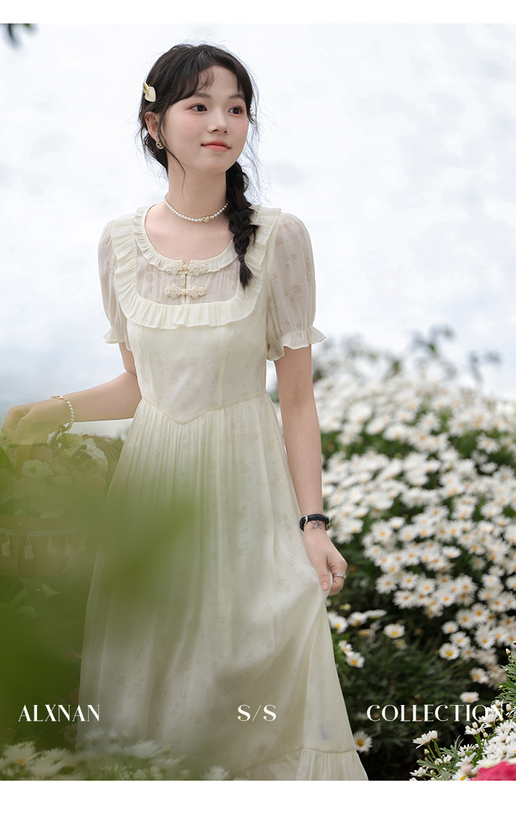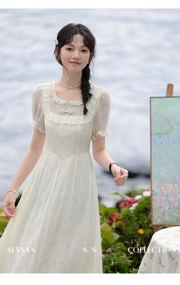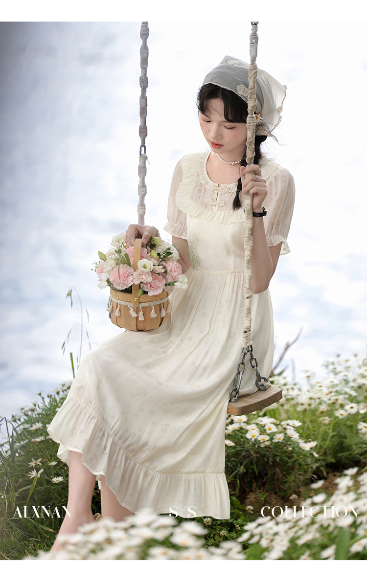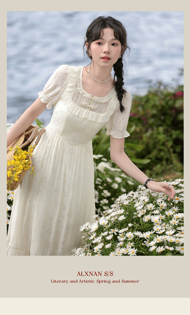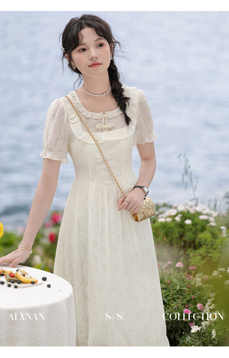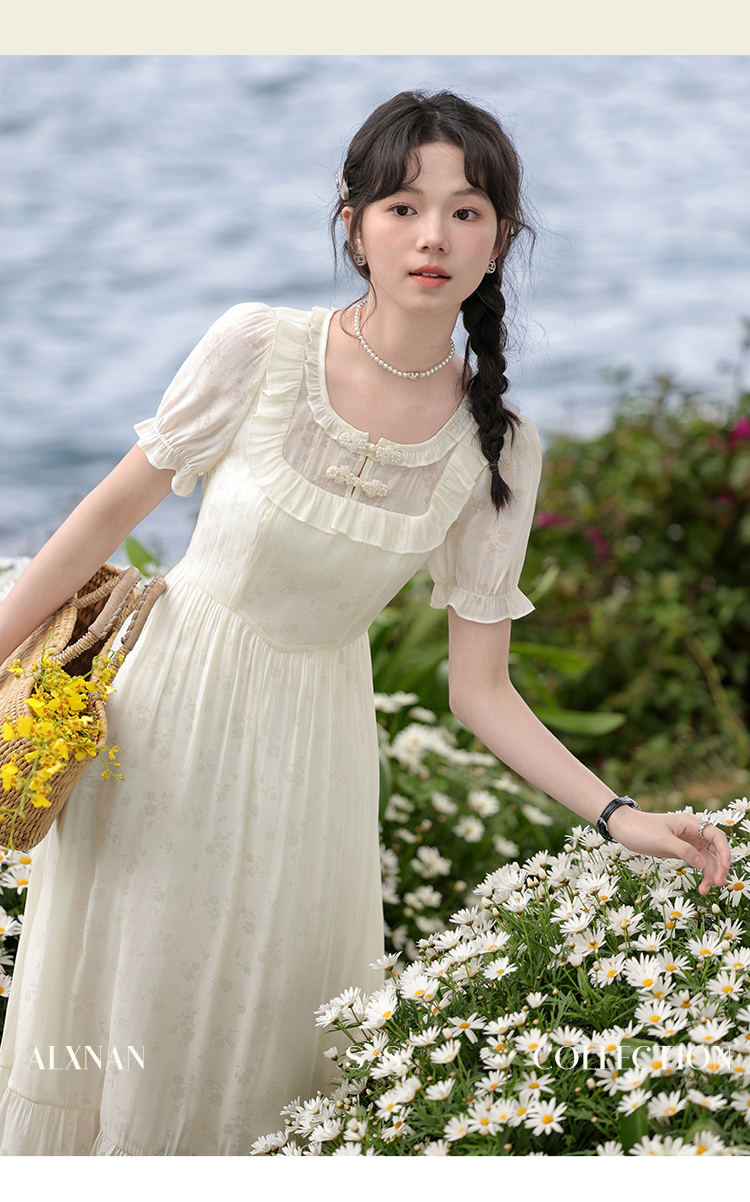 【6折秒杀】鹿向南「江南花坊」法式设计感连衣裙夏季新款高级气质a字裙L37203
