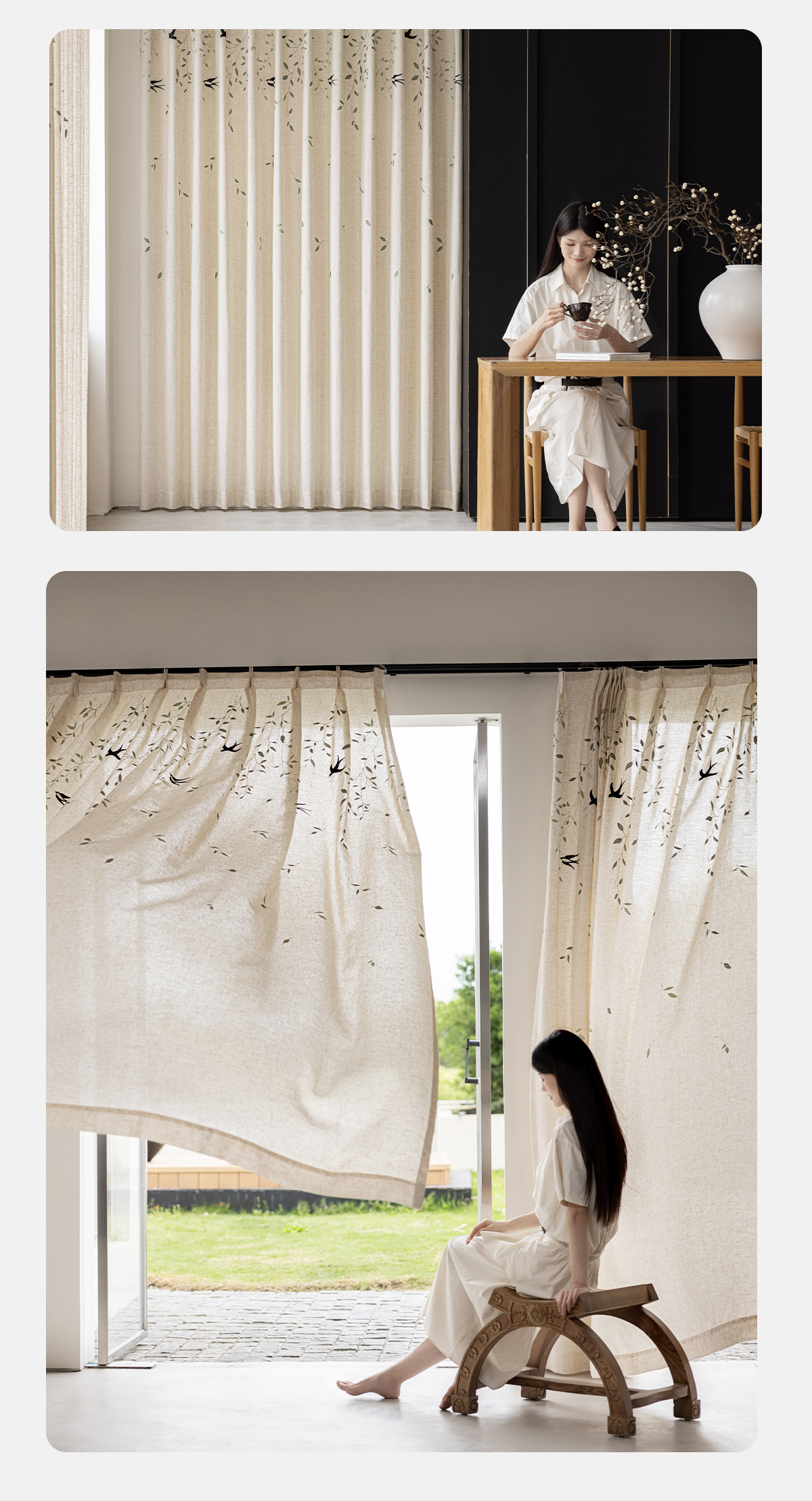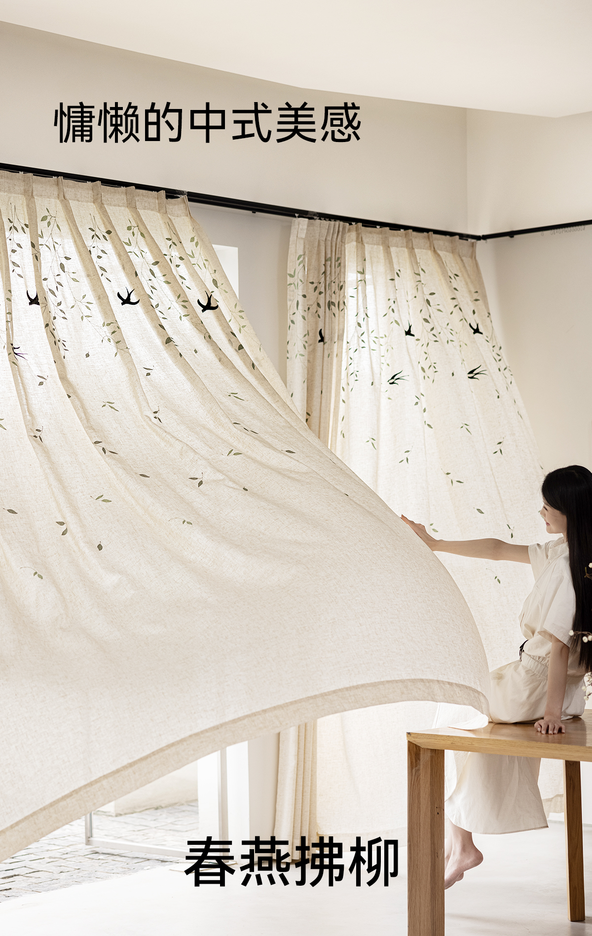 【沁园春雪】金蝉麻感提花中古风窗帘