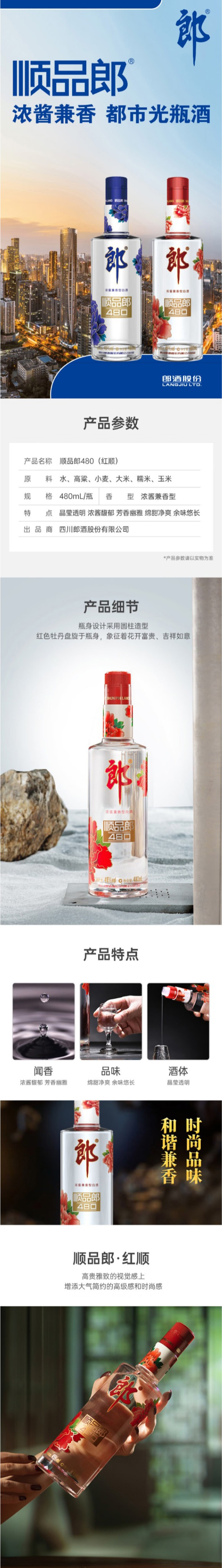 【单瓶37】郎酒 顺品郎 红顺480 兼香型白酒 45度 480ml*6 480ml*12 (光瓶需打包防破损 不发原箱)
