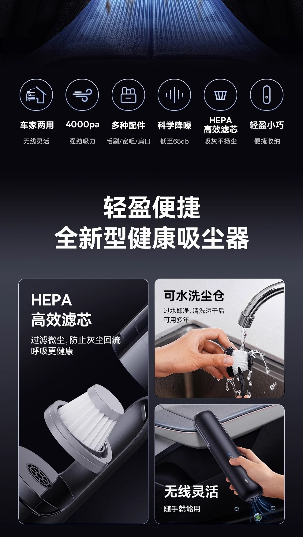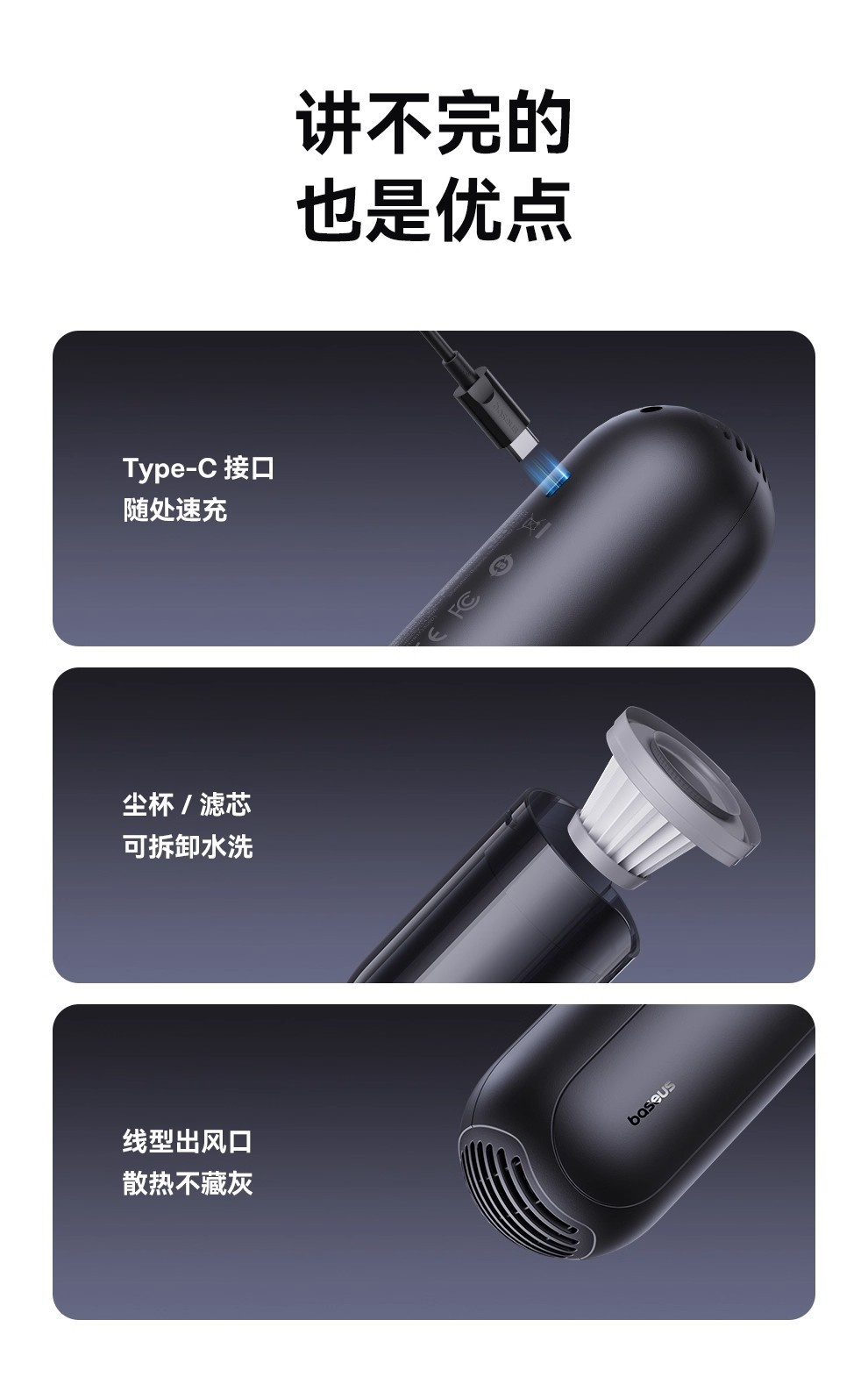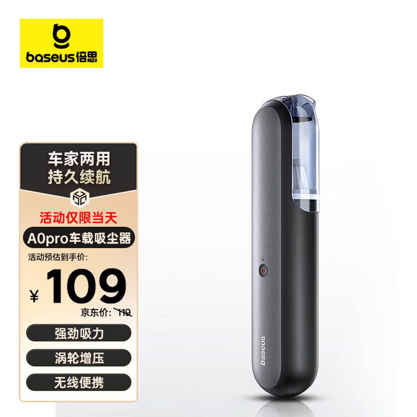 【京东热销5W+】Baseus/倍思 A0pro 手持充电款小型车载吸尘器 超强大吸力家用迷你