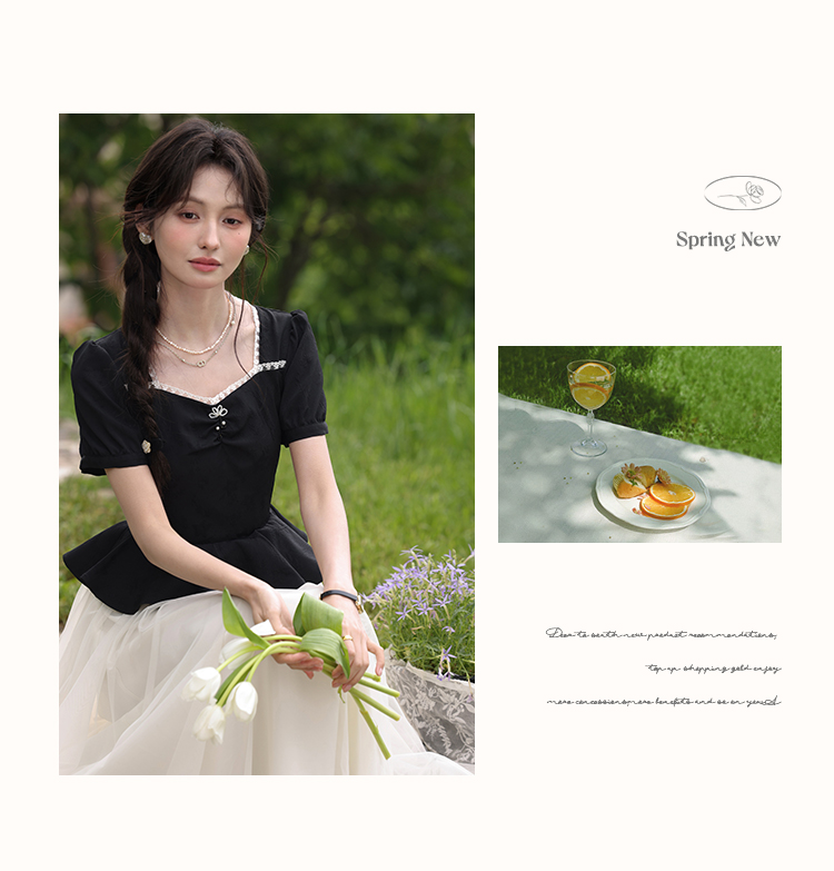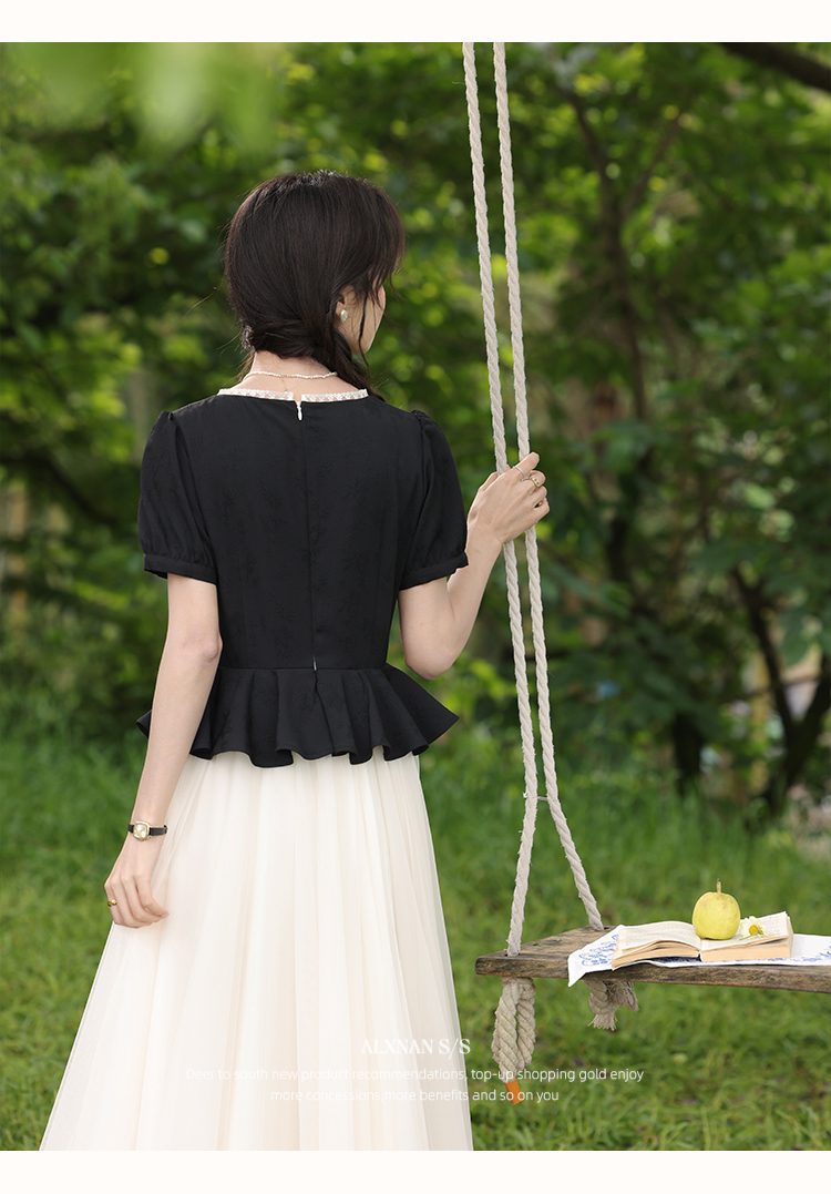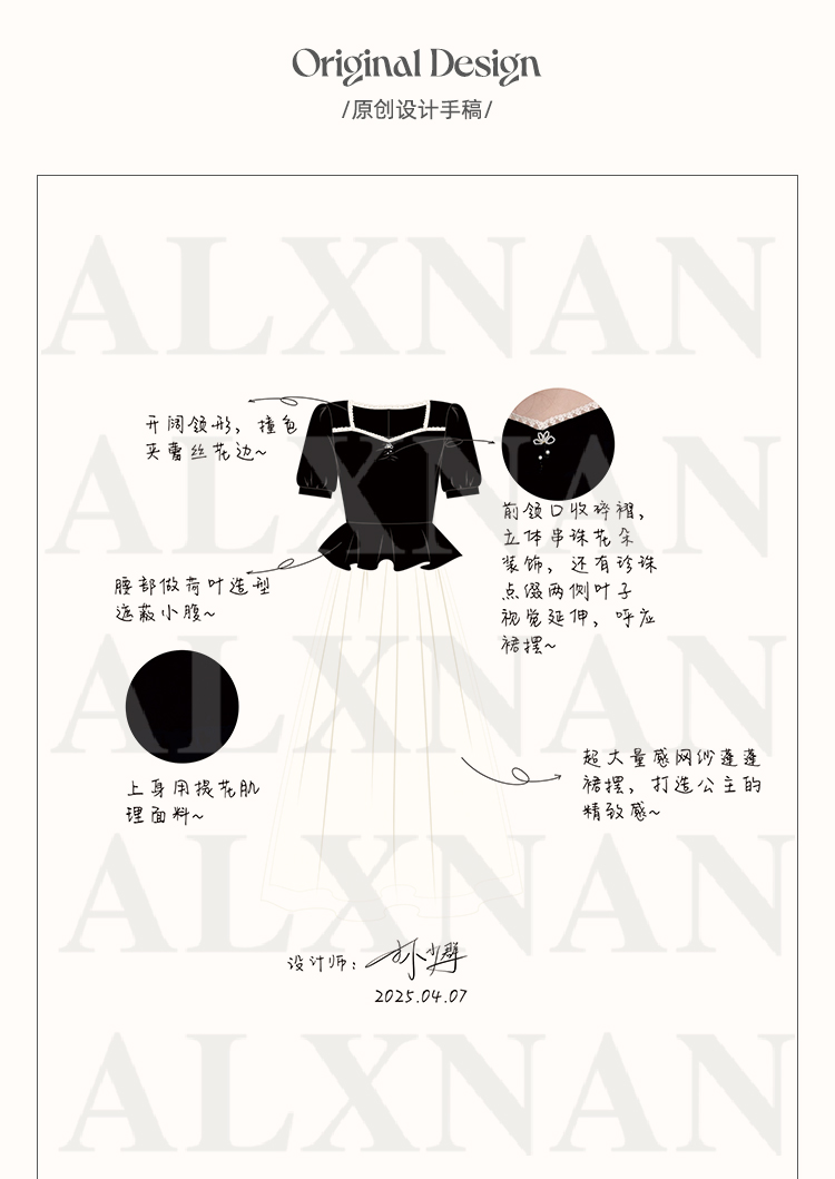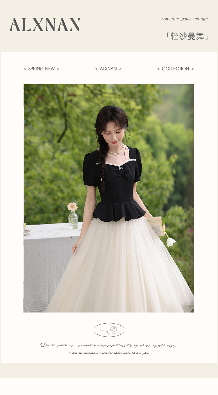 【65折秒杀】鹿向南「轻纱曼舞」假两件法式女连衣裙夏设计感高腰a字短袖长裙L55667