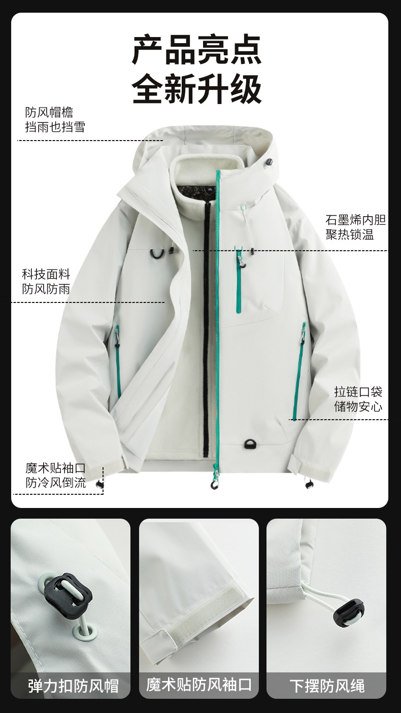 瑞士军工SWISS MILITARY户外防水防风运动石墨烯抓绒内胆三合一冲锋衣 7870