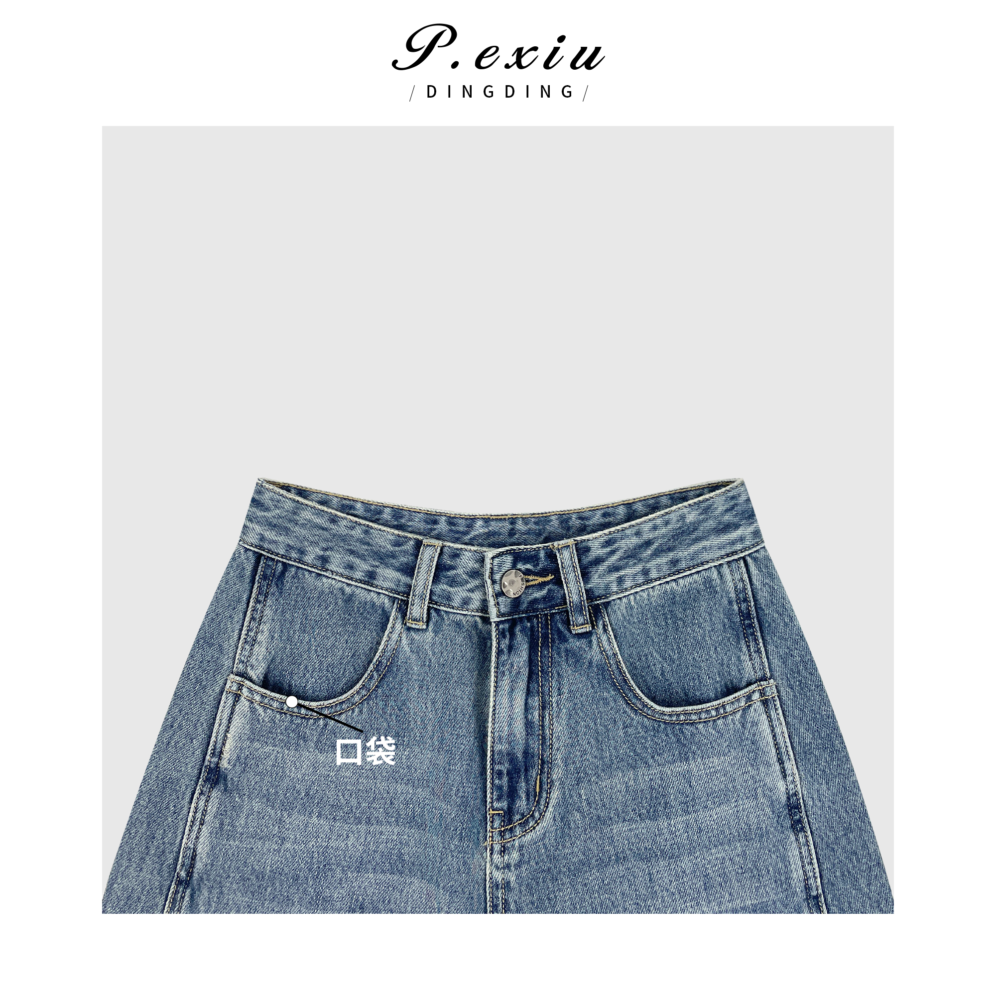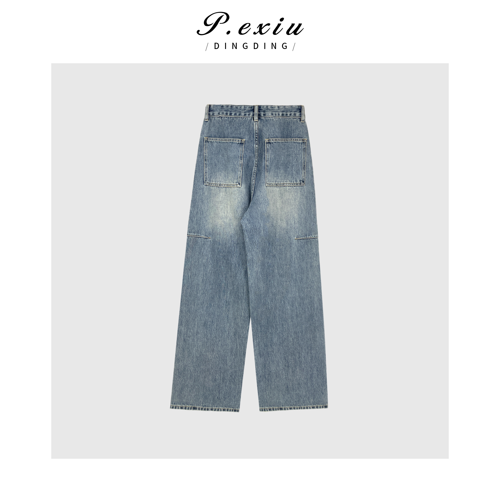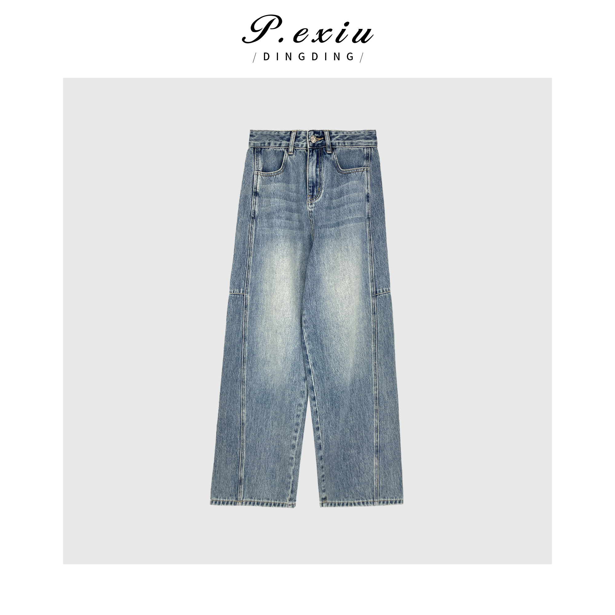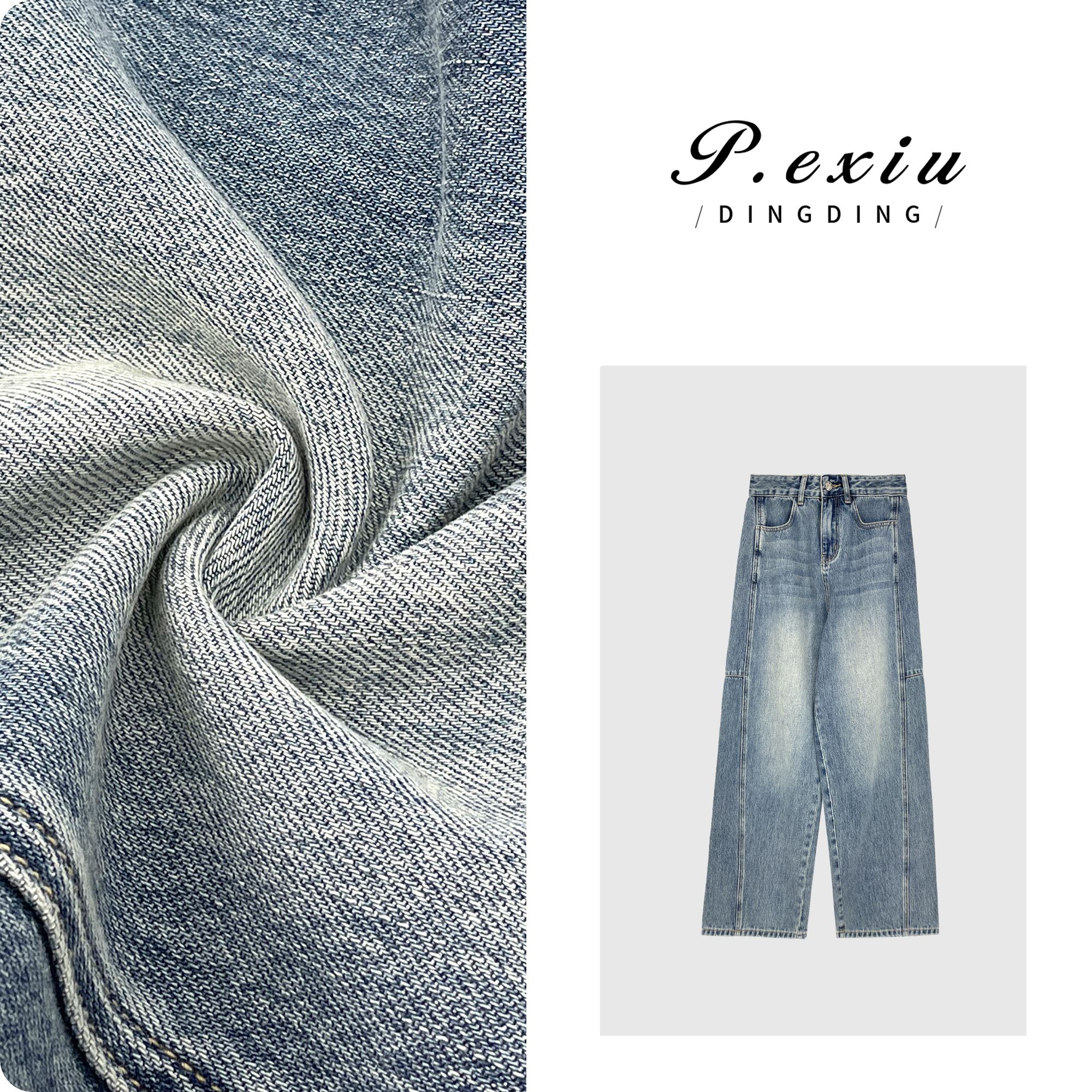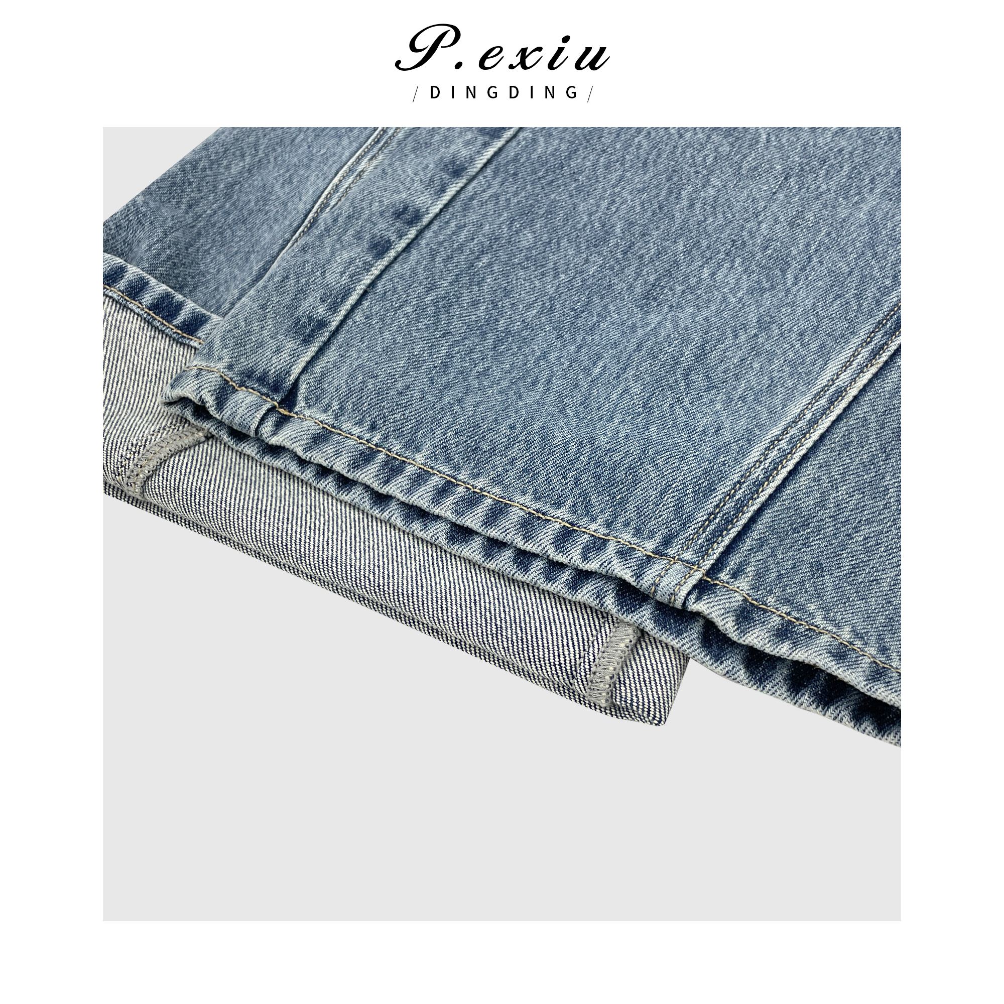 04-3潘依绣丁丁宠粉潘依绣 立体剪裁拼接水洗磨白直筒阔腿牛仔裤 D6123