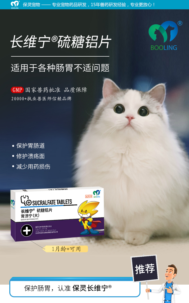 保灵胃溃宁长维宁硫糖铝片猫狗宠物肠胃炎症吐黄水胃炎胃溃疡止吐