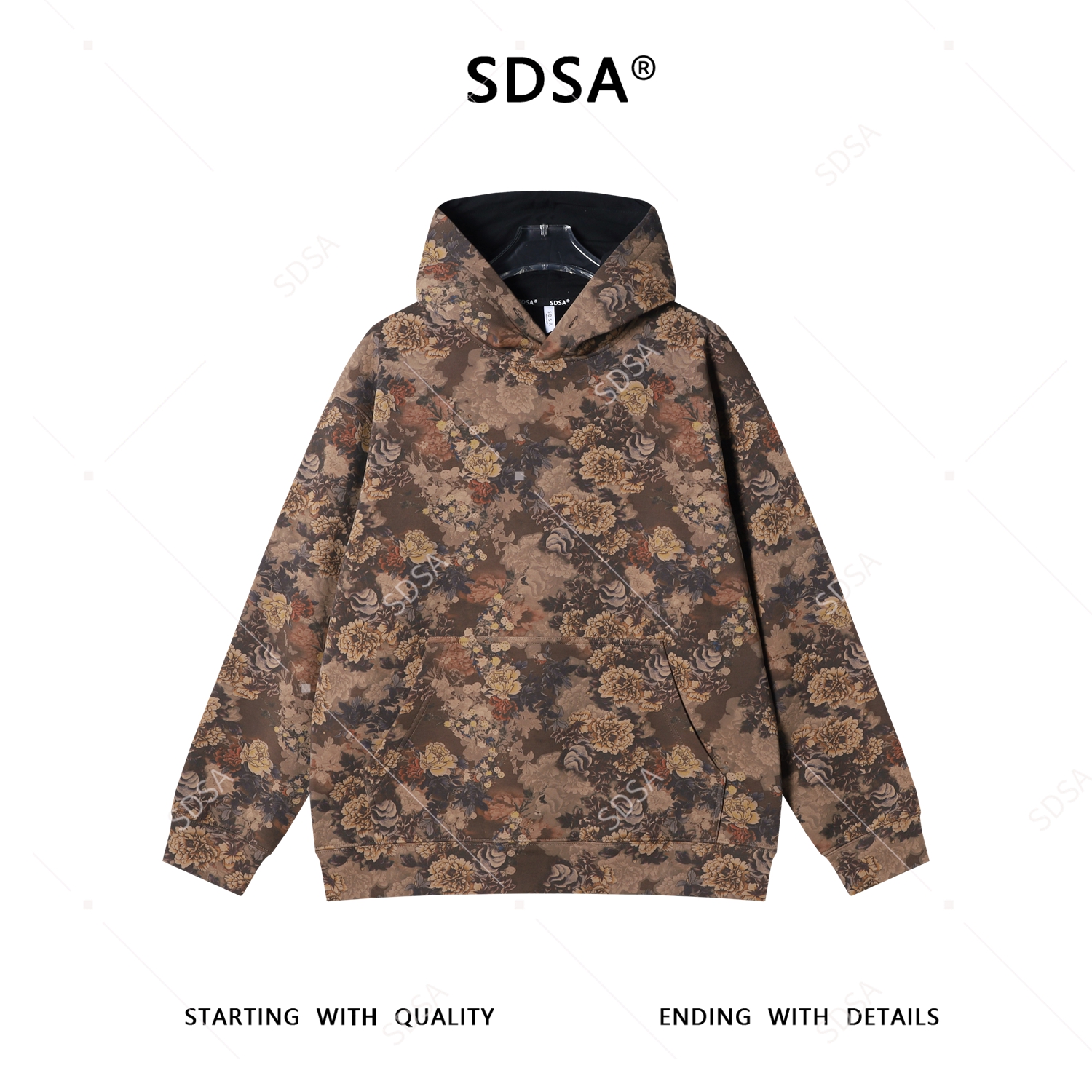 WY1399SDSA男士秋冬新款痞帅男装潮牌扎染植物花卉连帽卫衣舒适简约上衣