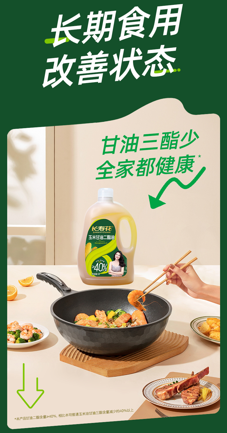 长寿花轻酯甘油二酯食用油40%DAG含量 5L 甘油二酯玉米油家庭装赠送2.5kgl长粒香大米