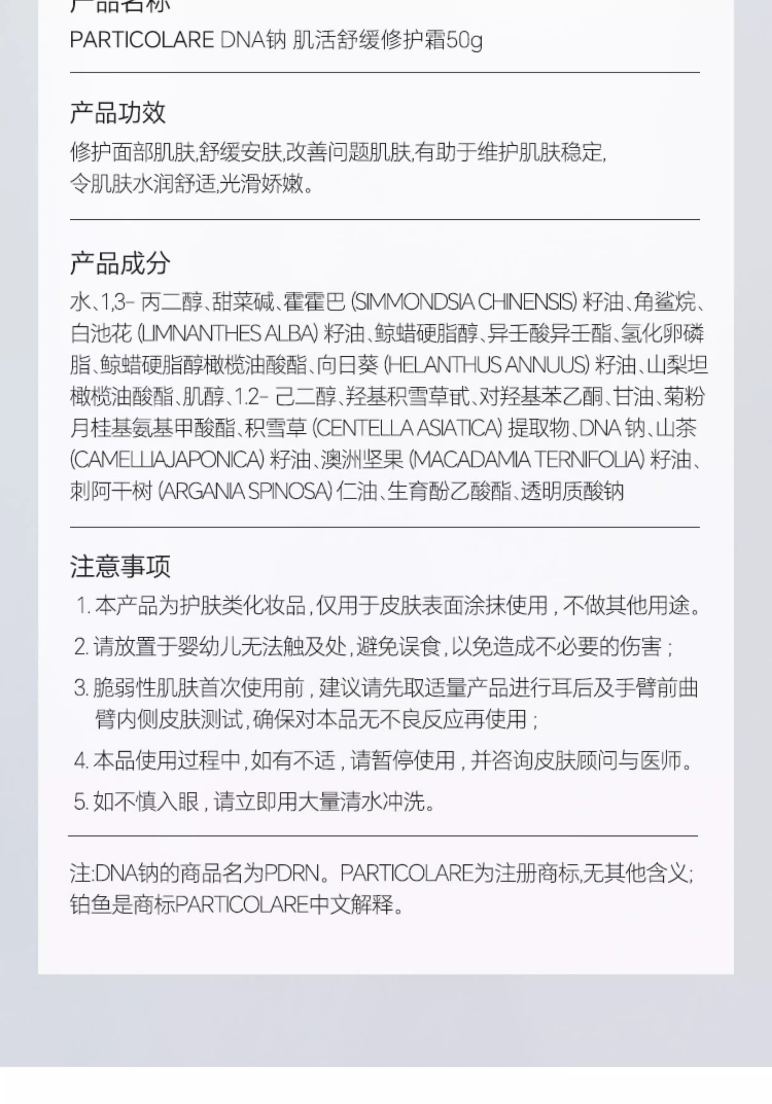 【妆】铂鱼三文鱼DNA钠修护霜滋润补水舒缓泛红敏感强韧屏障乳