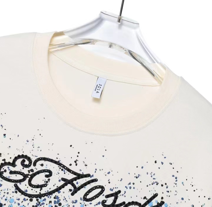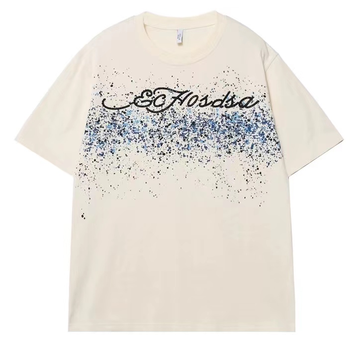 T253夏季破碎星空图案烫钻工艺潮流街头风国潮宽松个性短袖T恤