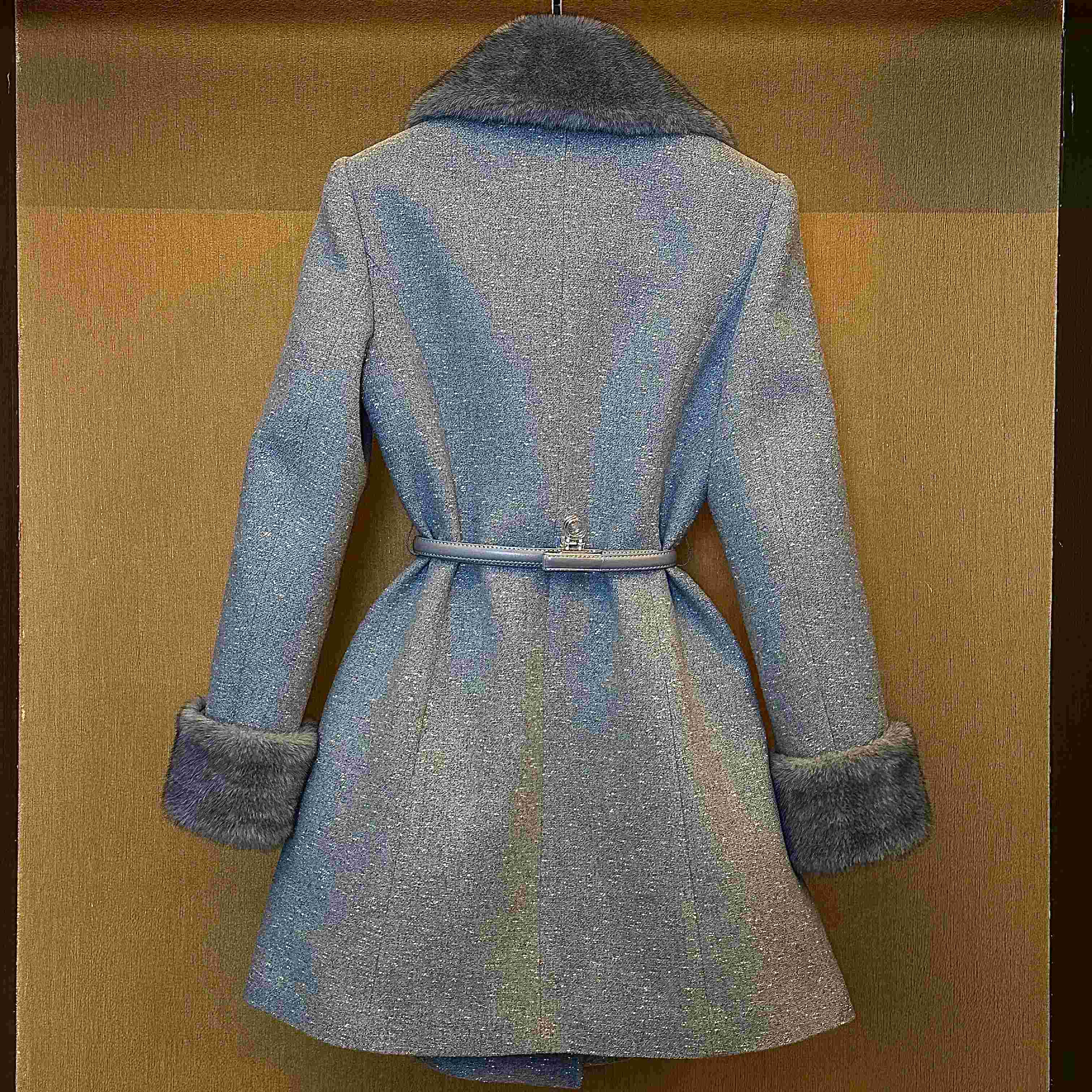 羊毛白鹅绒(袖子充绒毛领可拆卸)时尚气质收腰鹅绒服DHZZR408096