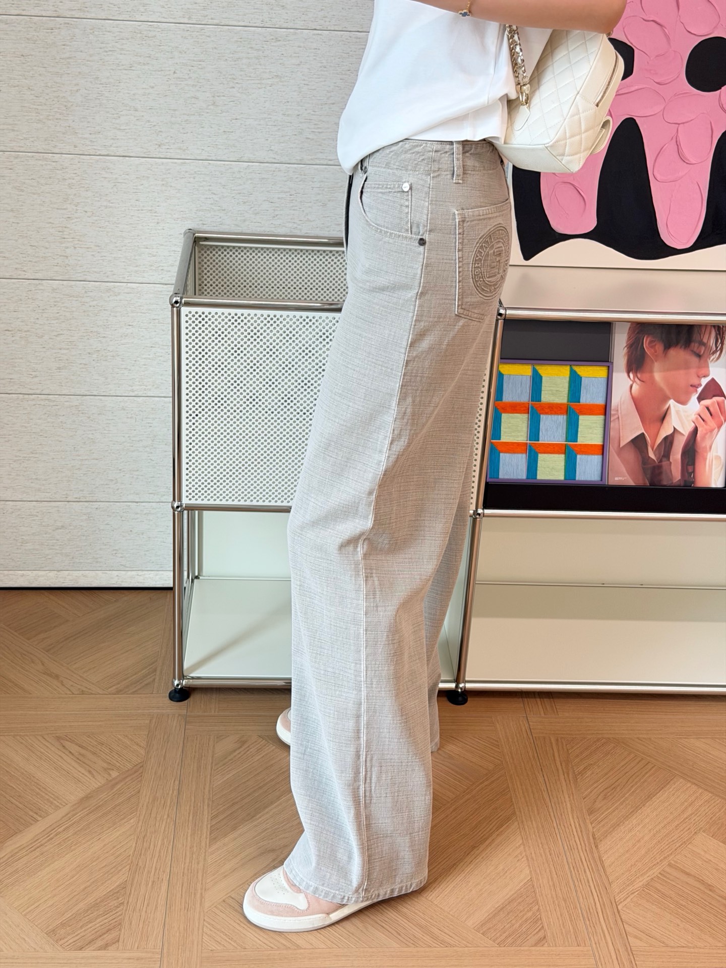 【爆款现货发售】⭐️重工裸灰色牛仔裤🍂低饱和度的裸灰色系穿搭🤩YB定制牛仔面料!