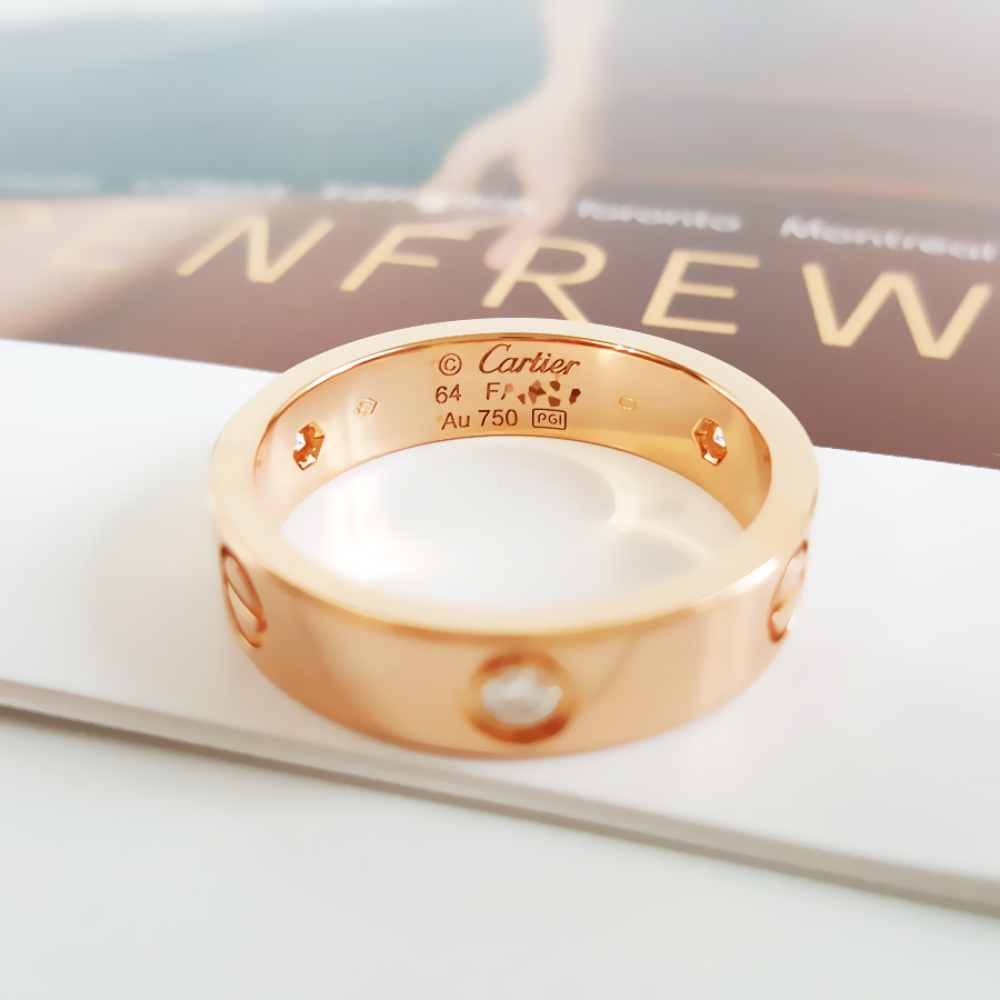 【95新】Cartier卡地亚LOVE系列B4087564 18K玫瑰金宽版三钻戒指64圈号 现售价:11500元! 191025TJ54