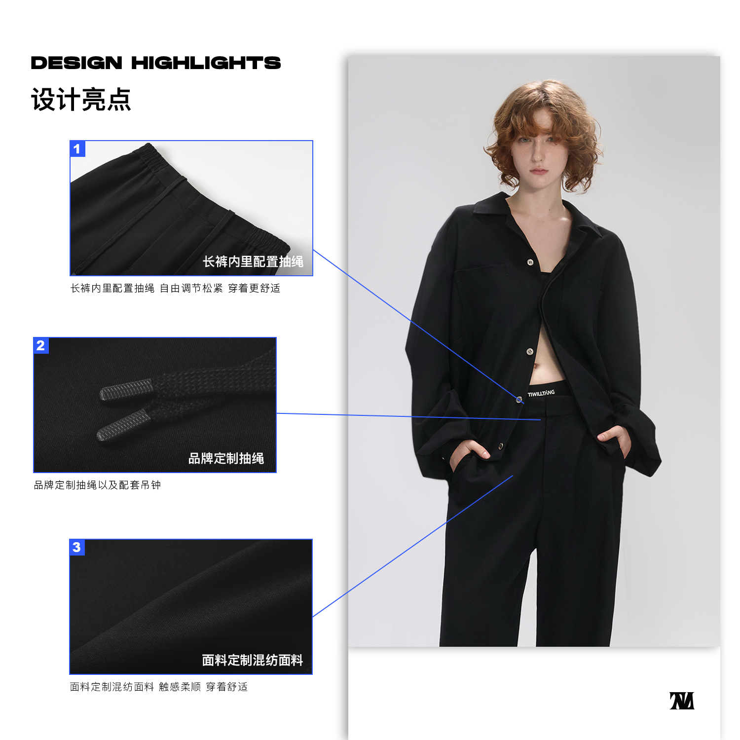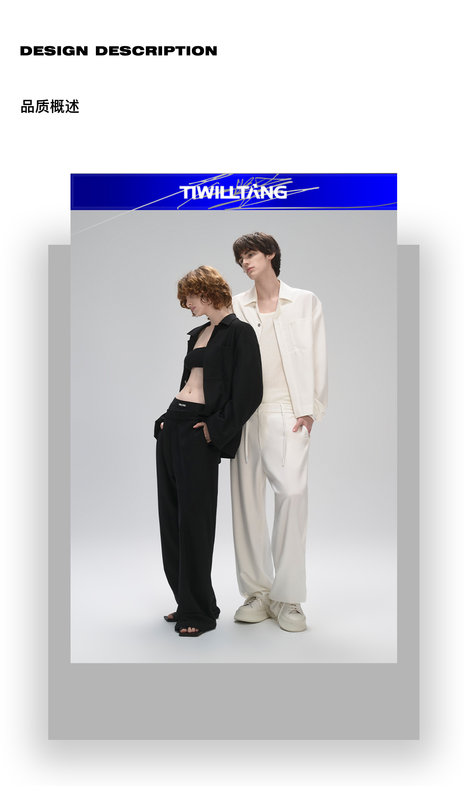 启世录TIWILLTANG“虚室生白”现代简约撞色拼接直筒西裤