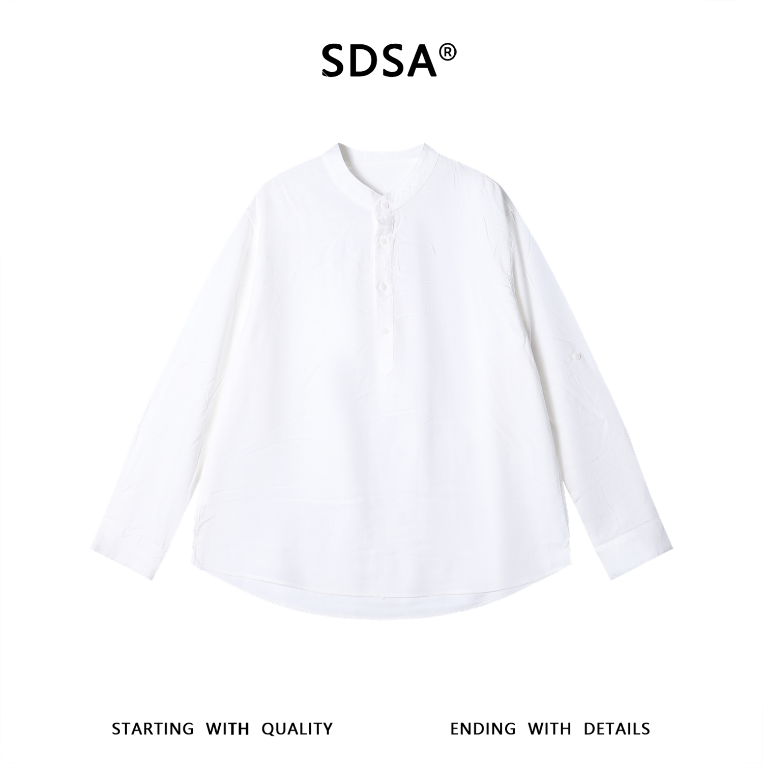 SDSA男装2026新款高贵轻奢潮牌复古亨利领宽松长袖衬衫
