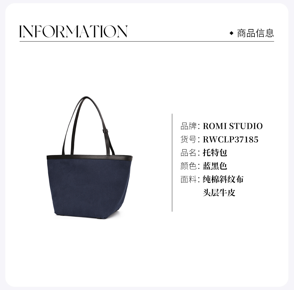 ROMI STUDIO 首饰袋 头层牛皮肩带斜纹布正反背托特包RWCLP37185