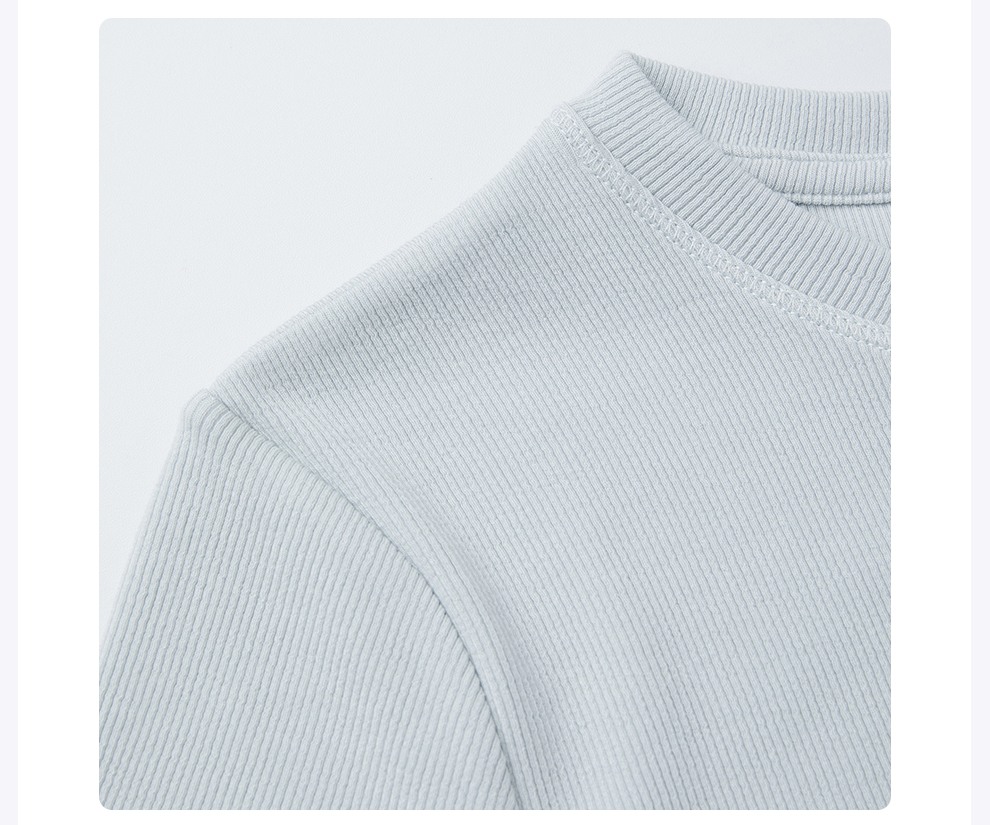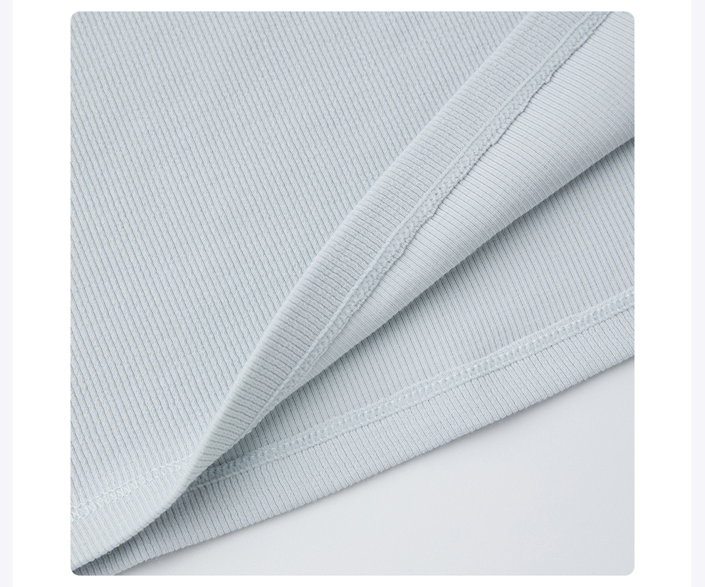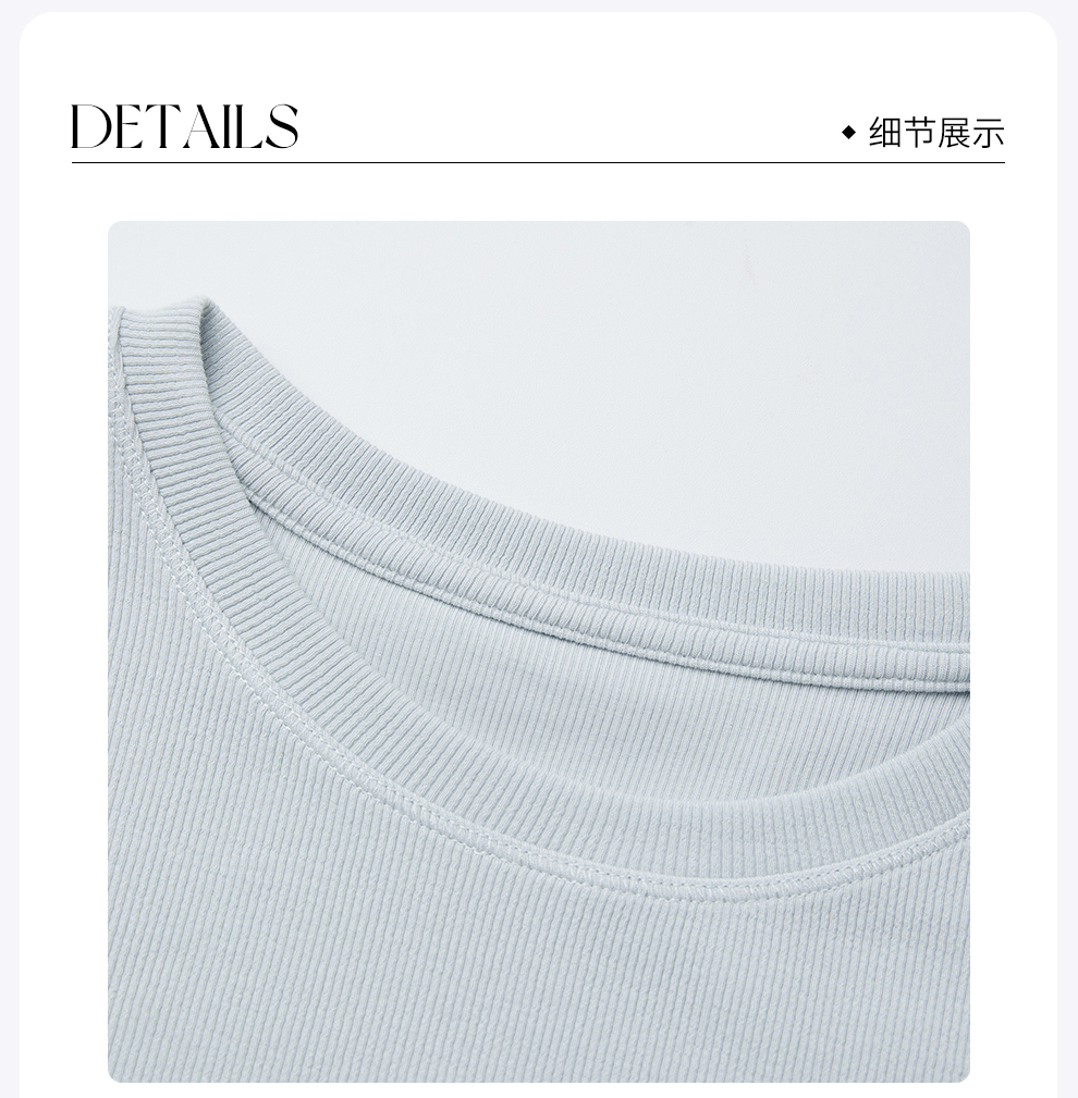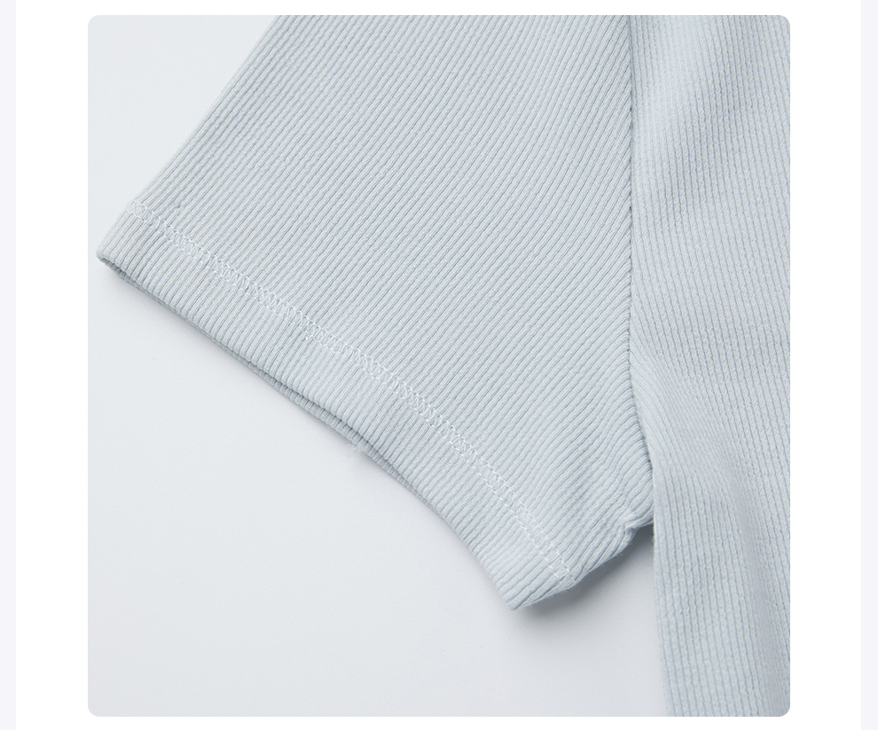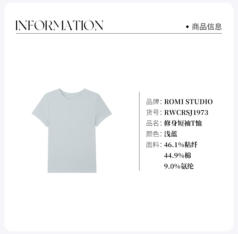 ROMI STUDIO“简约清新”浅蓝弹力罗纹修身圆领短袖T恤 RWCRSJ1973