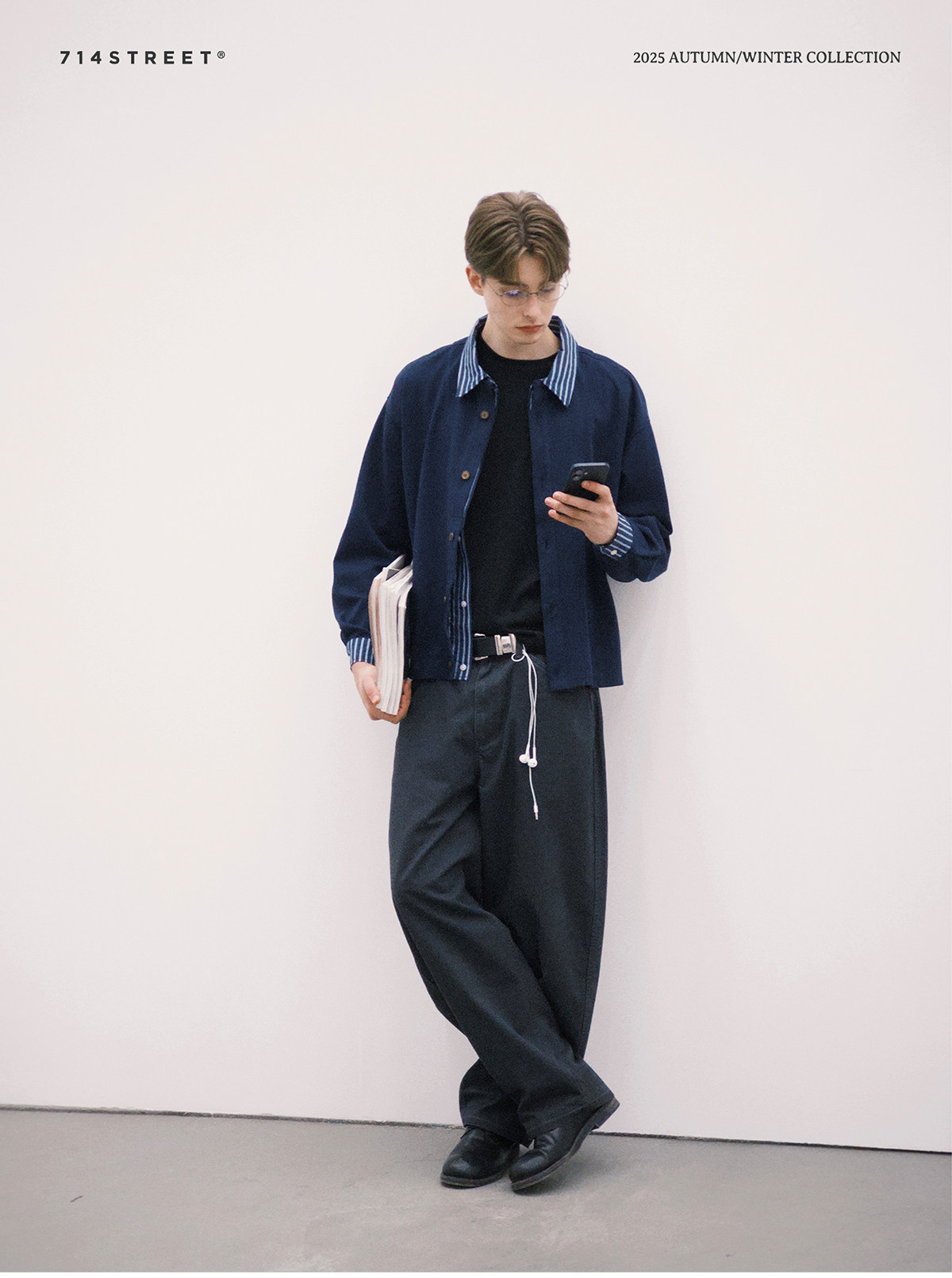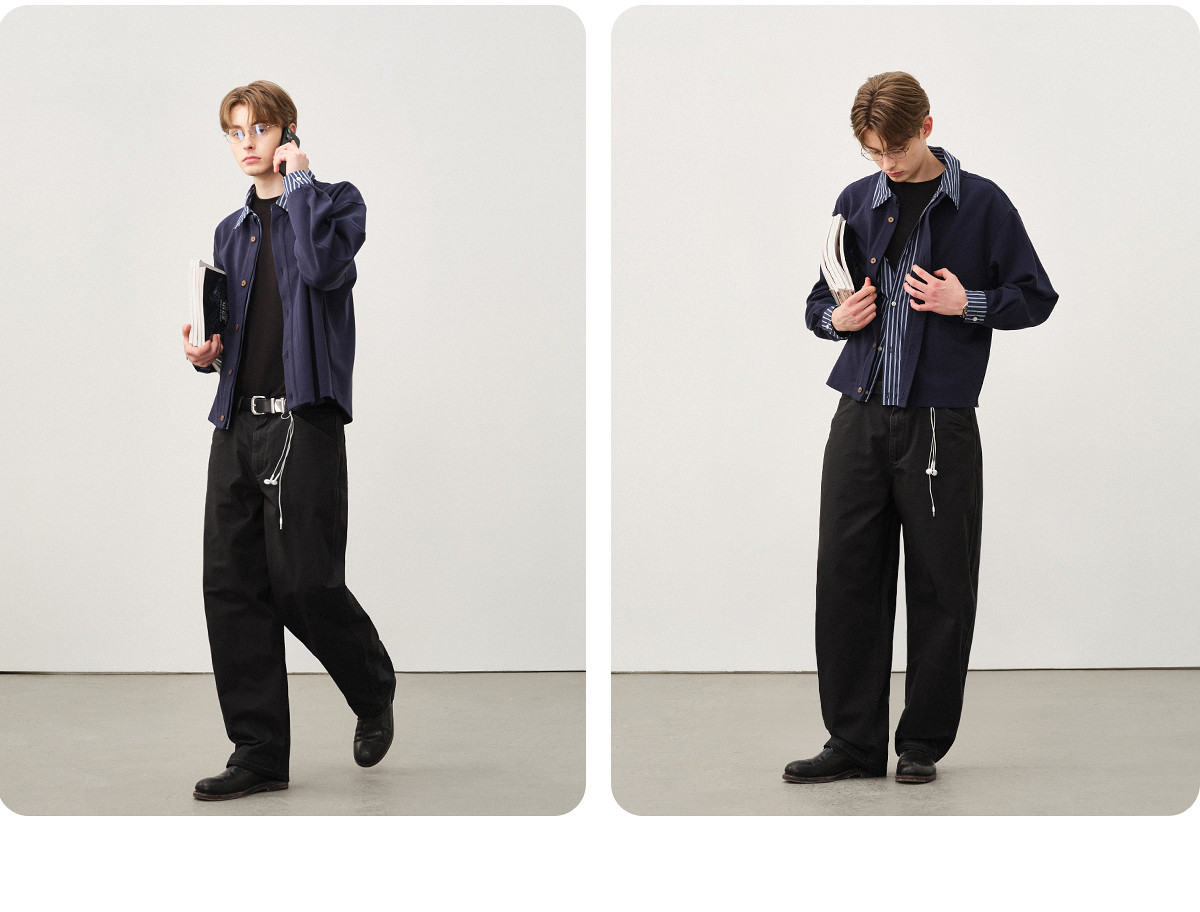 714street水洗纯棉宽松休闲裤男2025秋季新款弯刀裤cleanfit长裤