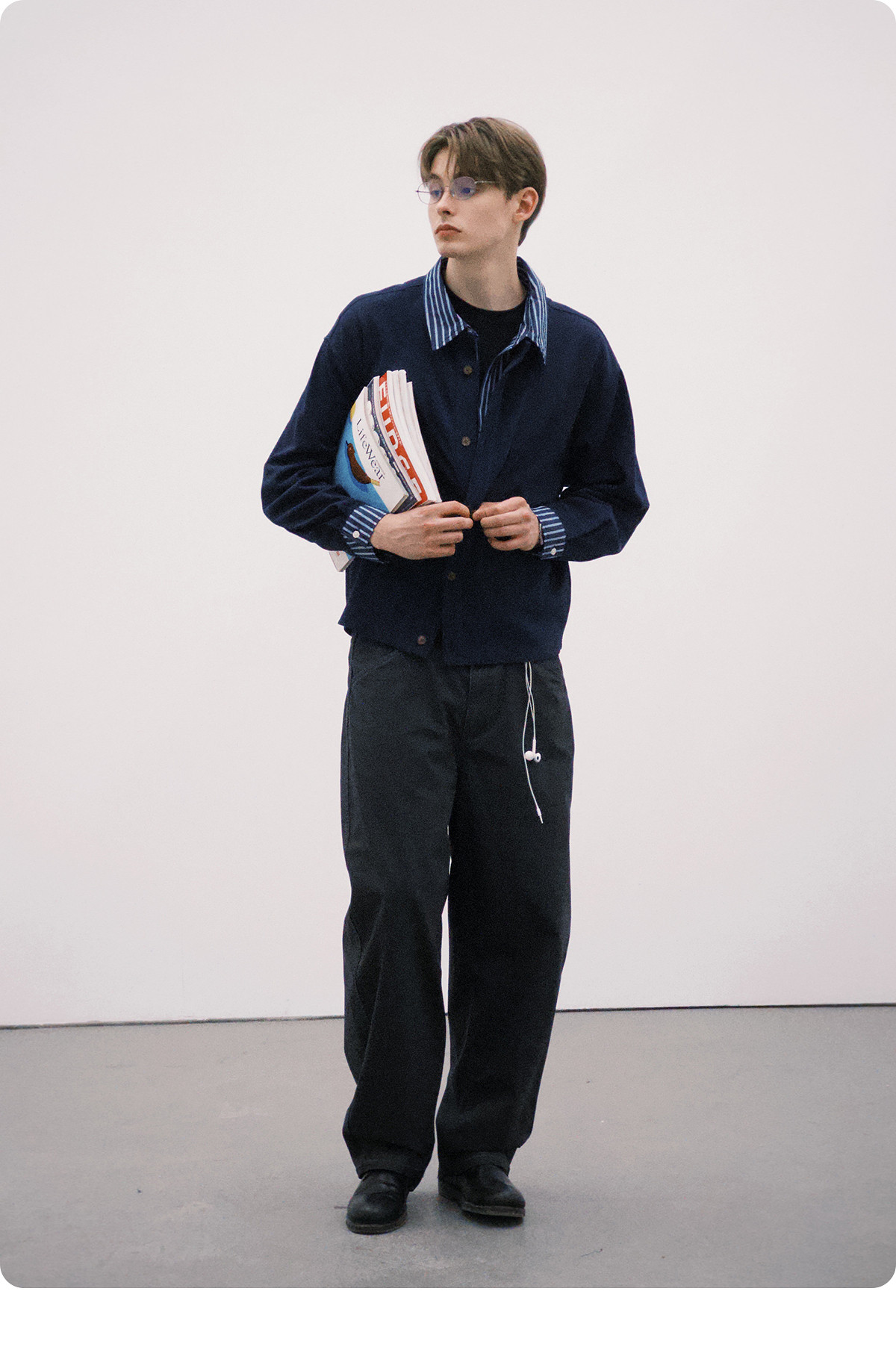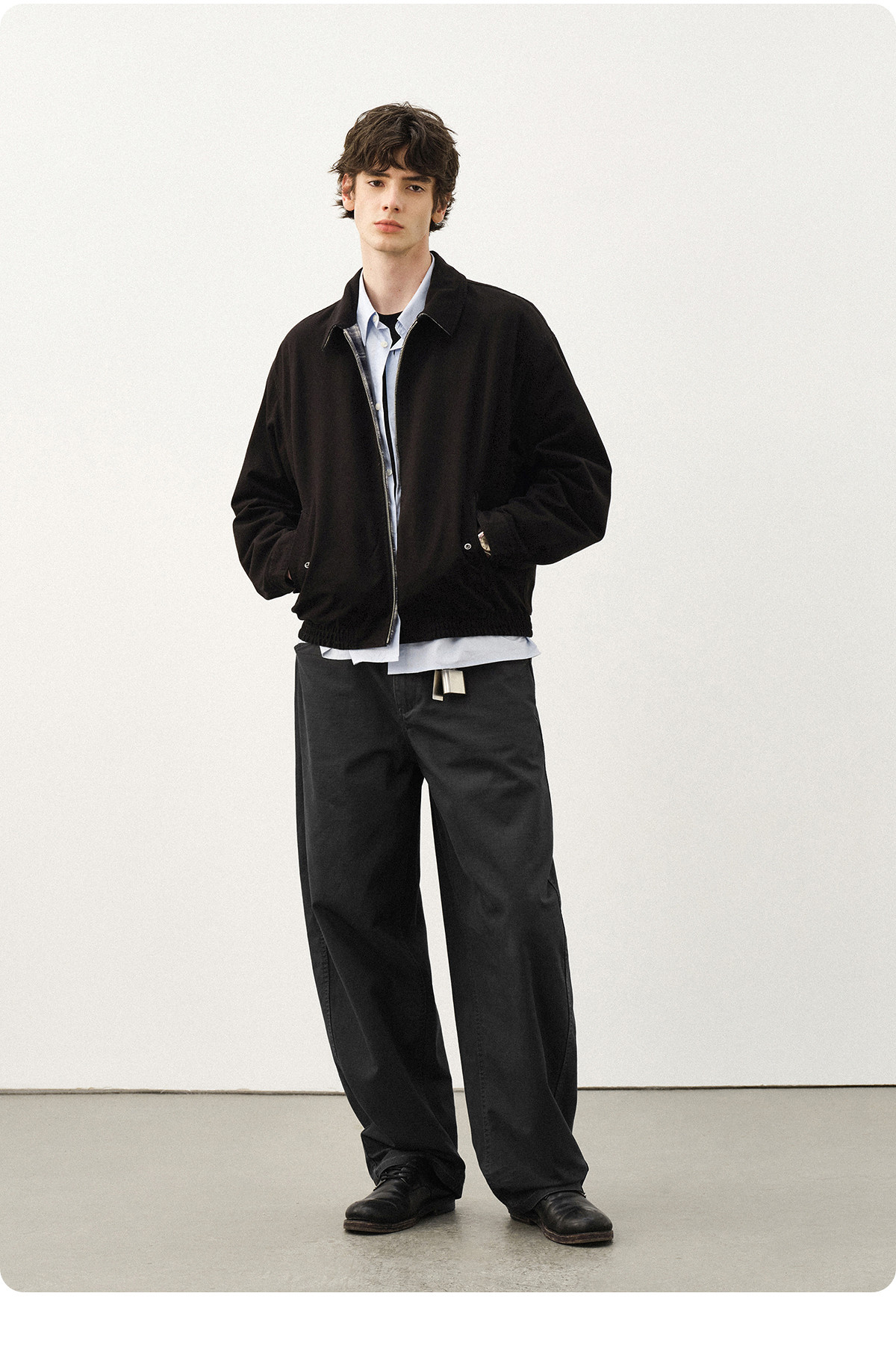 714street肌理天丝长袖衬衫2026春季新款潮牌简约纯色尖领衬衣男
