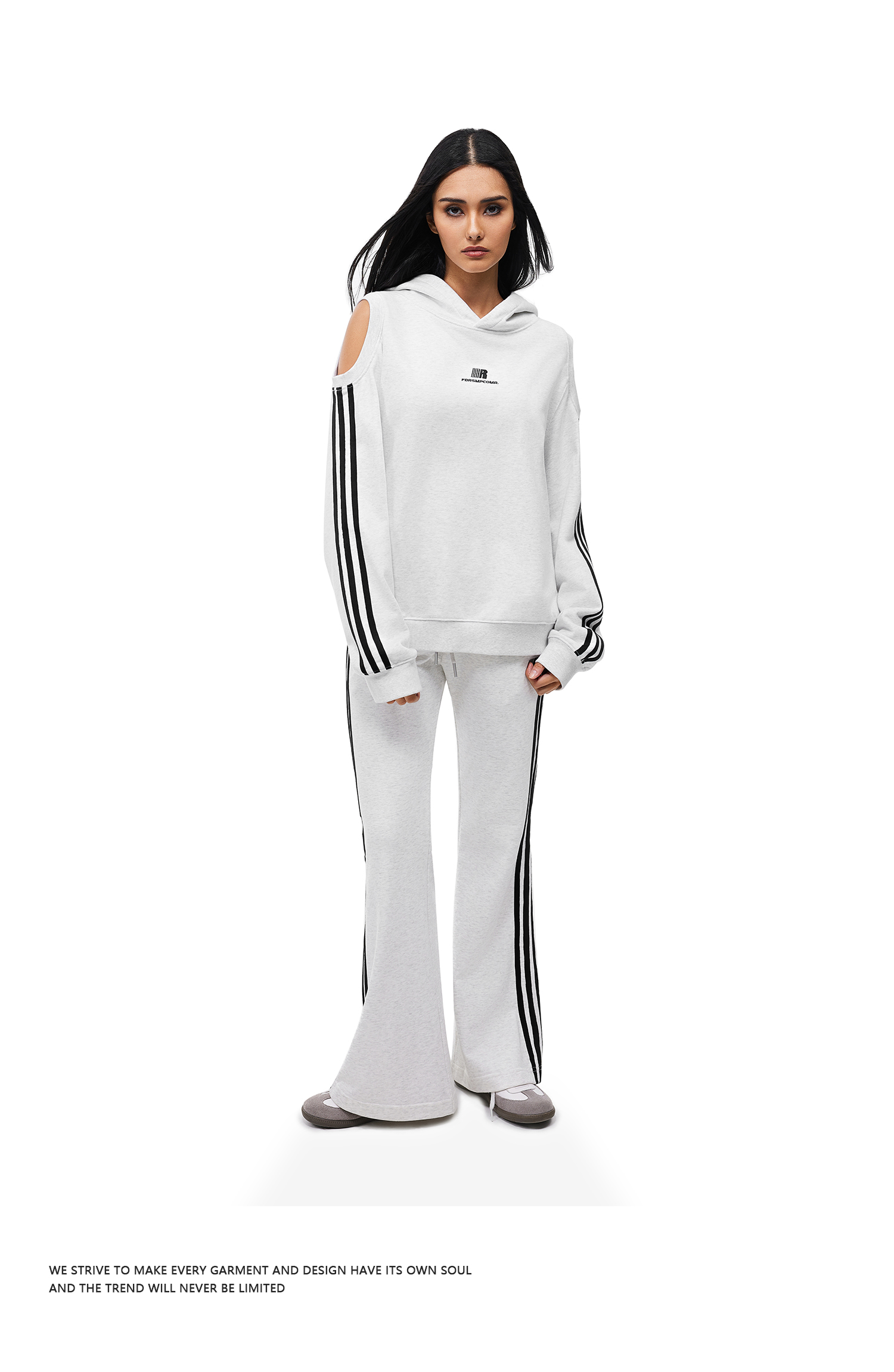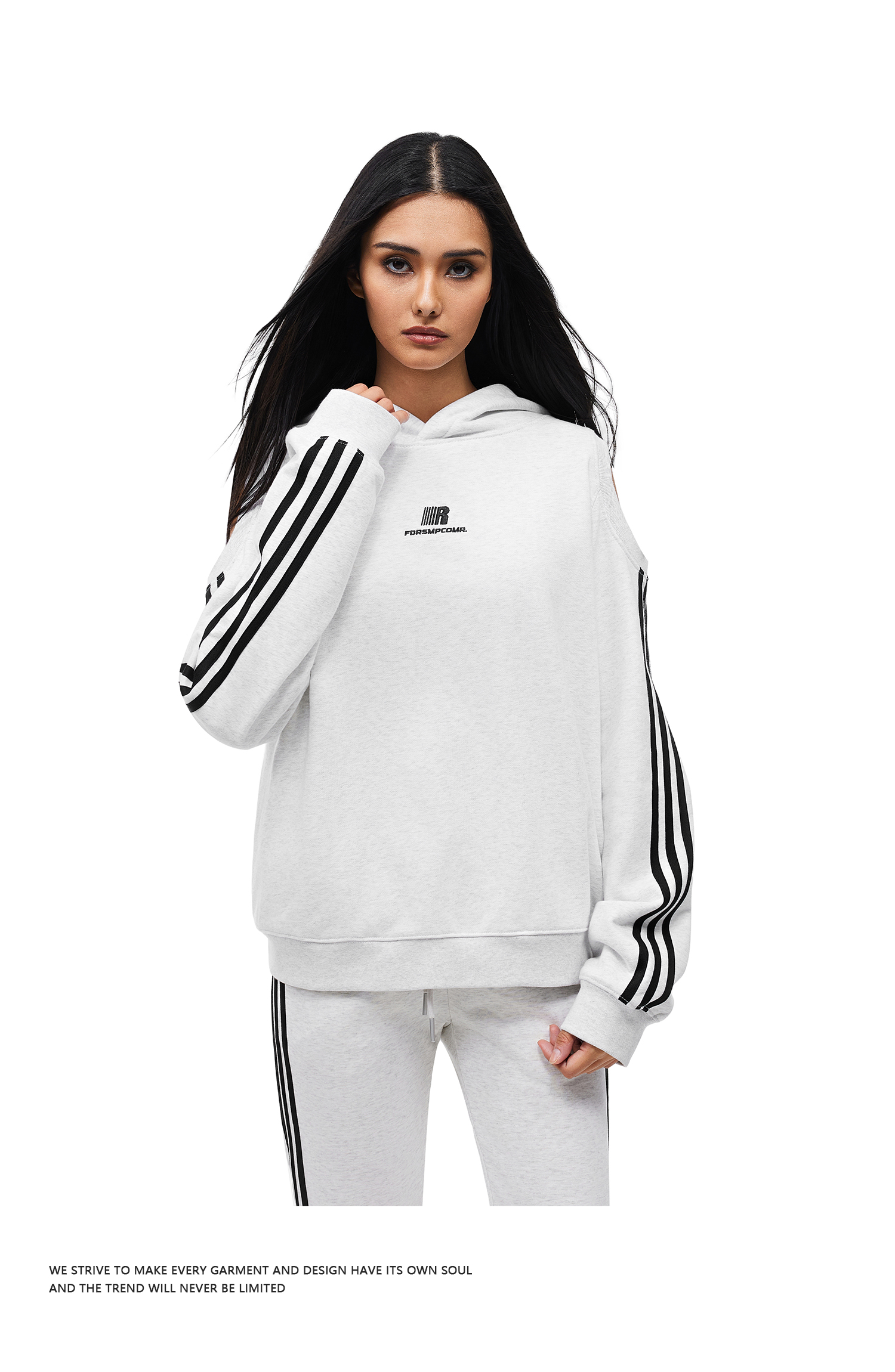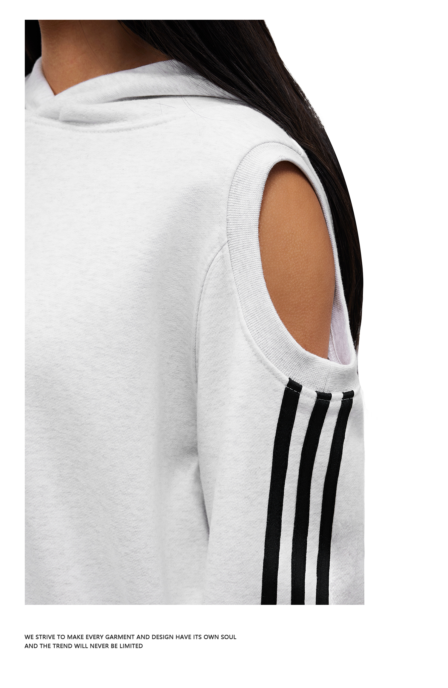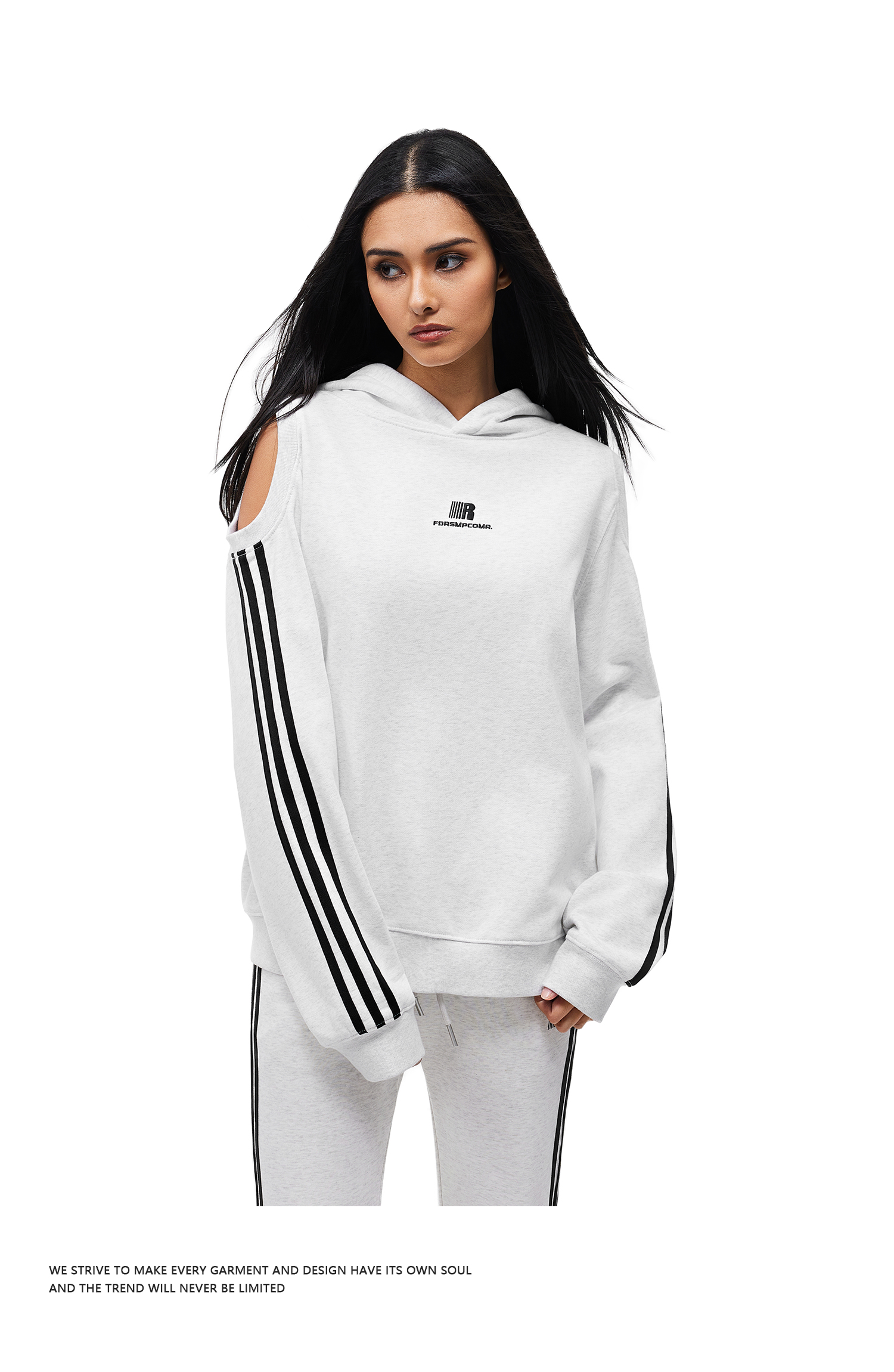 FDR官方店 镂空挖肩连帽卫衣女秋季织带撞色宽松运动上衣帽衫