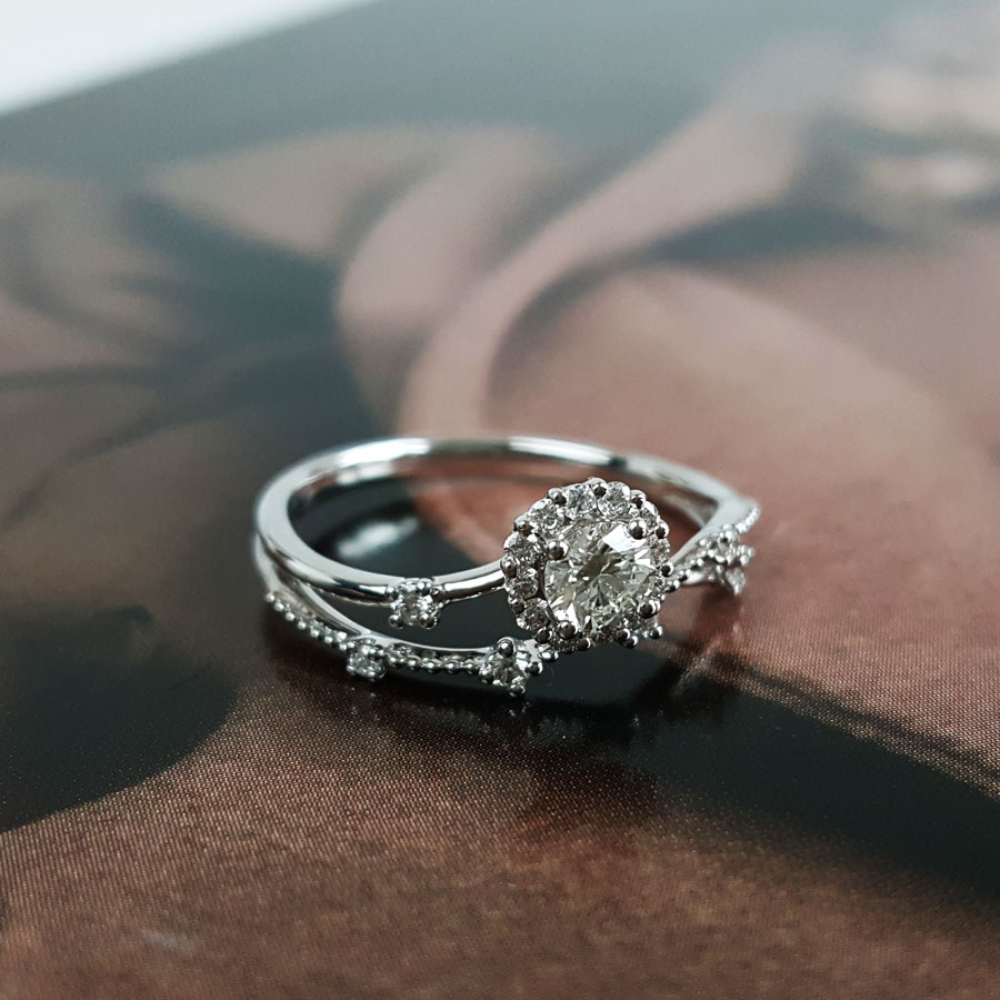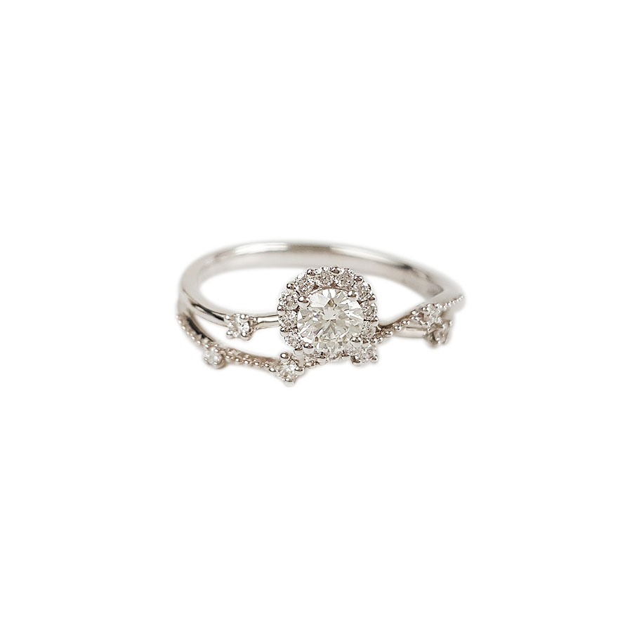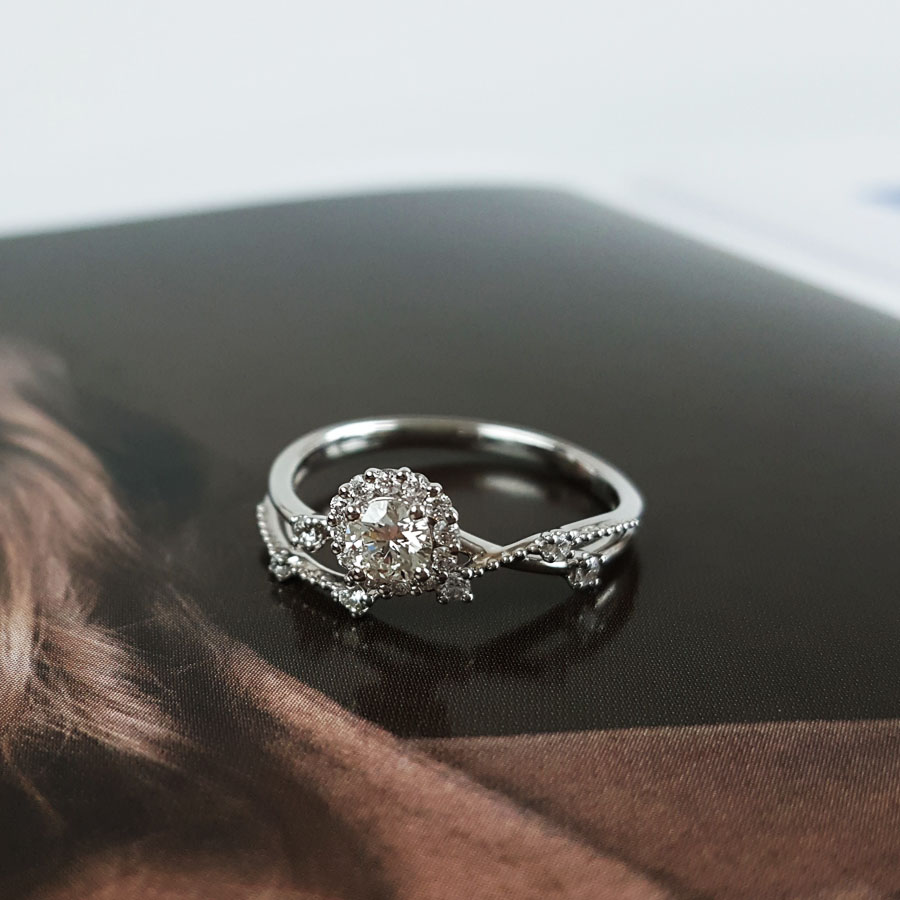 款式 | AU750白金时尚交织镂空四爪款花朵造型0.21克拉钻石戒指 |