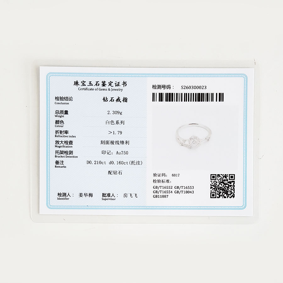 颜色/材质 | 白色/钻石/AU750白金 |