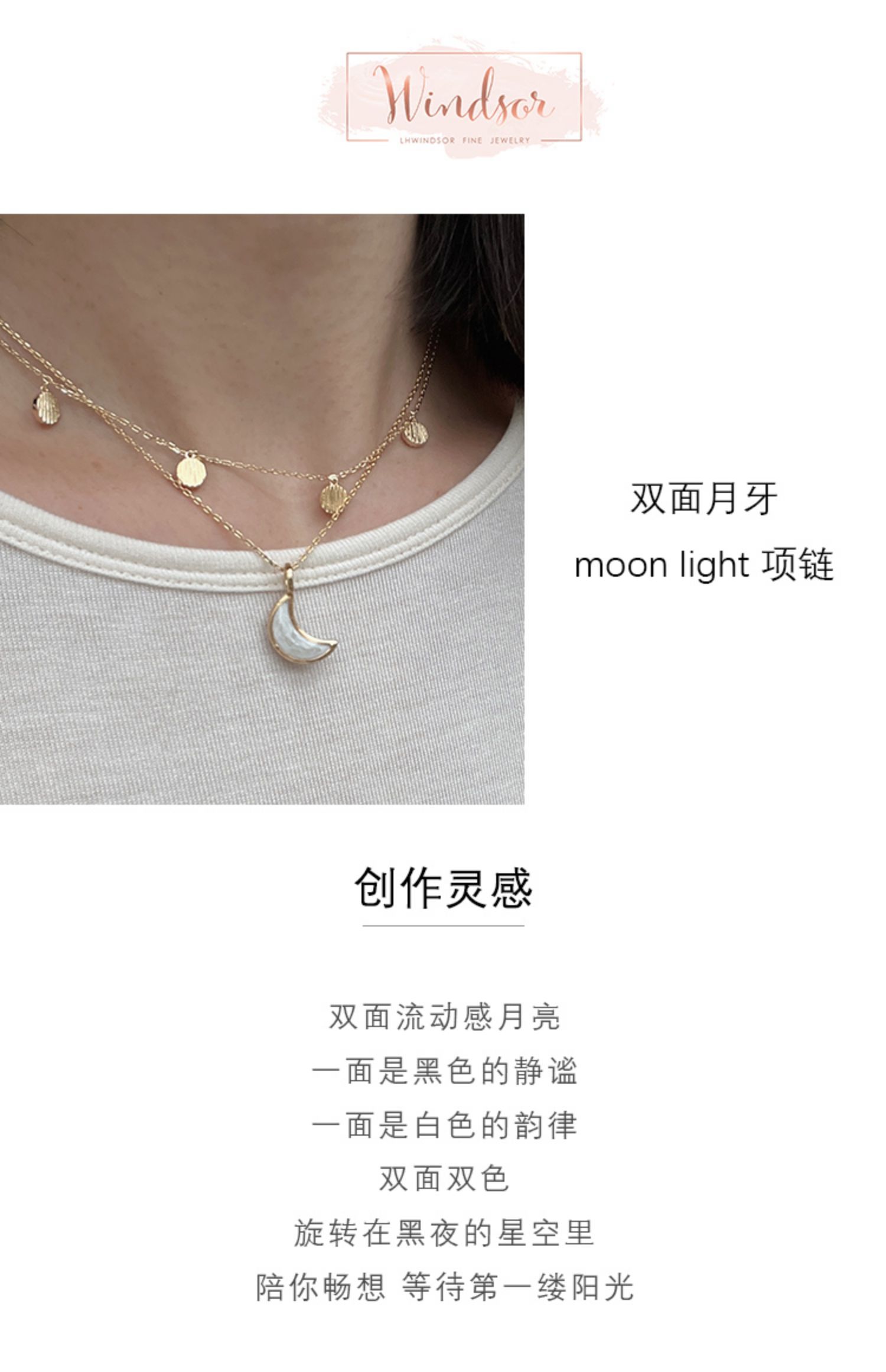 LHWINDSOR Fine Jewelry 白昼黑夜双面月牙项链黑白双面项链