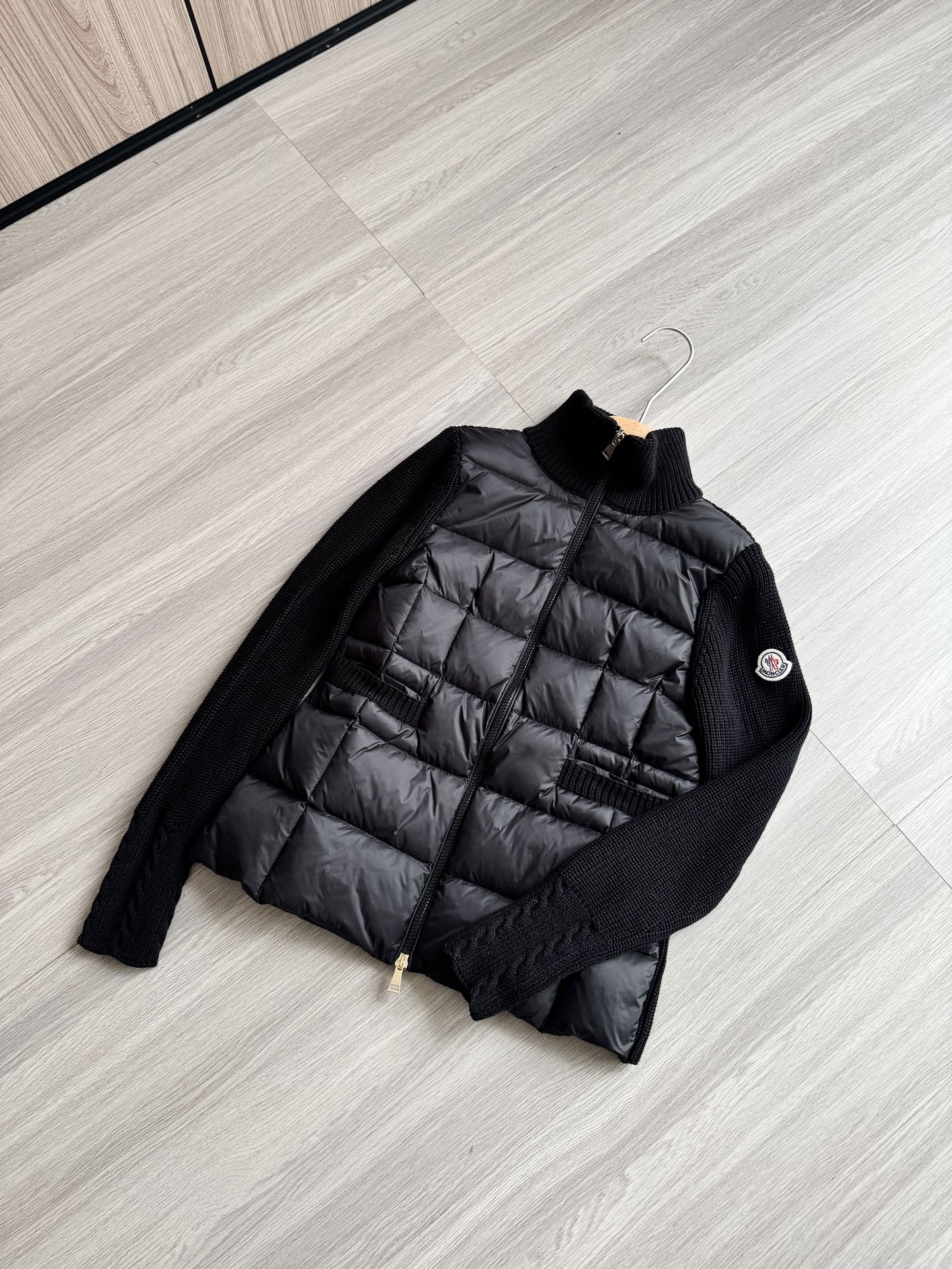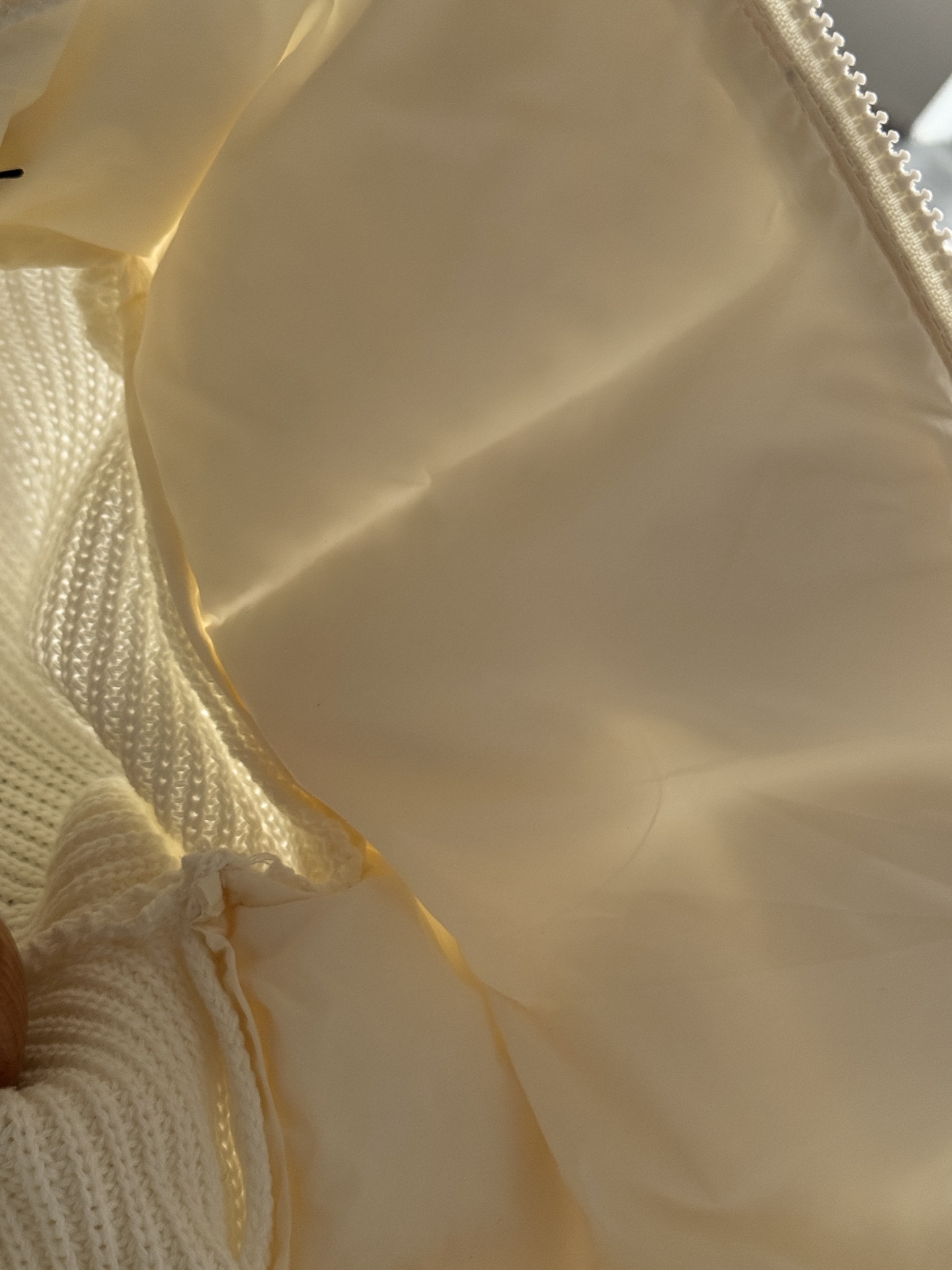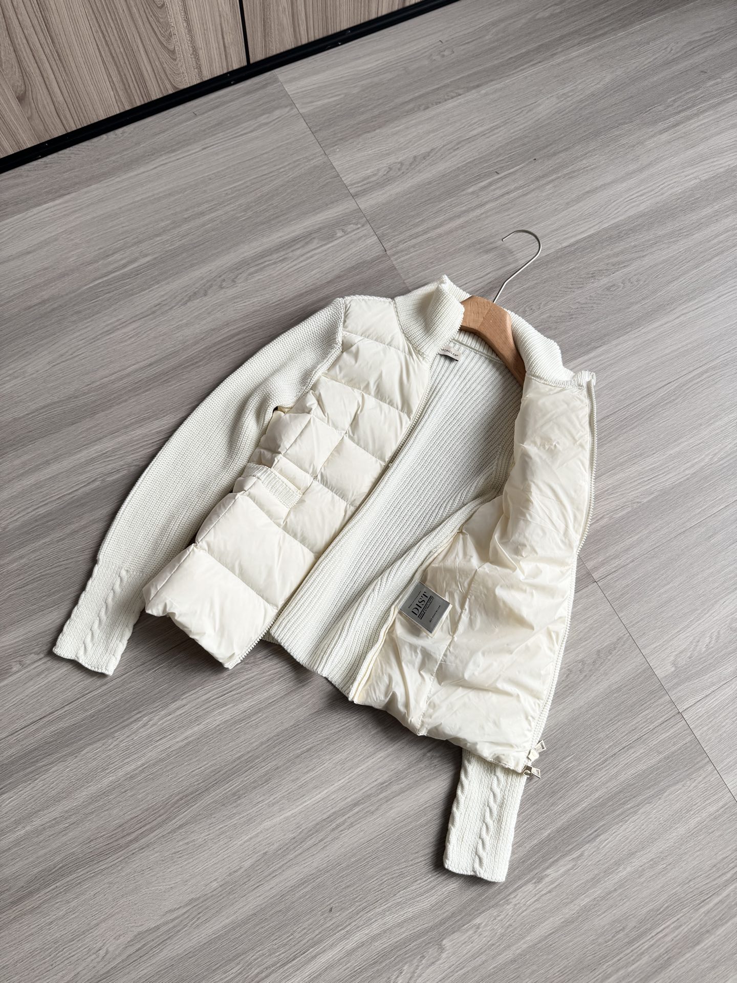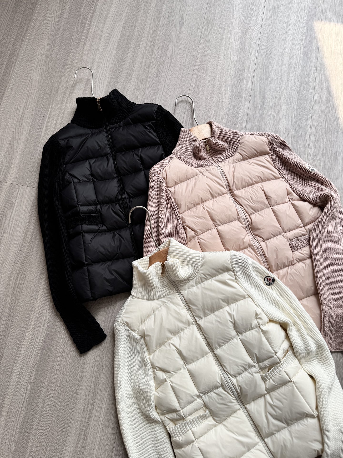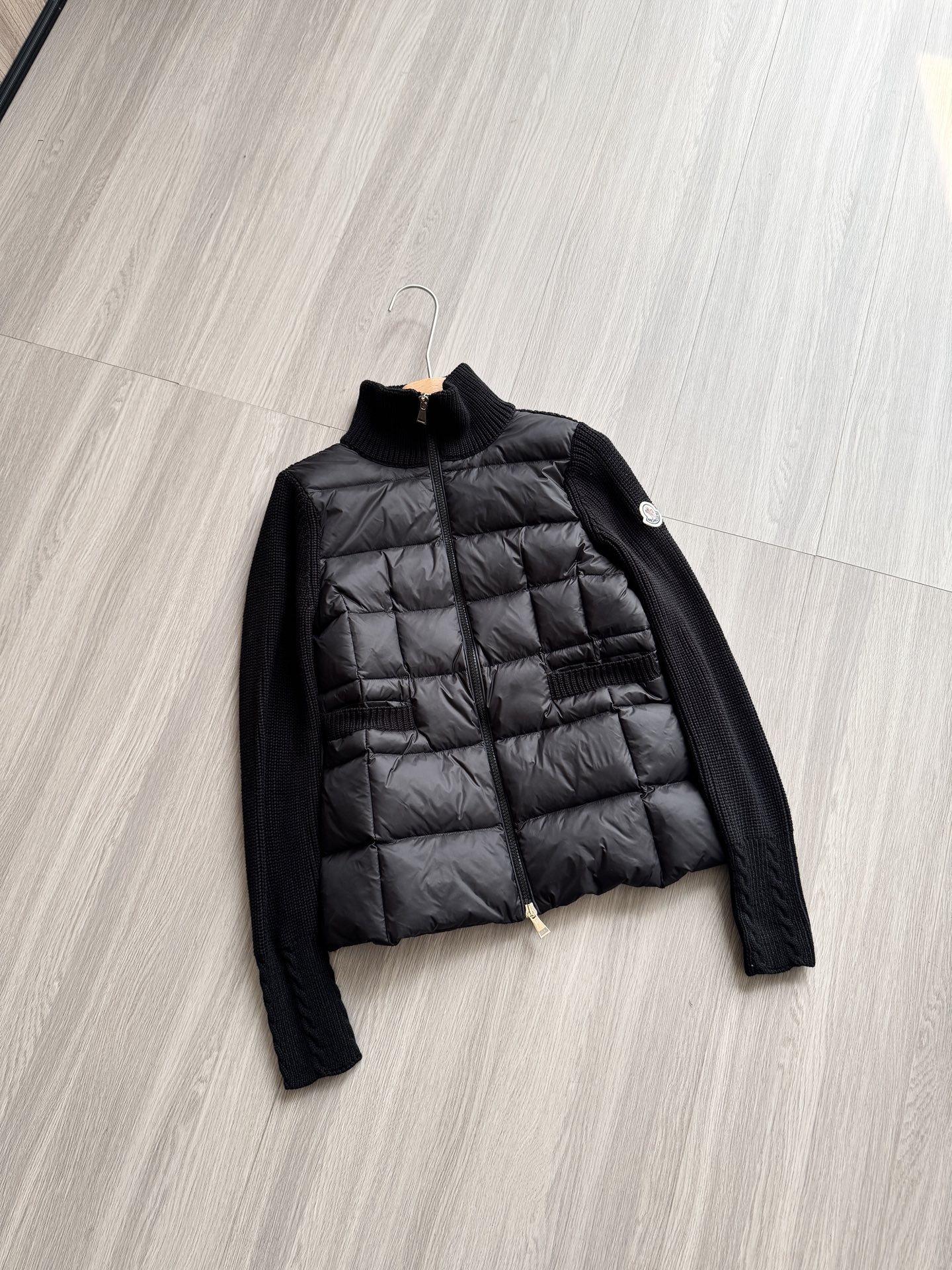 蒙口针织拼接羽绒外套 立领的设计太戳我了,既能防风保暖,又不显得臃肿,立起领子就是酷飒风,适当敞开翻领又能干净利落,风格切换超自如!最绝的是填充了90白鹅绒,蓬松度拉满,保暖效果直接拉满,在寒风里也能暖暖的