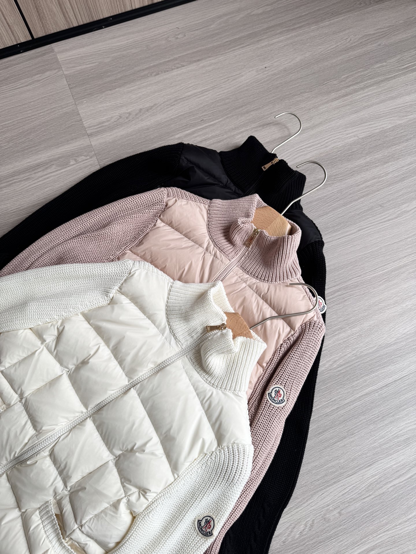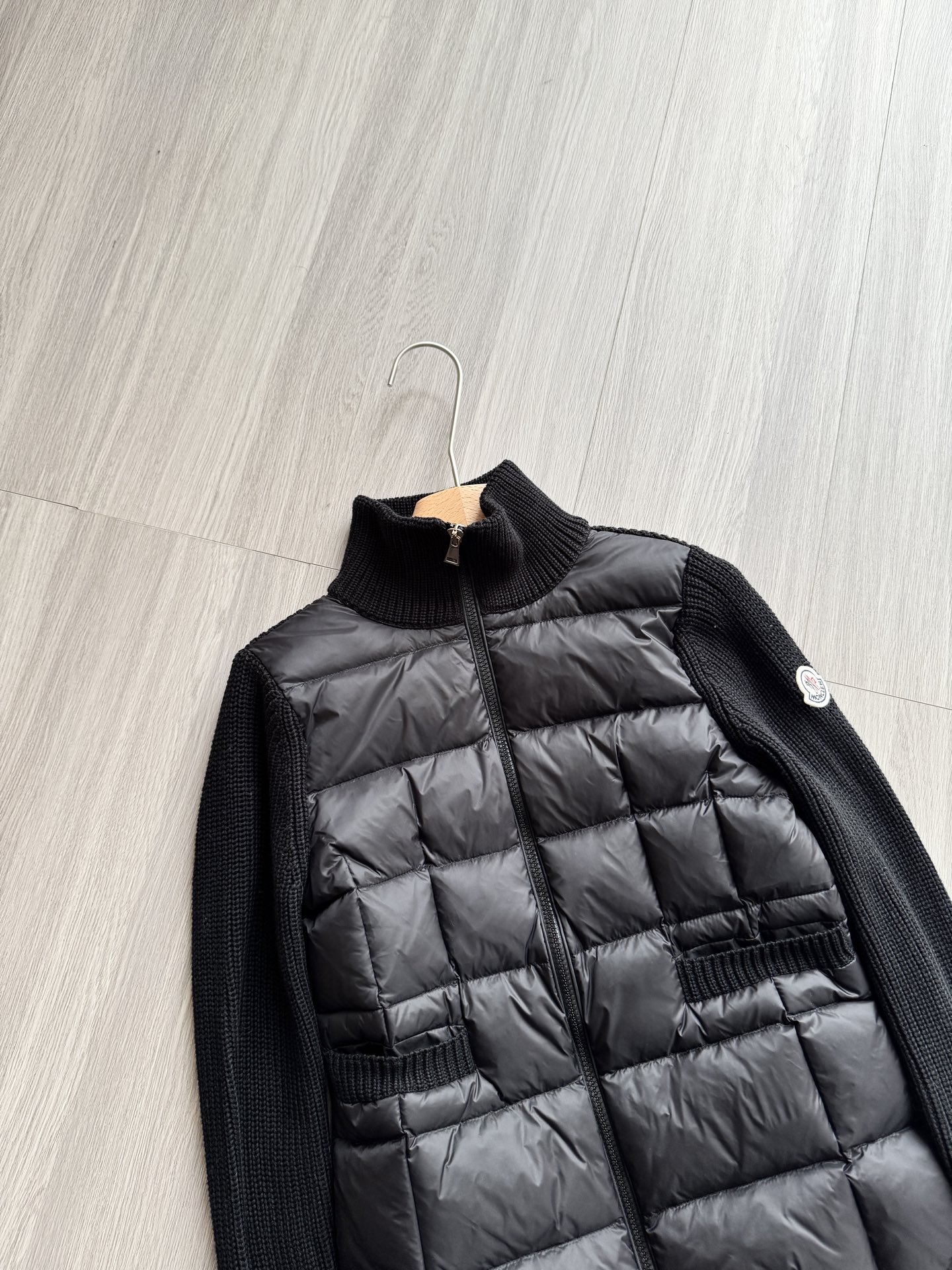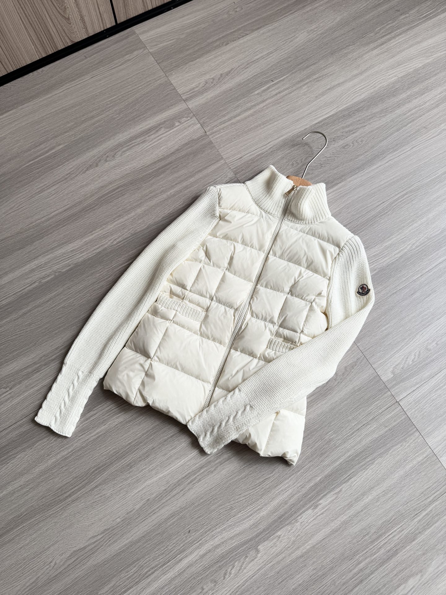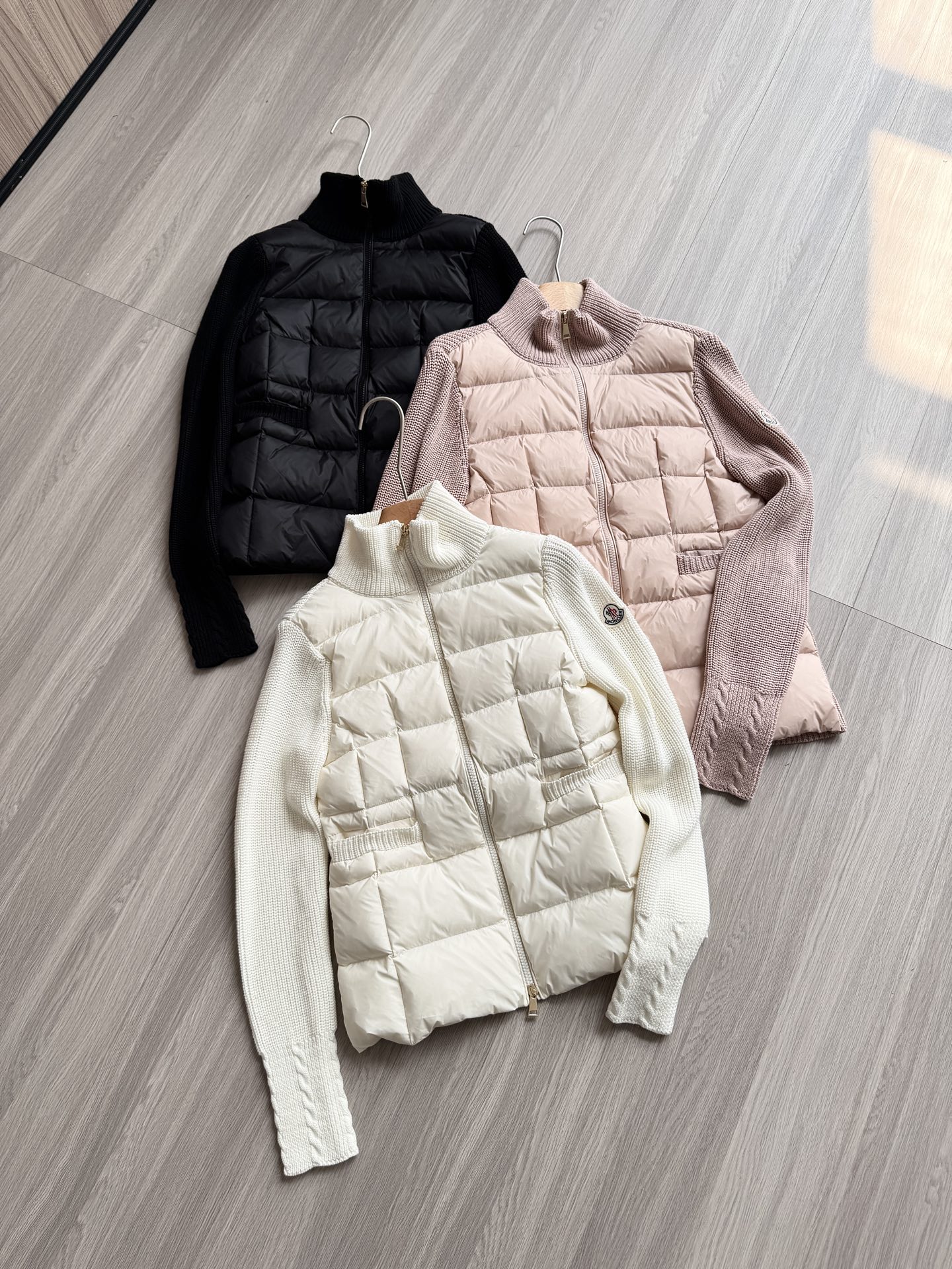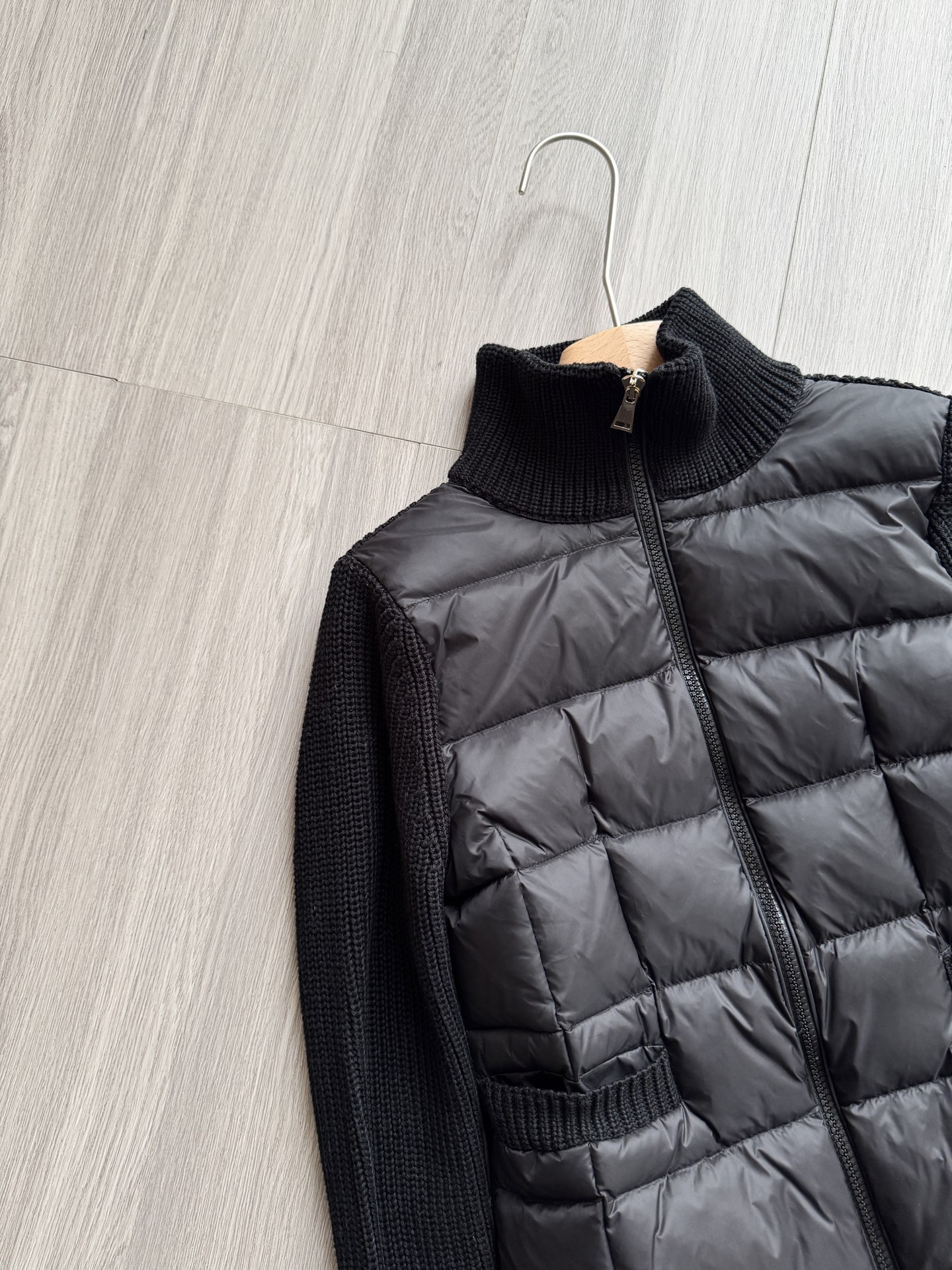 蒙口针织拼接羽绒外套 立领的设计太戳我了,既能防风保暖,又不显得臃肿,立起领子就是酷飒风,适当敞开翻领又能干净利落,风格切换超自如!最绝的是填充了90白鹅绒,蓬松度拉满,保暖效果直接拉满,在寒风里也能暖暖的