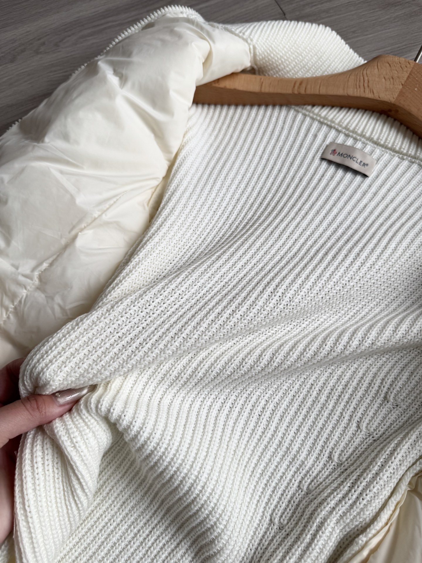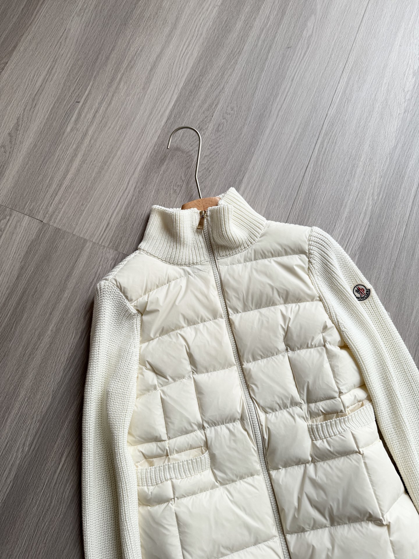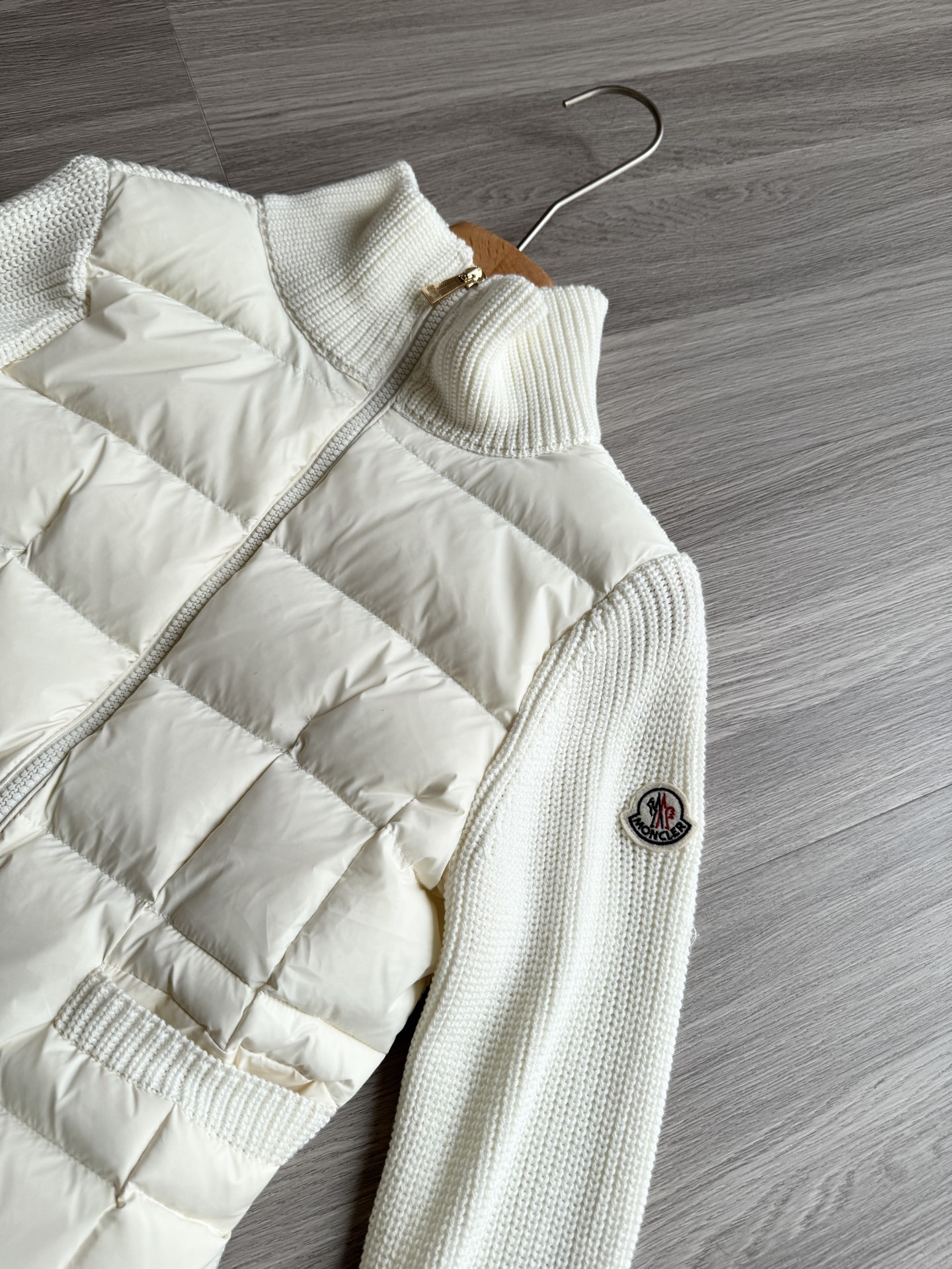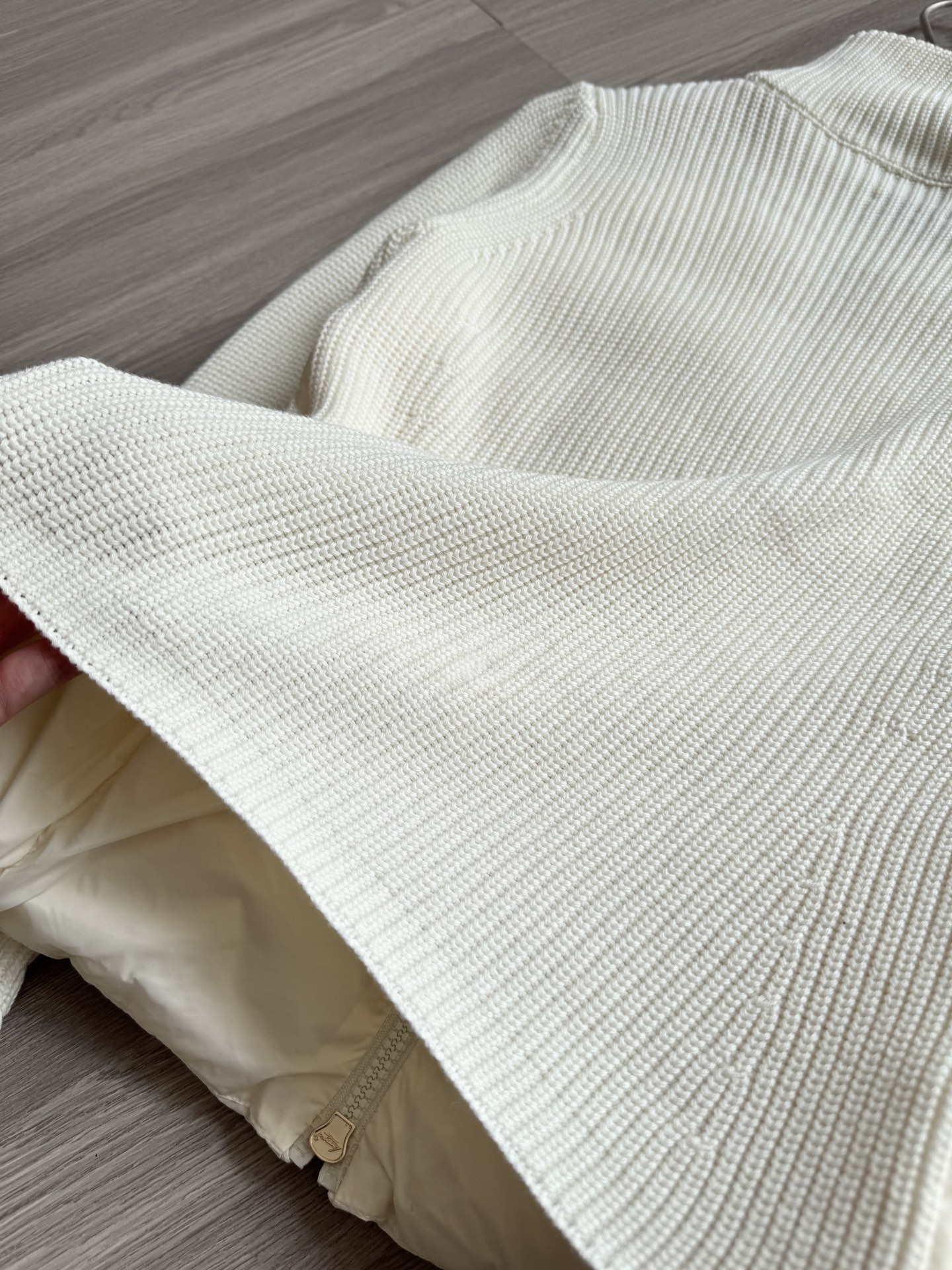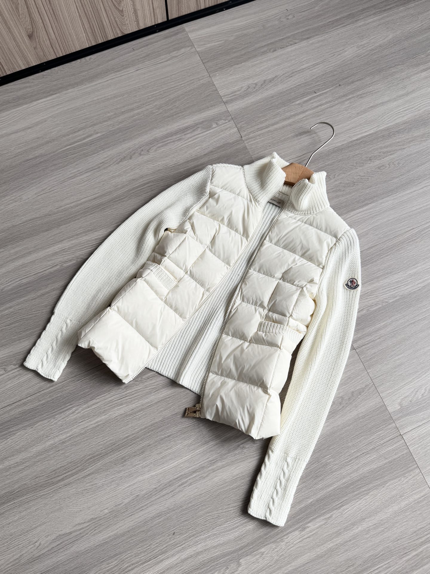 蒙口针织拼接羽绒外套 立领的设计太戳我了,既能防风保暖,又不显得臃肿,立起领子就是酷飒风,适当敞开翻领又能干净利落,风格切换超自如!最绝的是填充了90白鹅绒,蓬松度拉满,保暖效果直接拉满,在寒风里也能暖暖的
