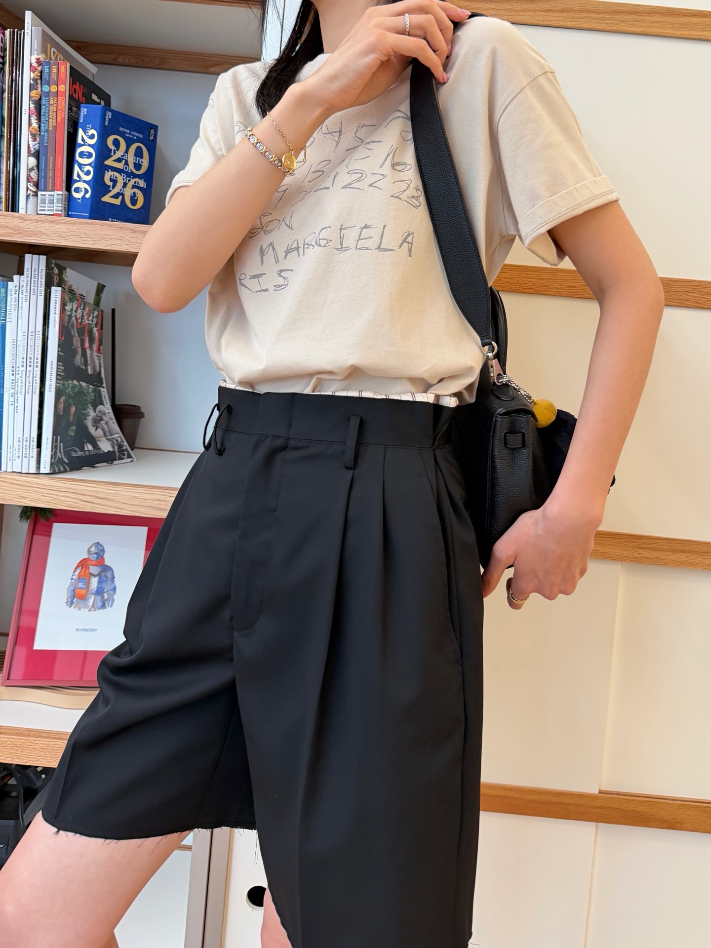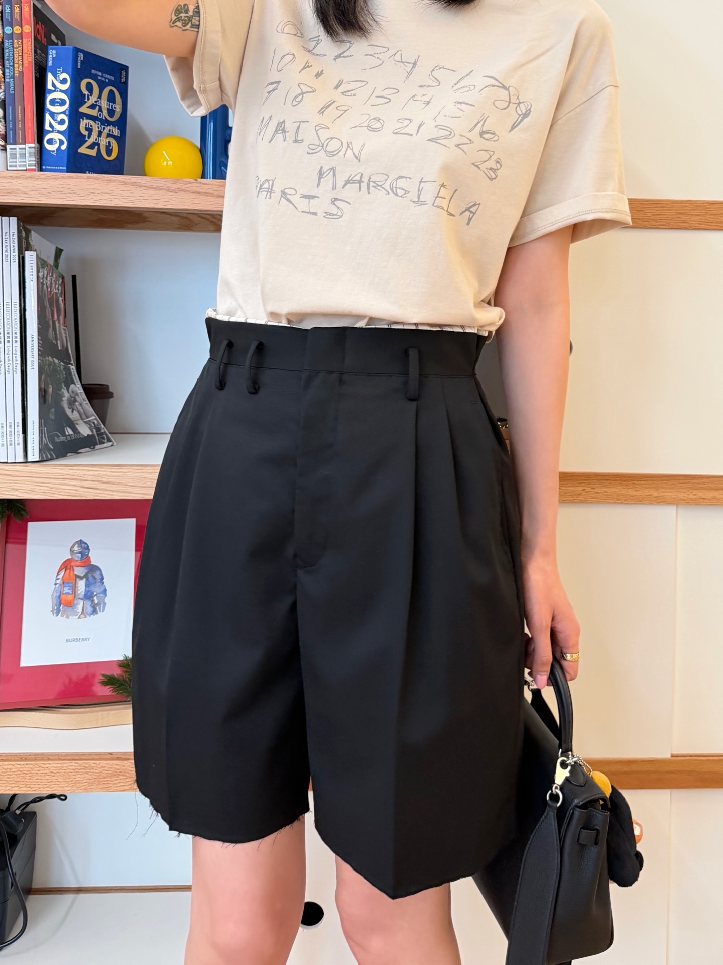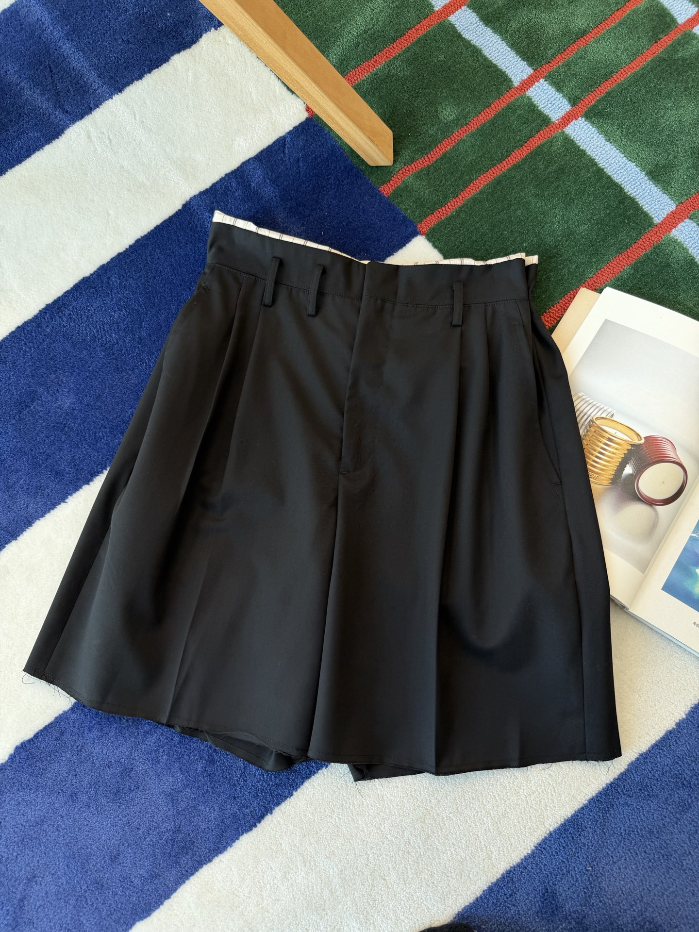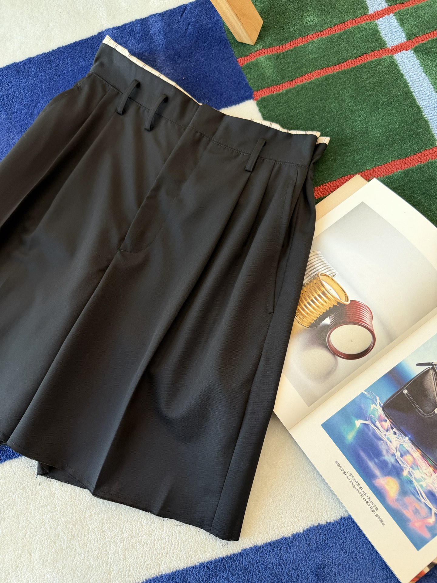 【新款现货发售】新款🆕黑色五分西装短裤✨ 把干练与优雅焊在身上💼腰部定制条纹面料拼接,细节感拉满,瞬间提升精致度☑️立体剪裁+高腰线设计,悄悄收住小肚子,拉长腿部比例,秒变纸片人😜挺括垂坠的西装面料,薄厚适中,质感在线,走路带风又利落💭可盐可甜可通勤,百搭到封神‼️衣橱刚需款闭眼入💫 码数SML