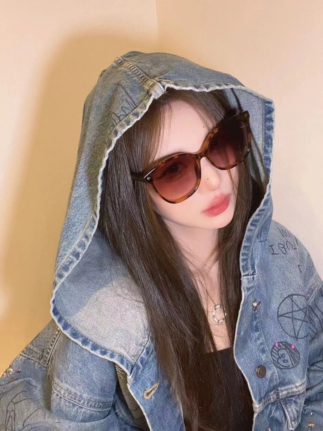 驴家新款镜腿花纹logo圆框墨镜(AN)