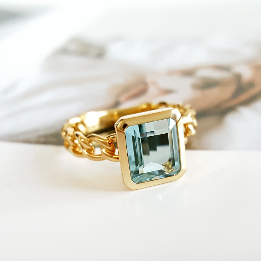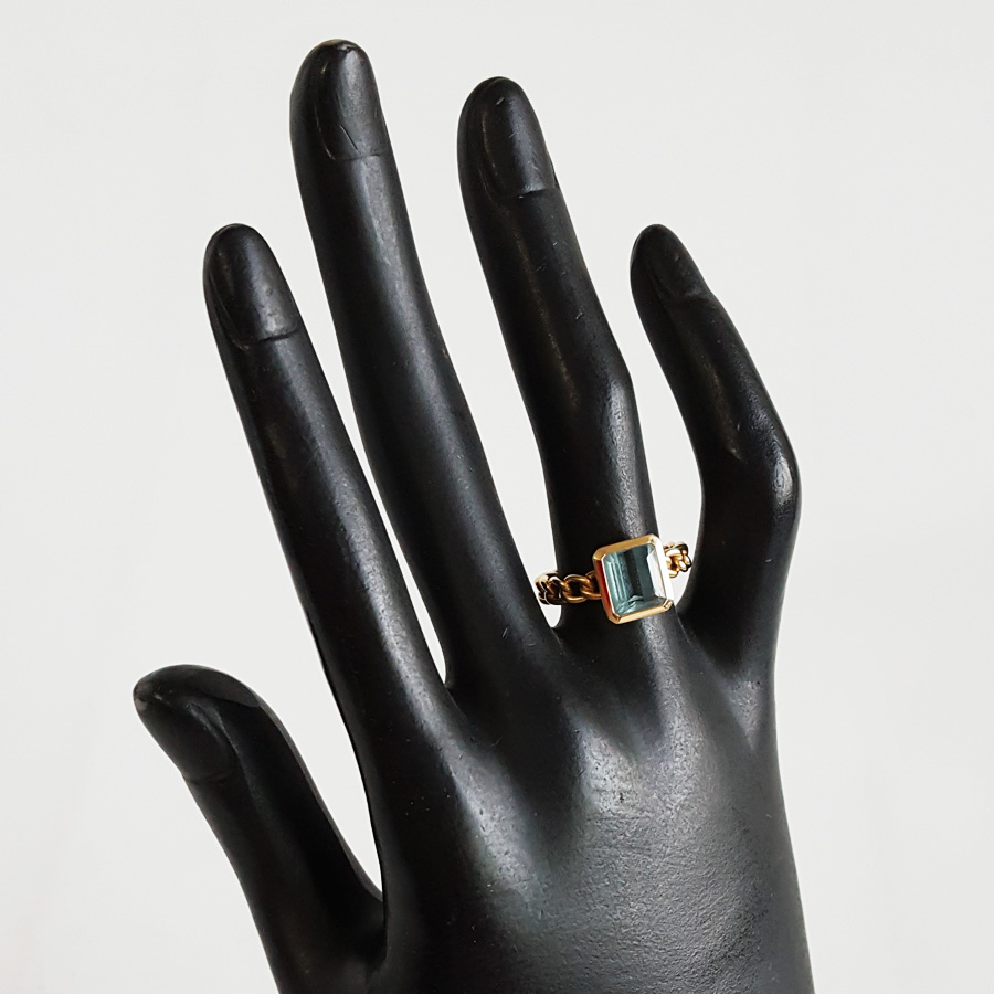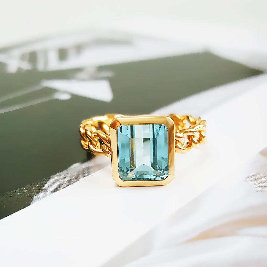【天然正品】AU750黄金镶天然蓝色5A级2.593克拉海蓝宝石戒指13.5号(戒圈可调节) 101225TJ18