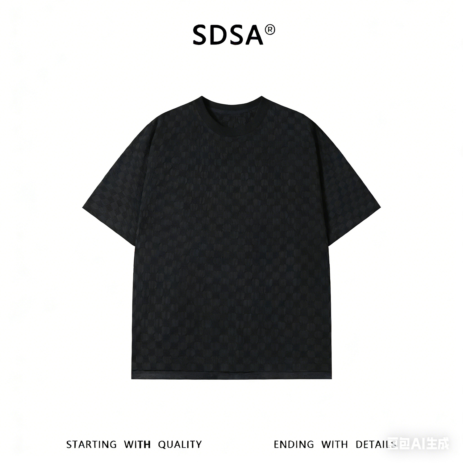 SDSA男装2026新款高贵轻奢高级感棋盘格提花圆领短袖T恤百搭上衣
