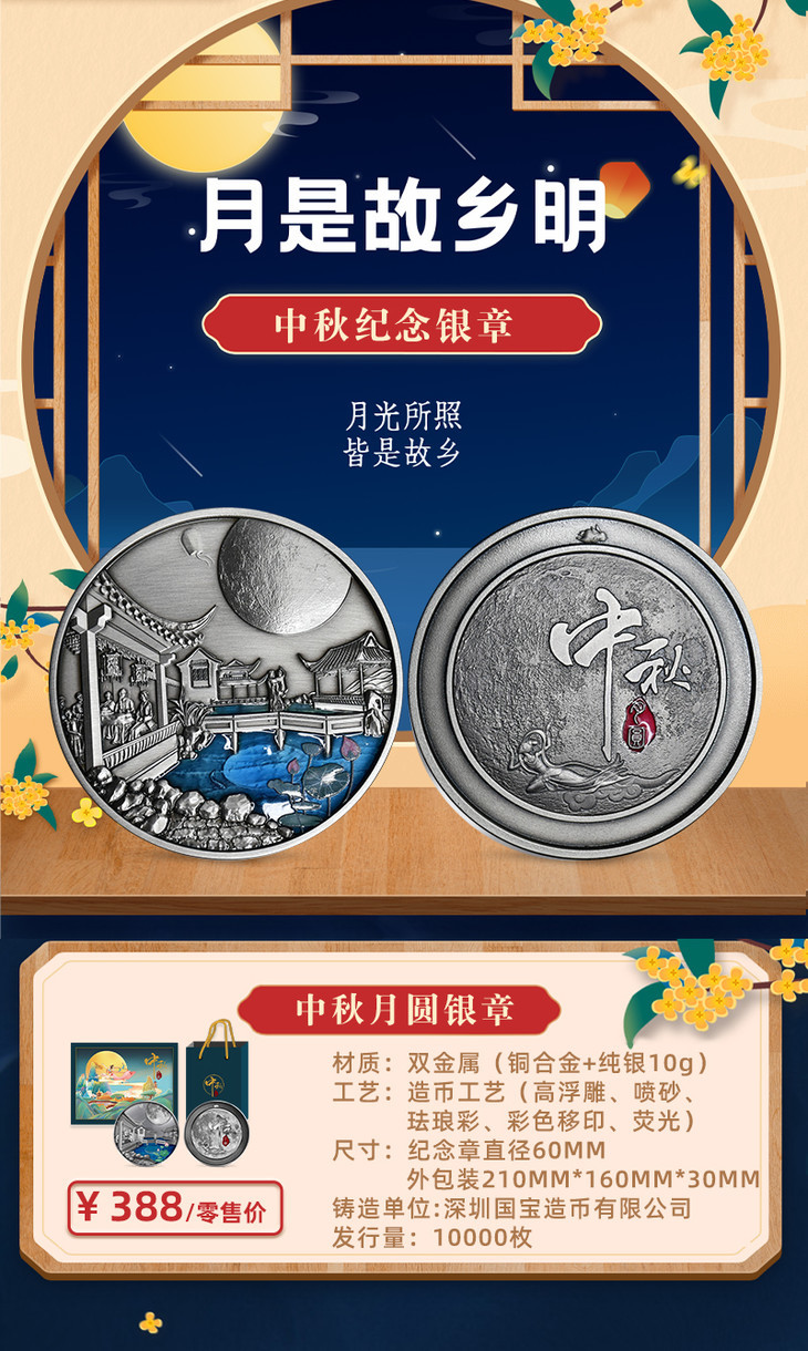 【深圳国宝】中秋月圆·珐琅彩纪念银章(现货)