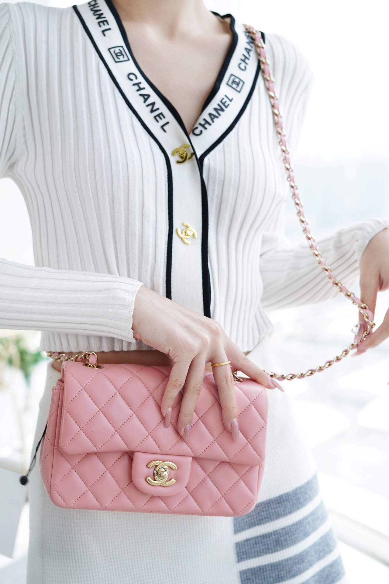 意大利????《????》原产小羊皮??、手感细腻软乎,溢屏而出的质感,嫩得能掐出水的感觉??经典菱格纹设计与皮穿金属的链条搭配,简单大气,既有复古的味道同时又优雅摩登,是每个女人都想拥有的一款心仪???????