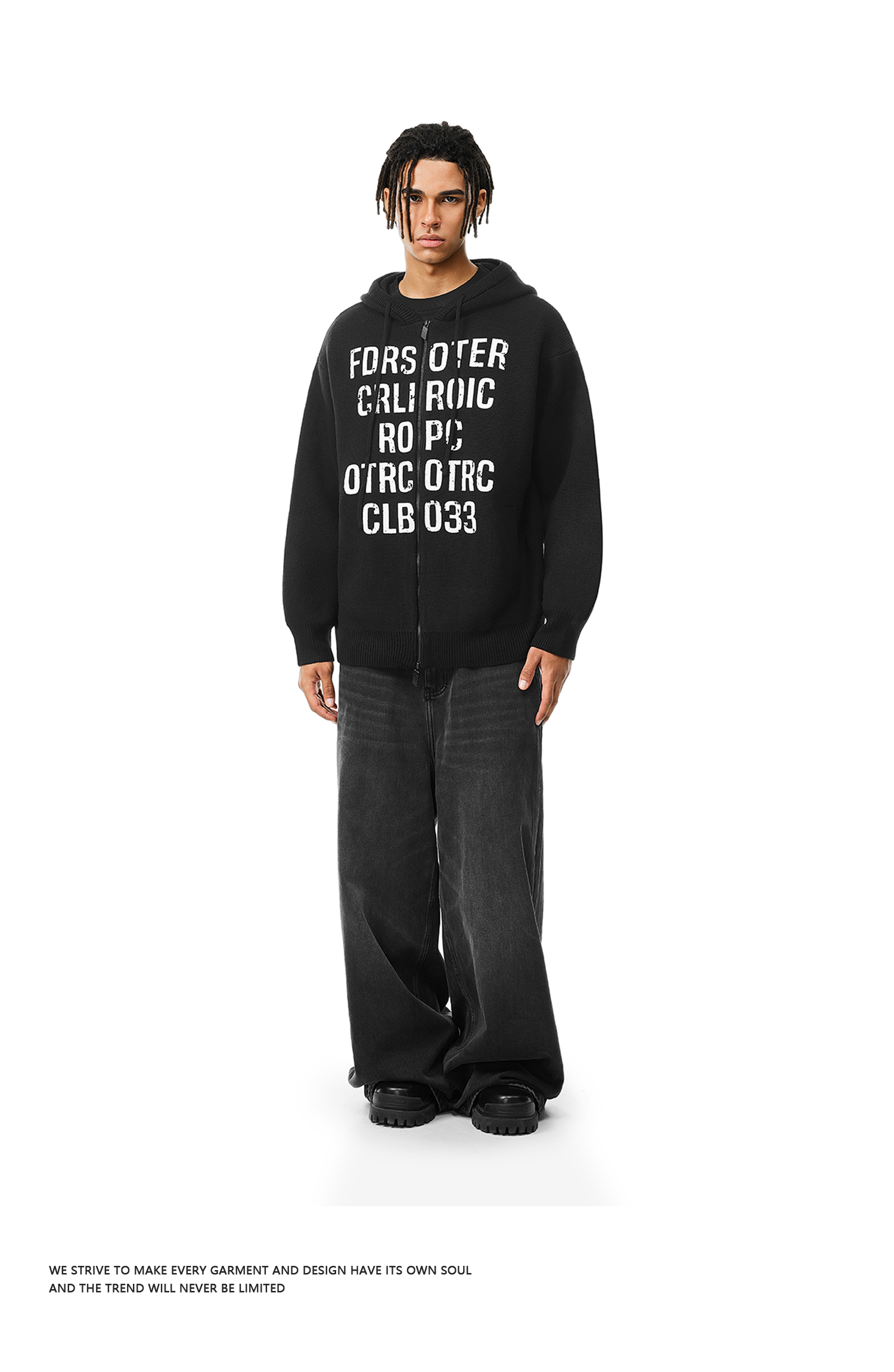FDR官方店 斑驳字体拉链毛衣男女秋冬季美式街头拉链开衫外套上衣