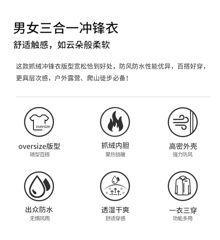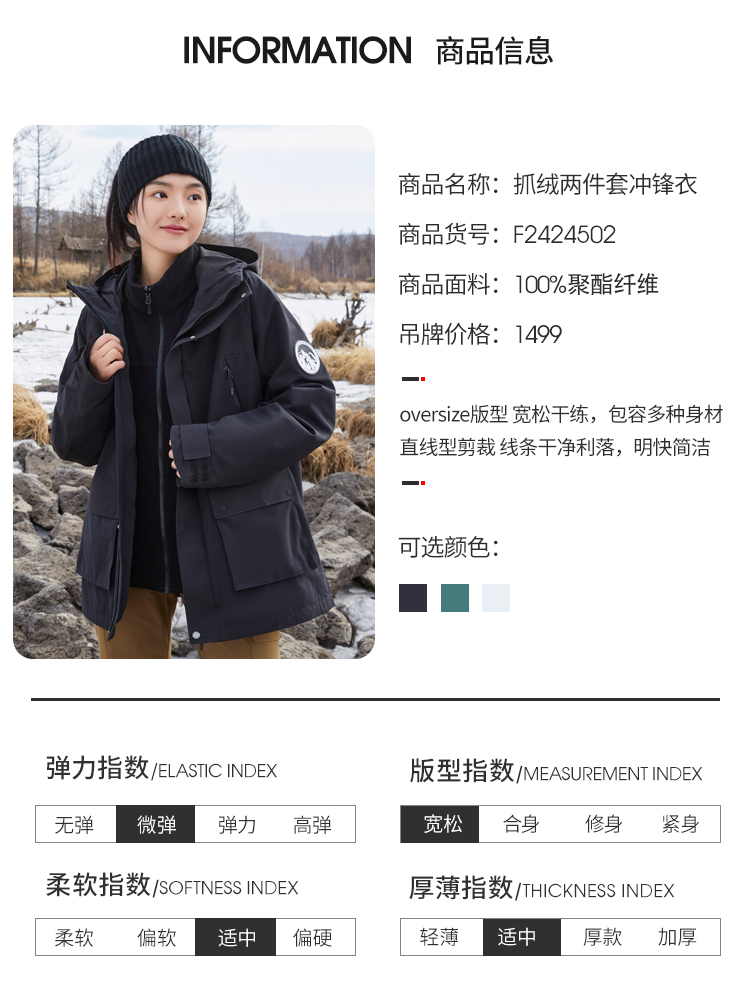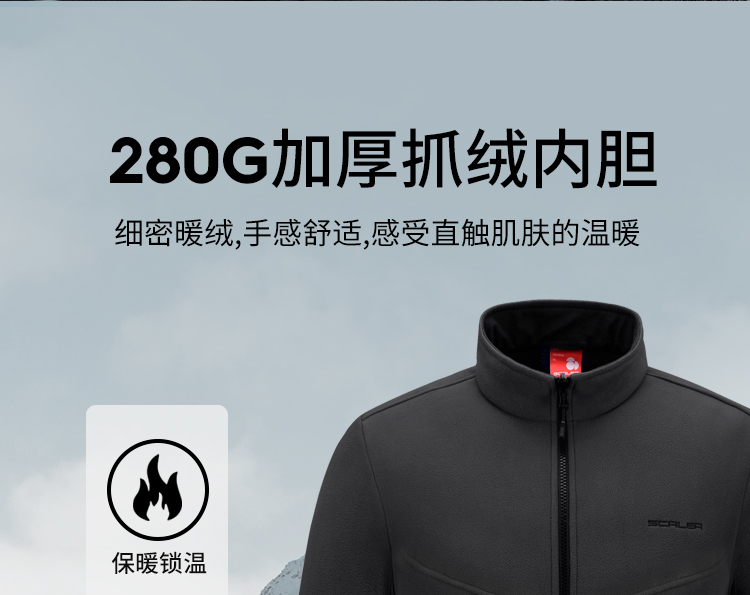 【通款抓绒两件套冲锋衣】SCALER/思凯乐 情侣潮流宽松加绒冲锋衣外套F2424502