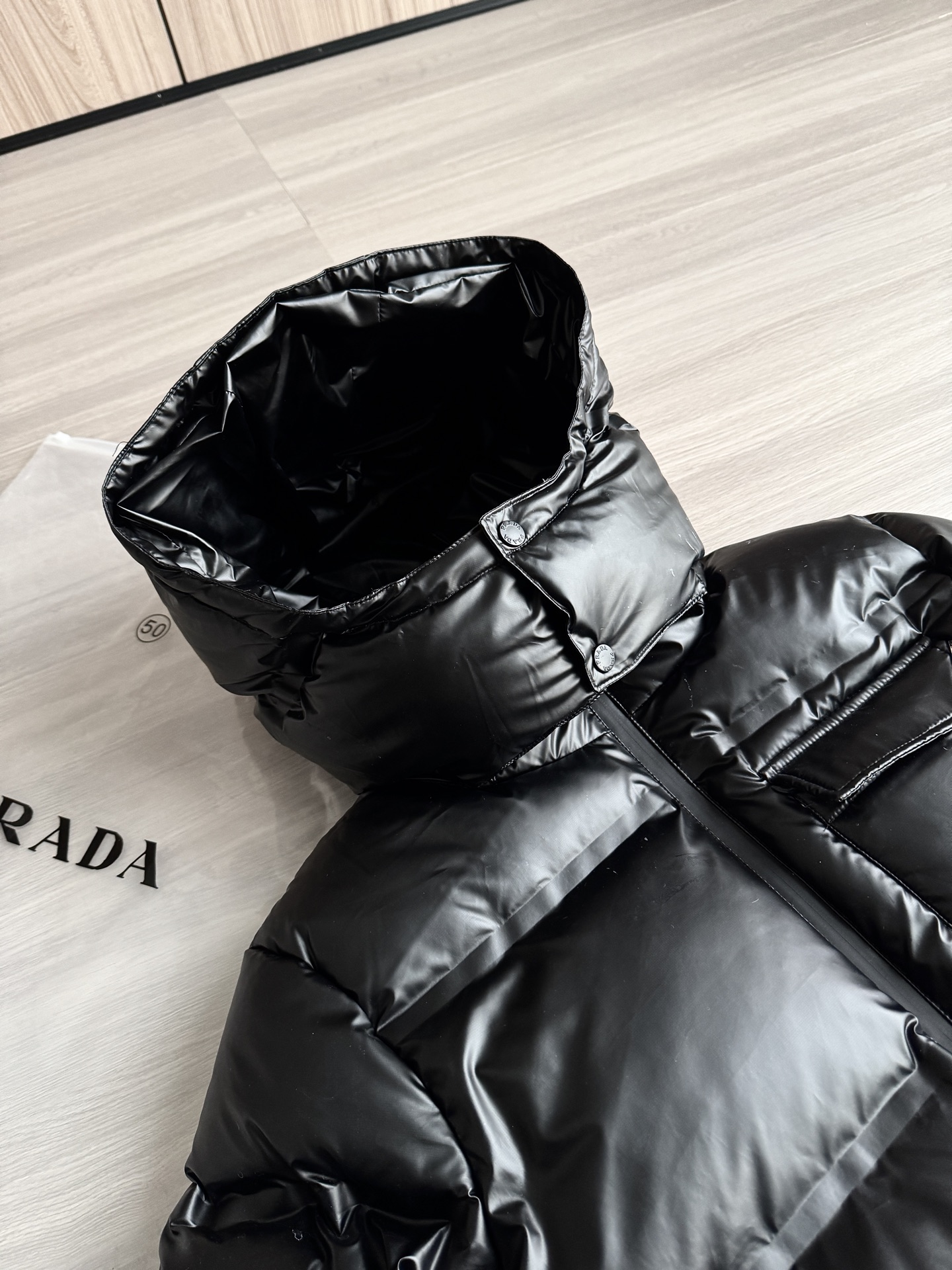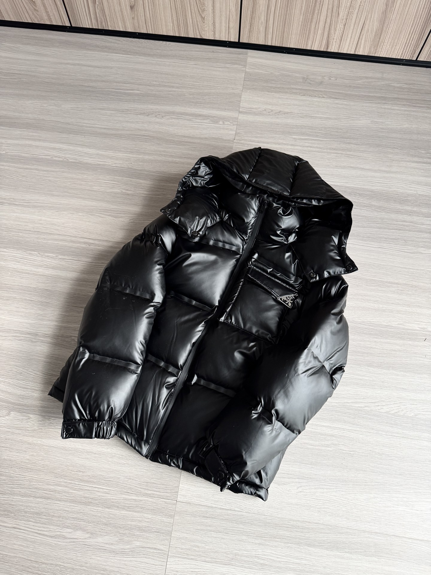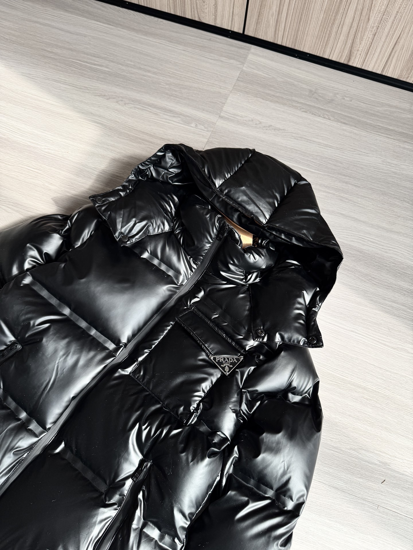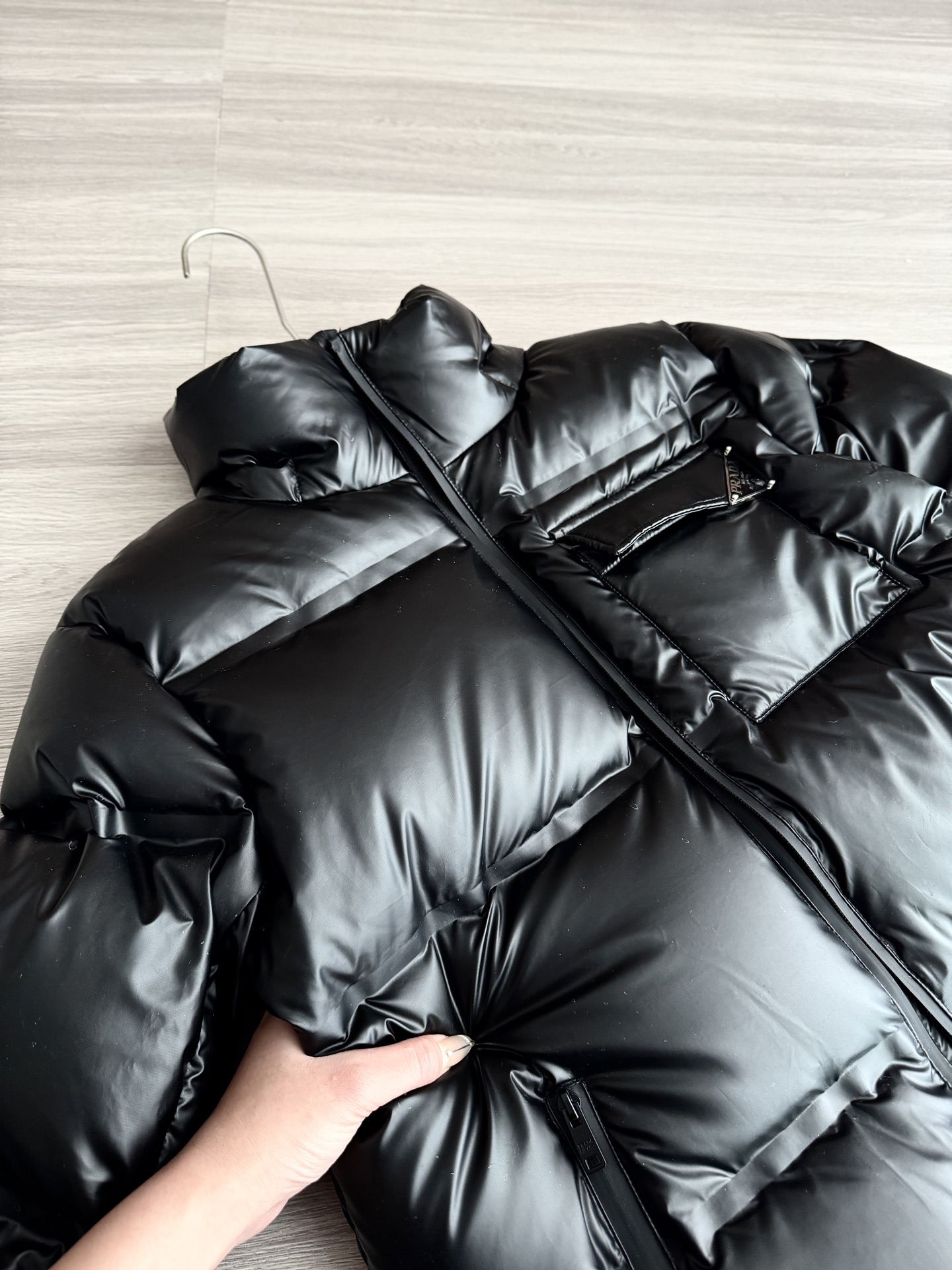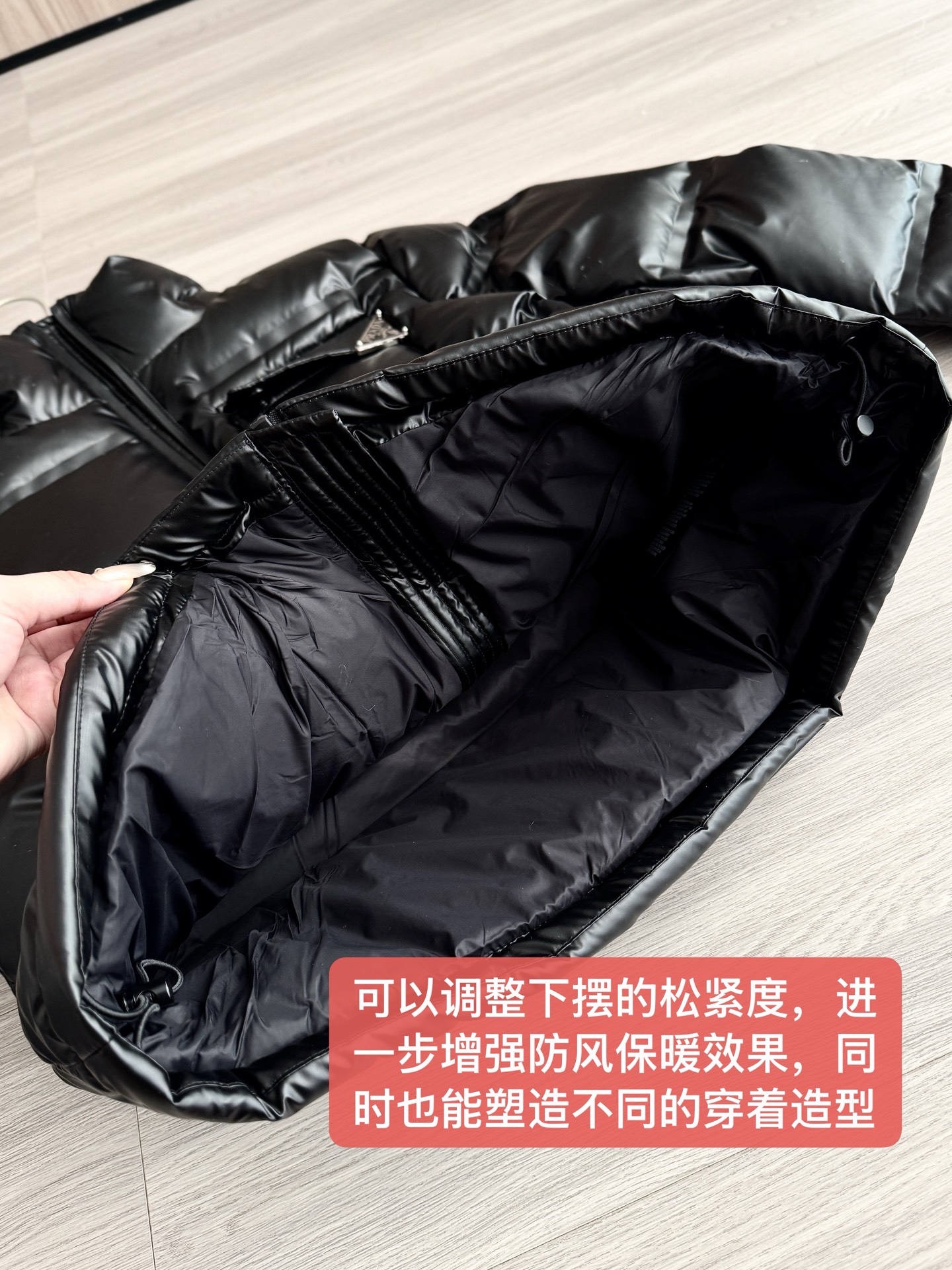 PRADA 普拉达黑科技压胶羽绒外套 极简主义风格90鹅绒羽绒服 面料舒适有型!上身超级有型的帅气,版型是立体裁剪的设计 ,帽檐可拆卸,下摆有抽绳调节,整件保暖度高,回弹力好 上身保暖有型 ,又不会有负重感 ,实穿性非常强 ,不显臃肿 ,可以很好的防止寒风侵袭⚠️男女同款
